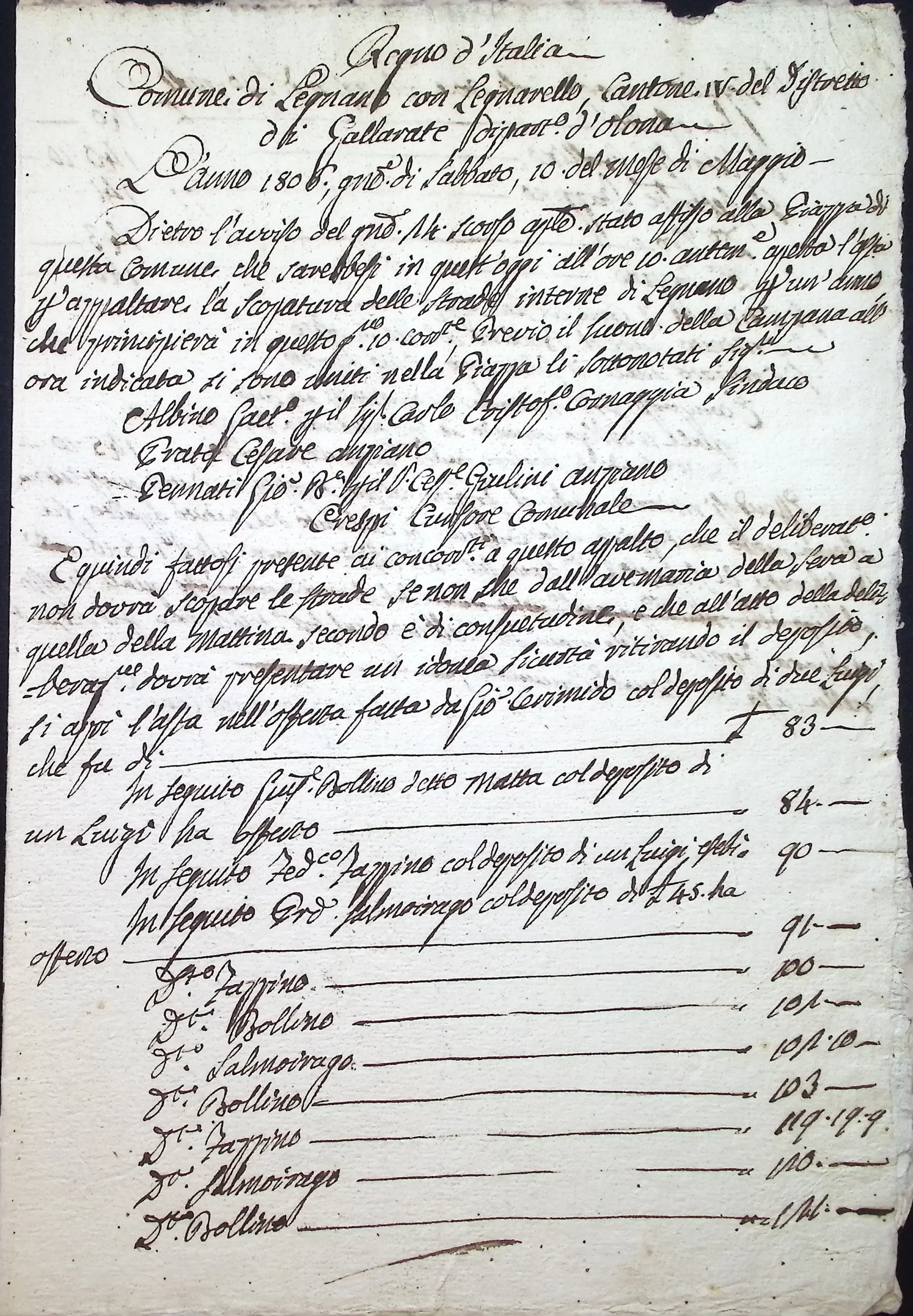 Verbale della gara per l’appalto del servizio spazzatura delle strade interne del comune