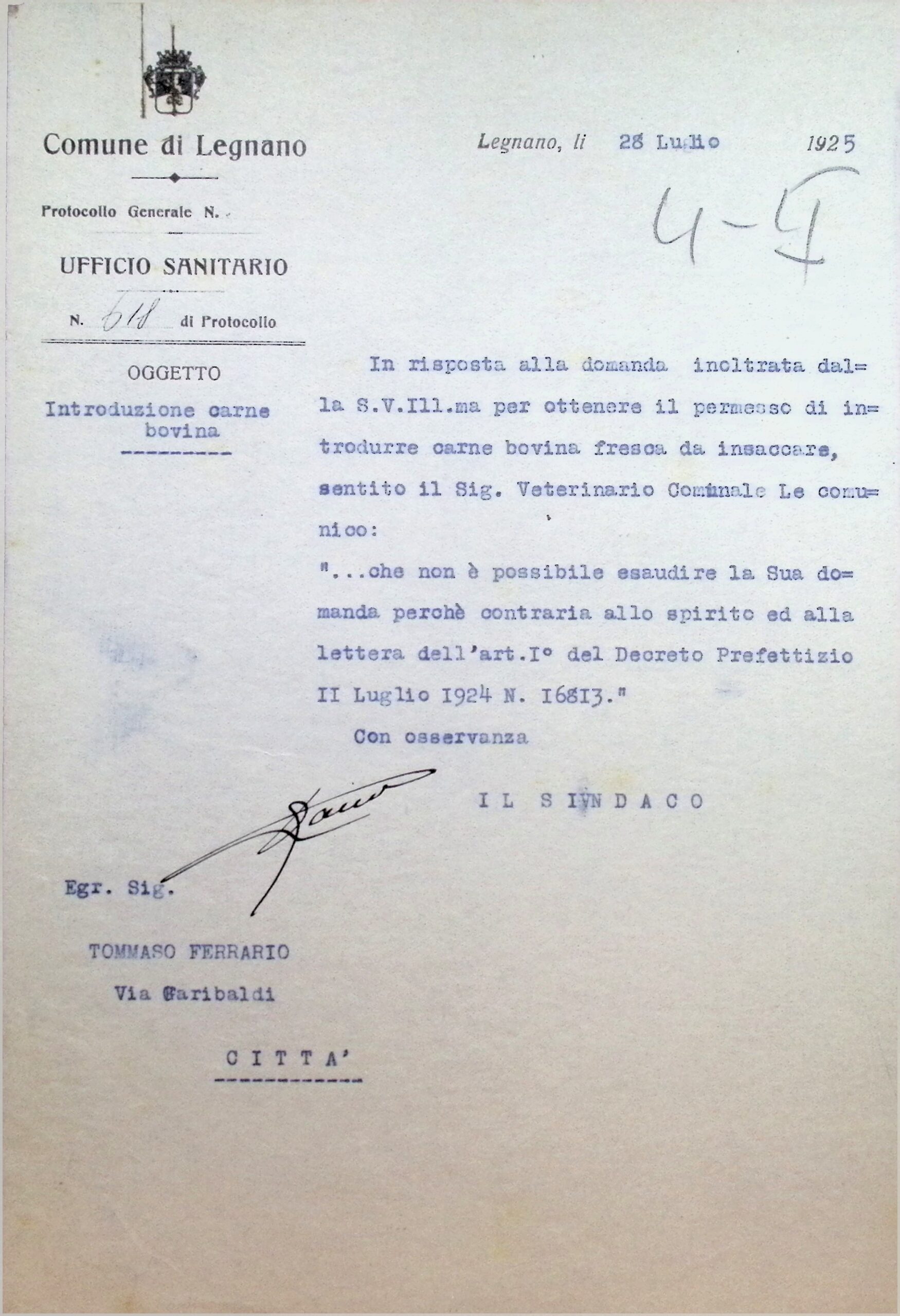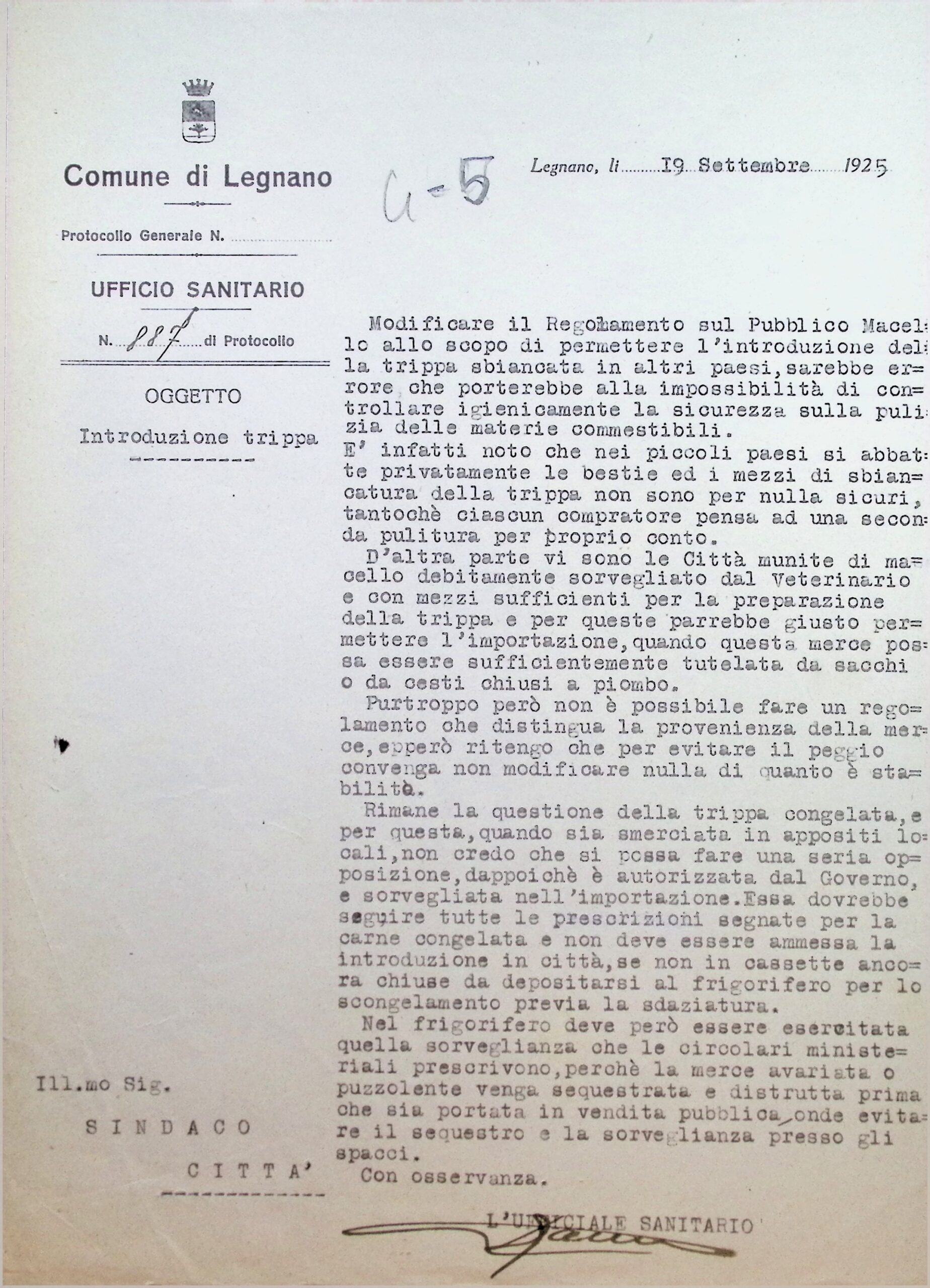 | Classificazione | IV.5 - Igiene pubblica; Regolamento; Macelli |
