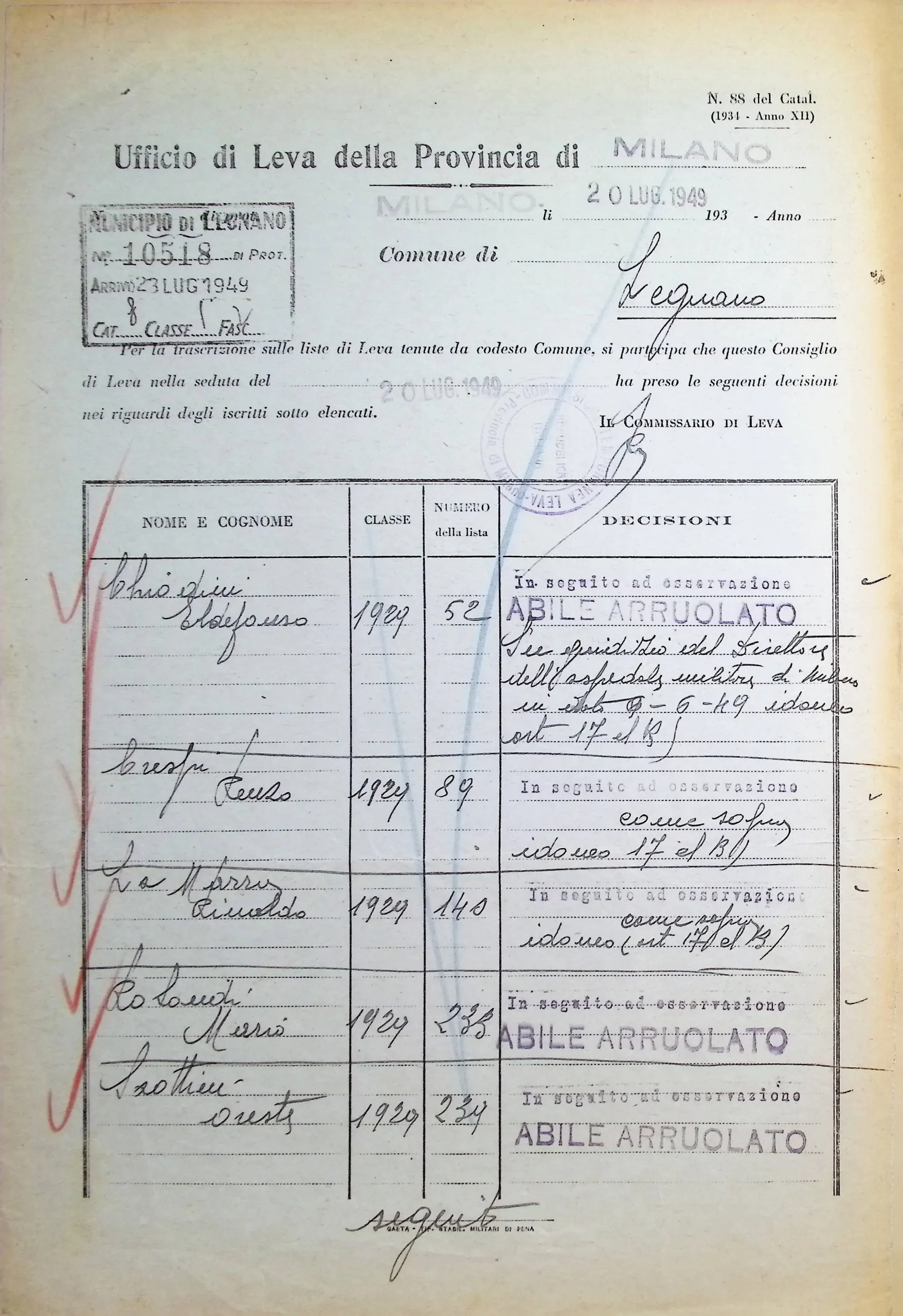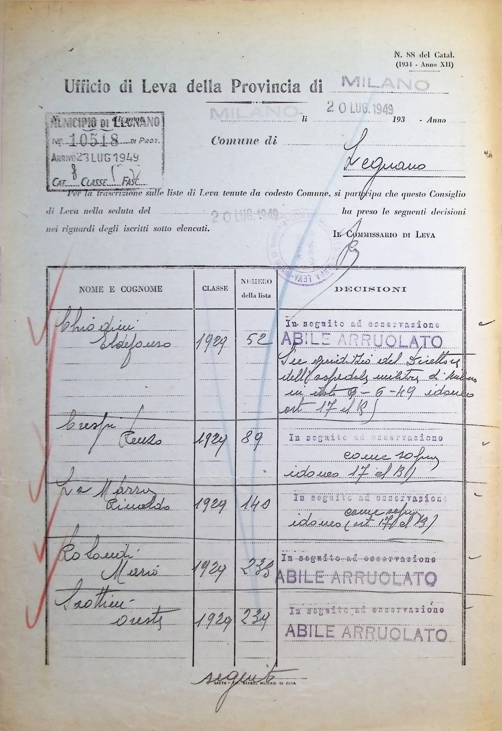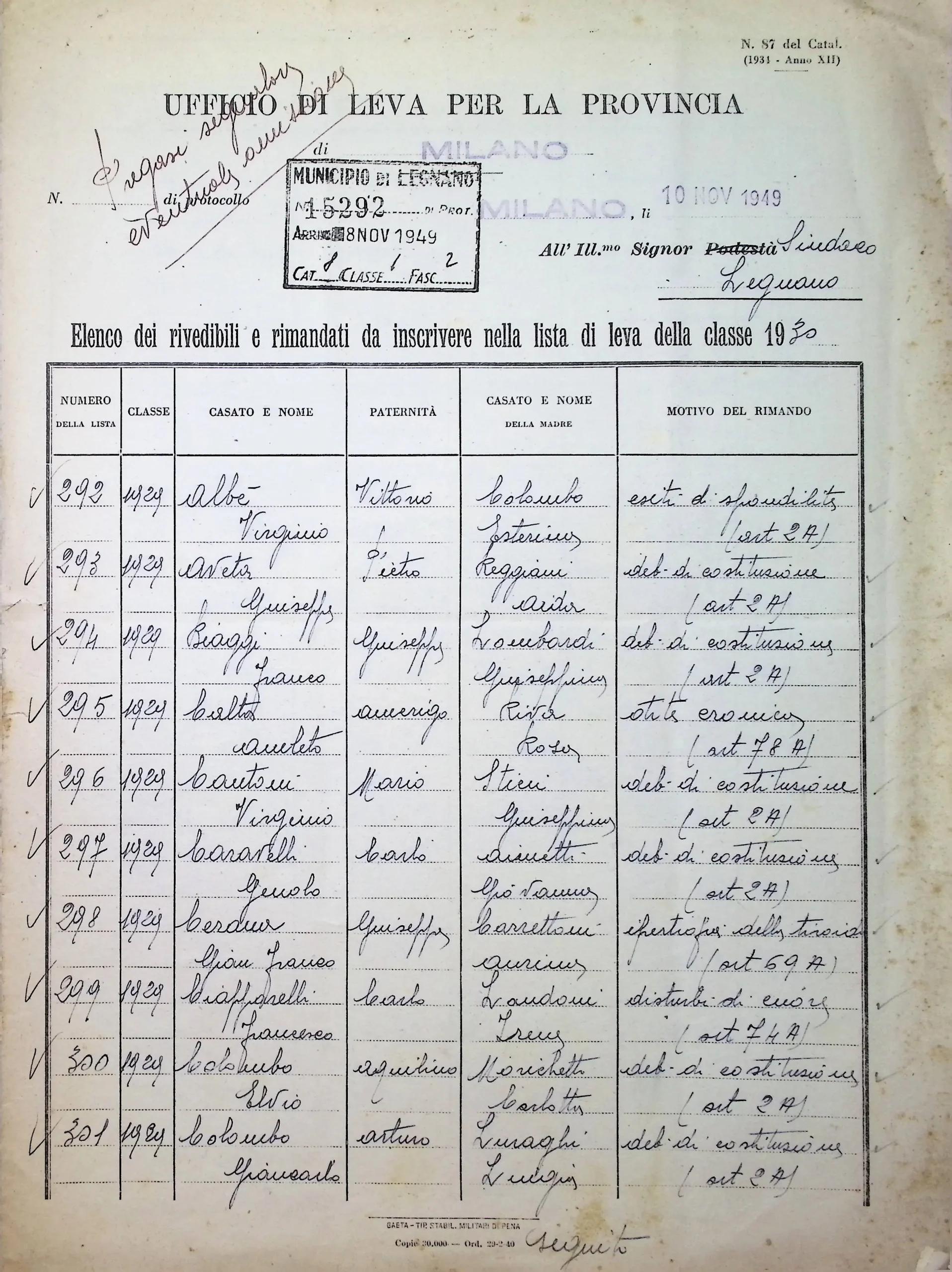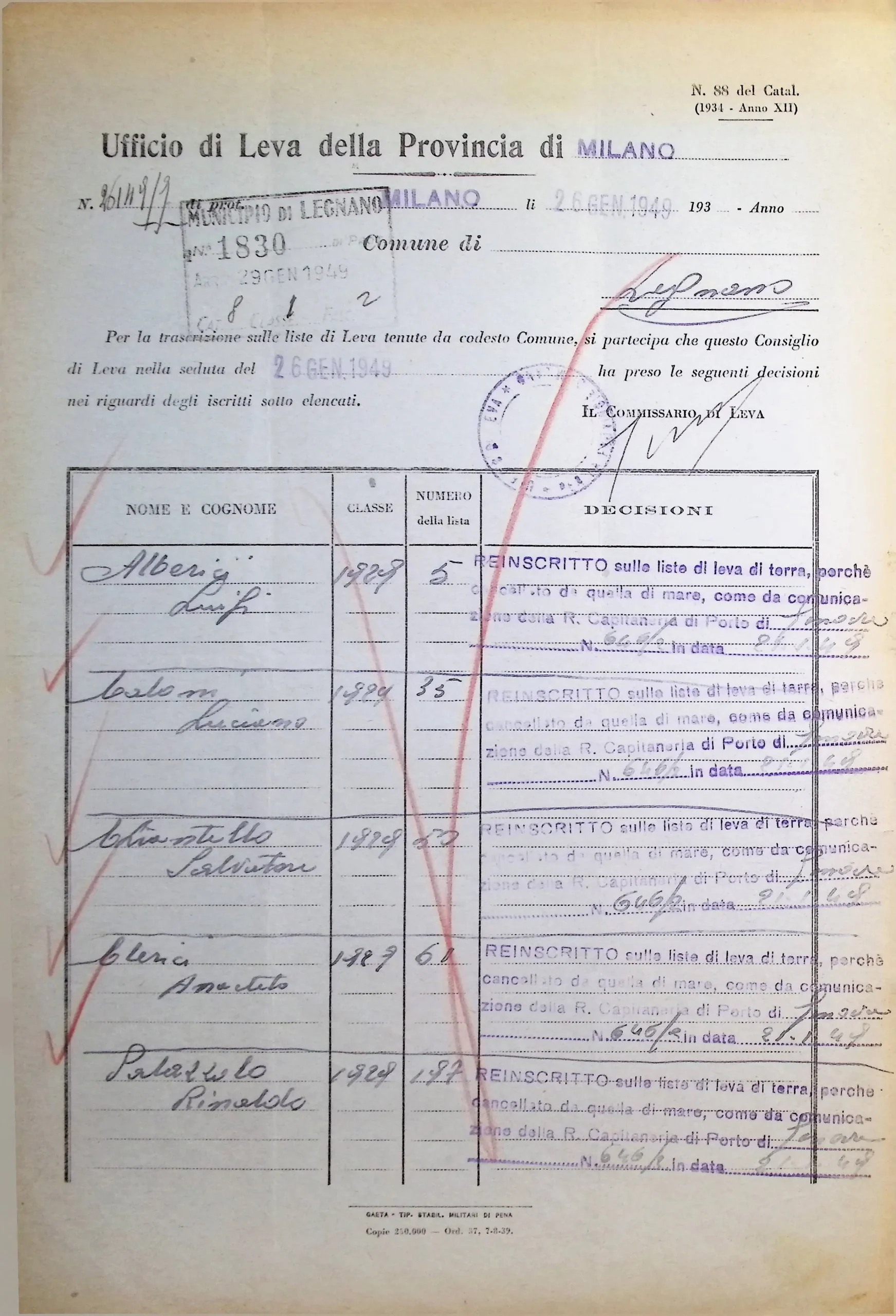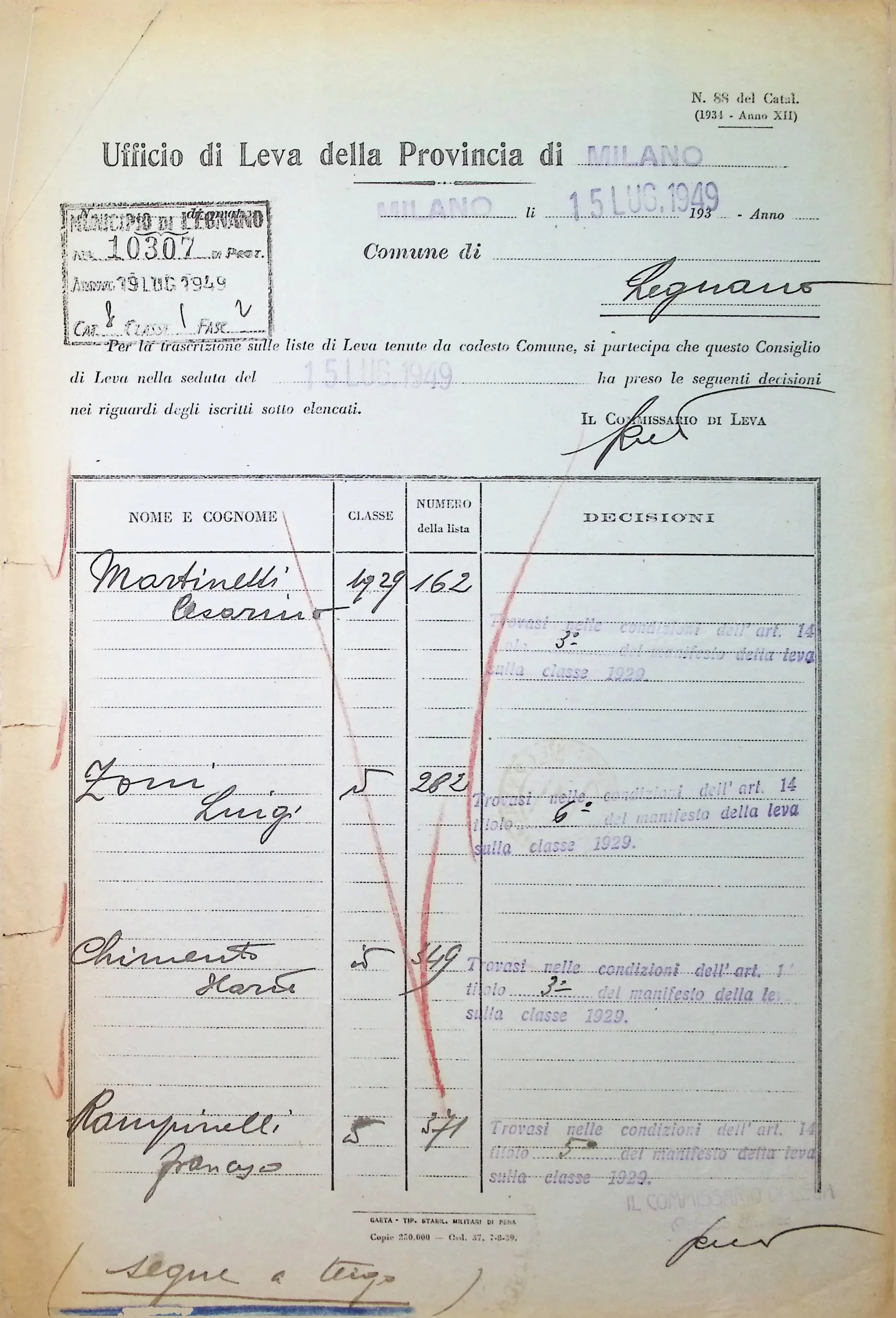 Aggiornamento delle liste di leva delle classi 1927, 1928, 1929, 1930