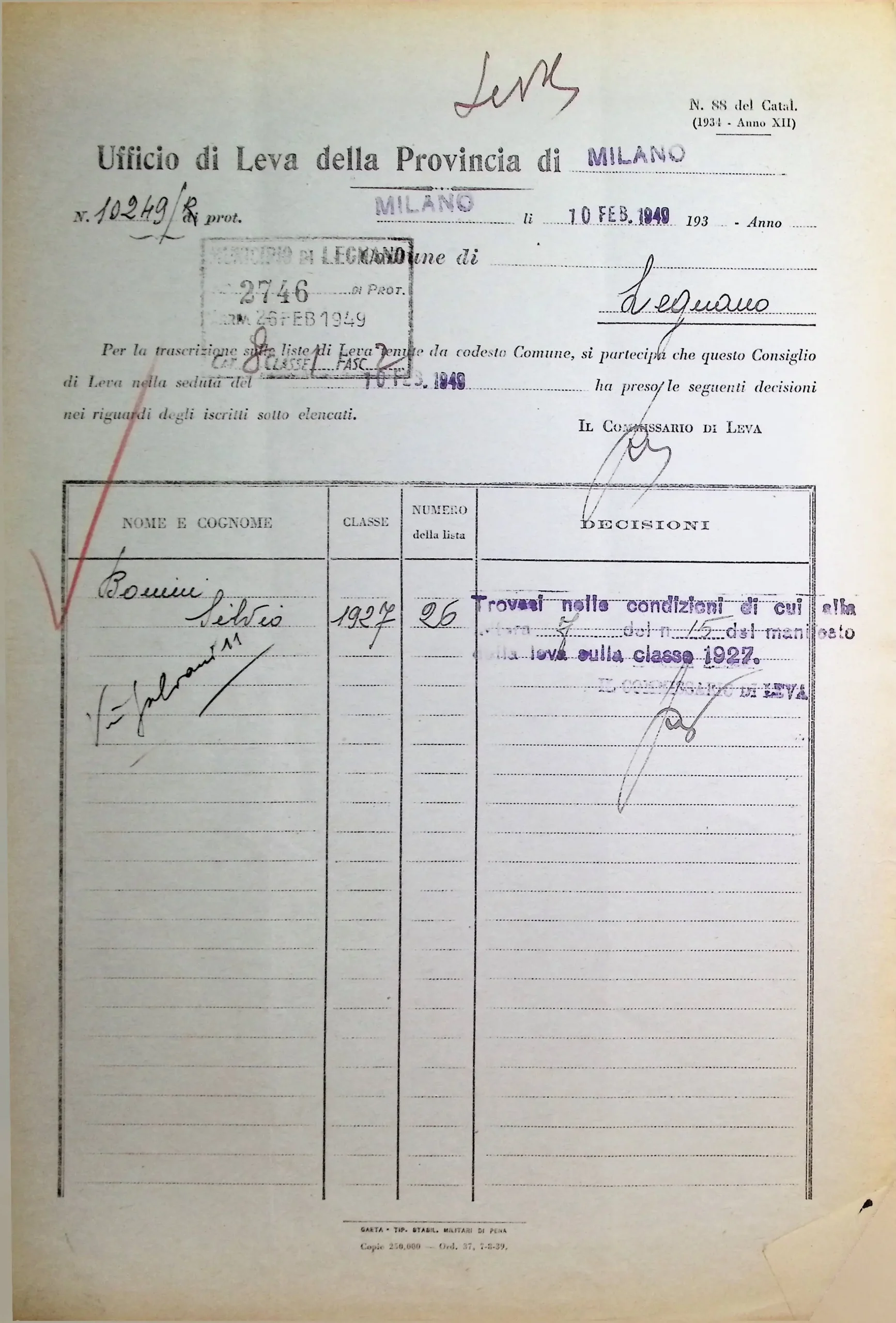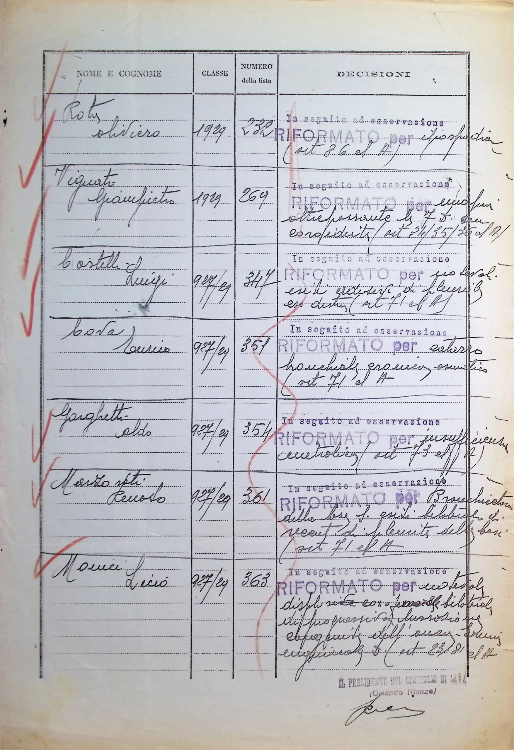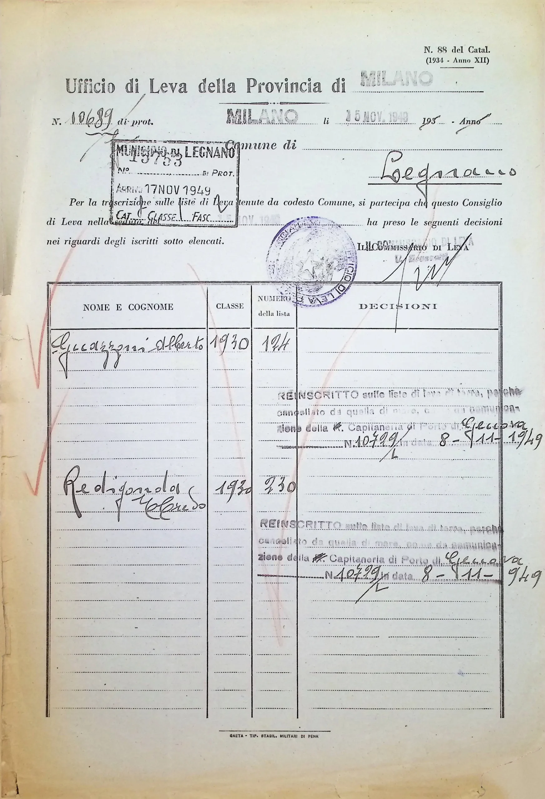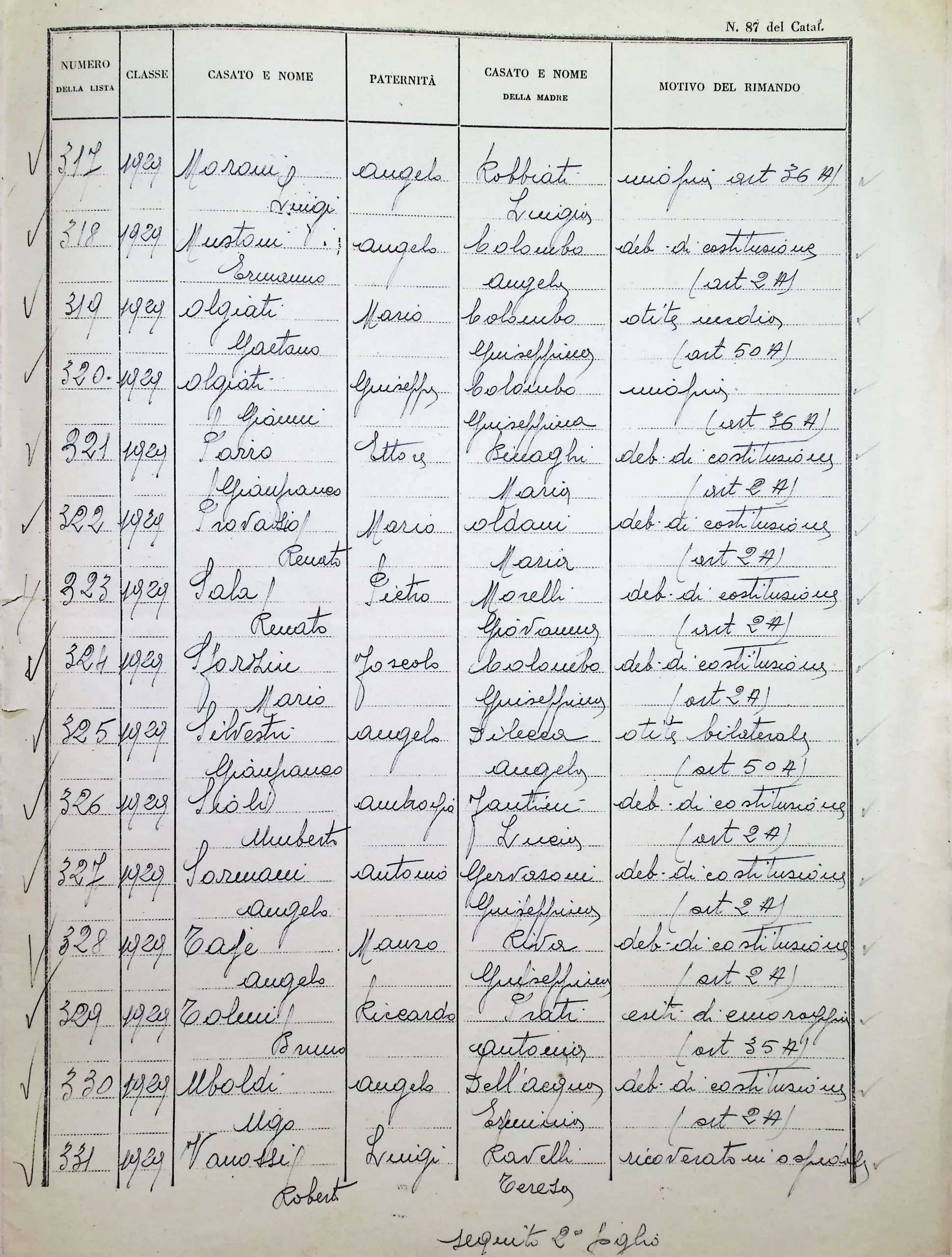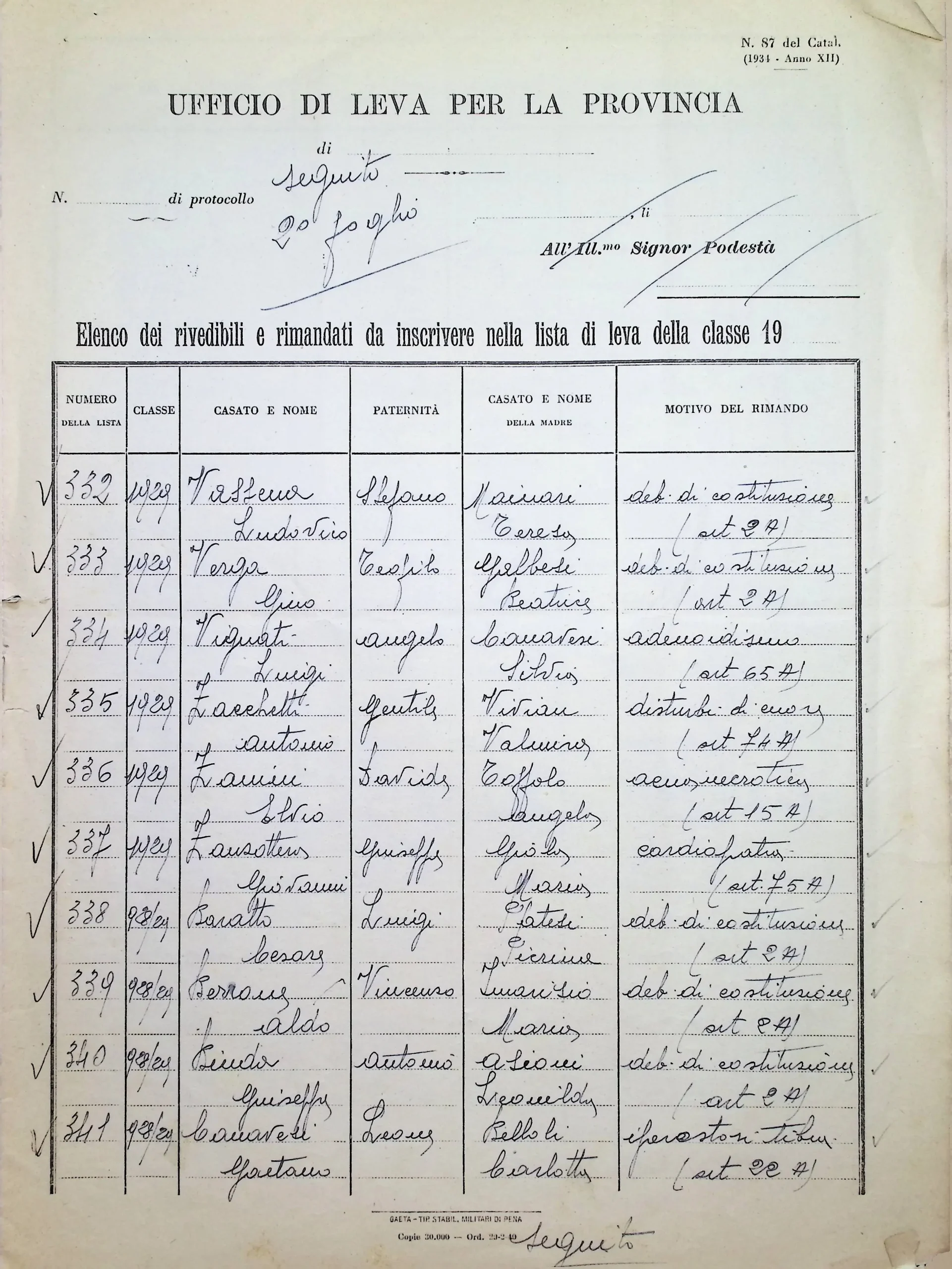 Aggiornamento delle liste di leva delle classi 1927, 1928, 1929, 1930