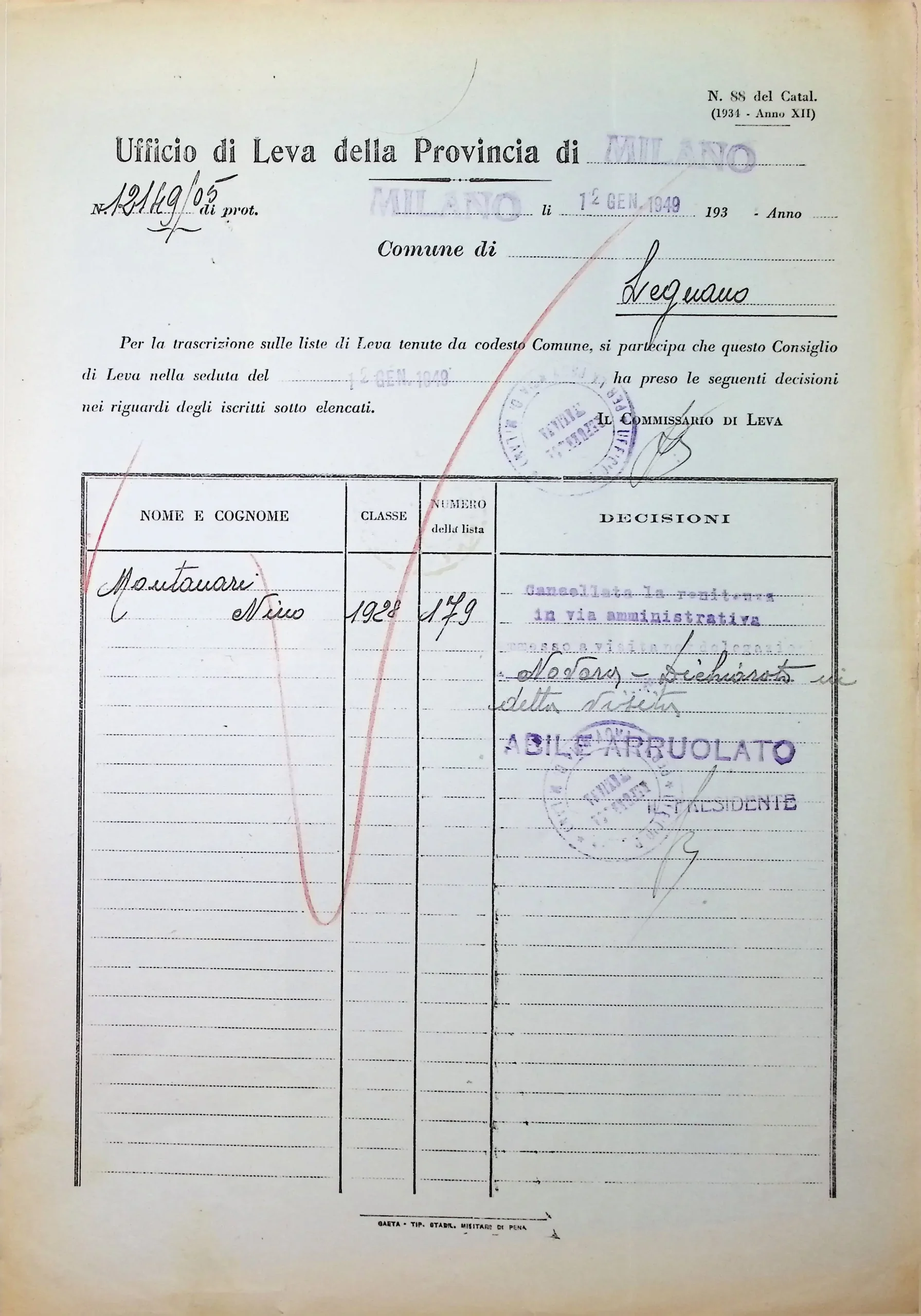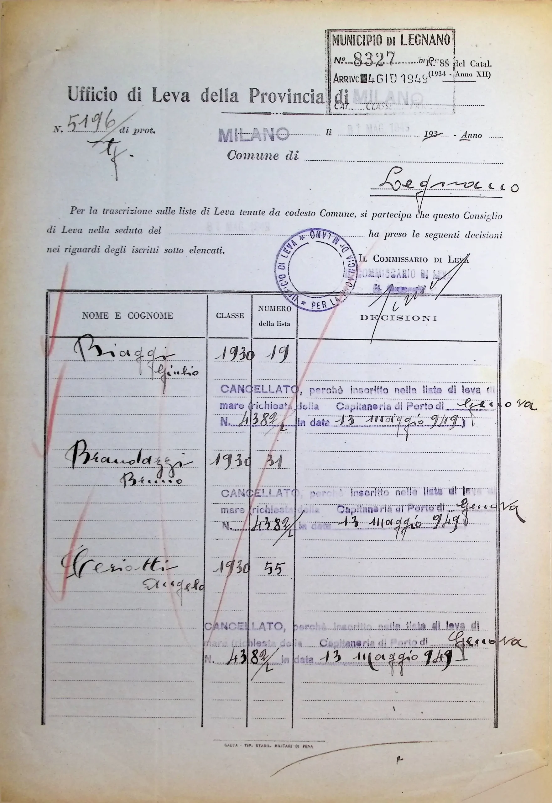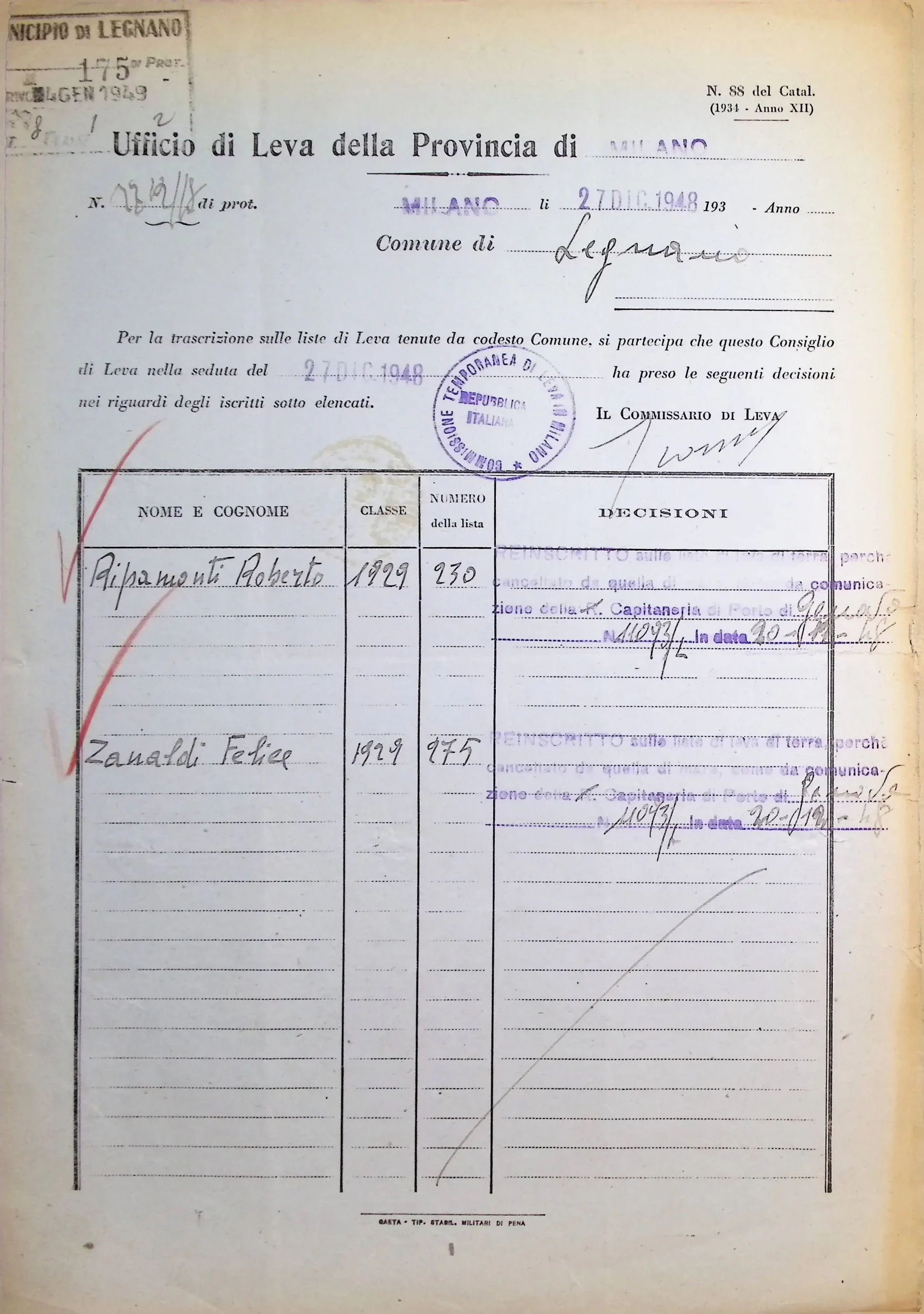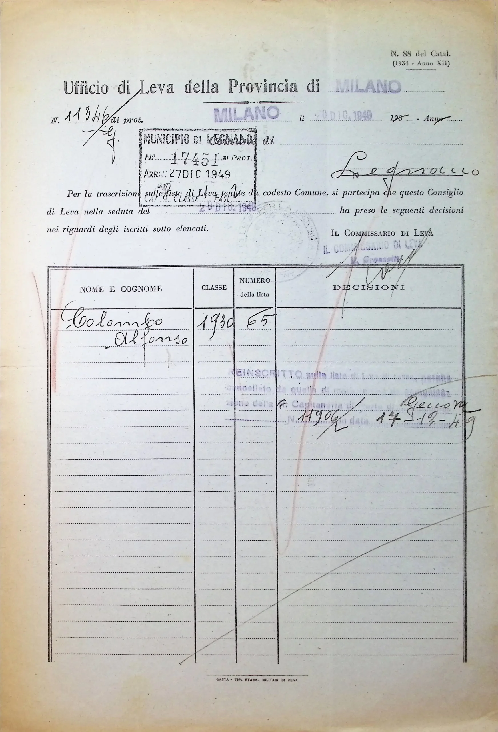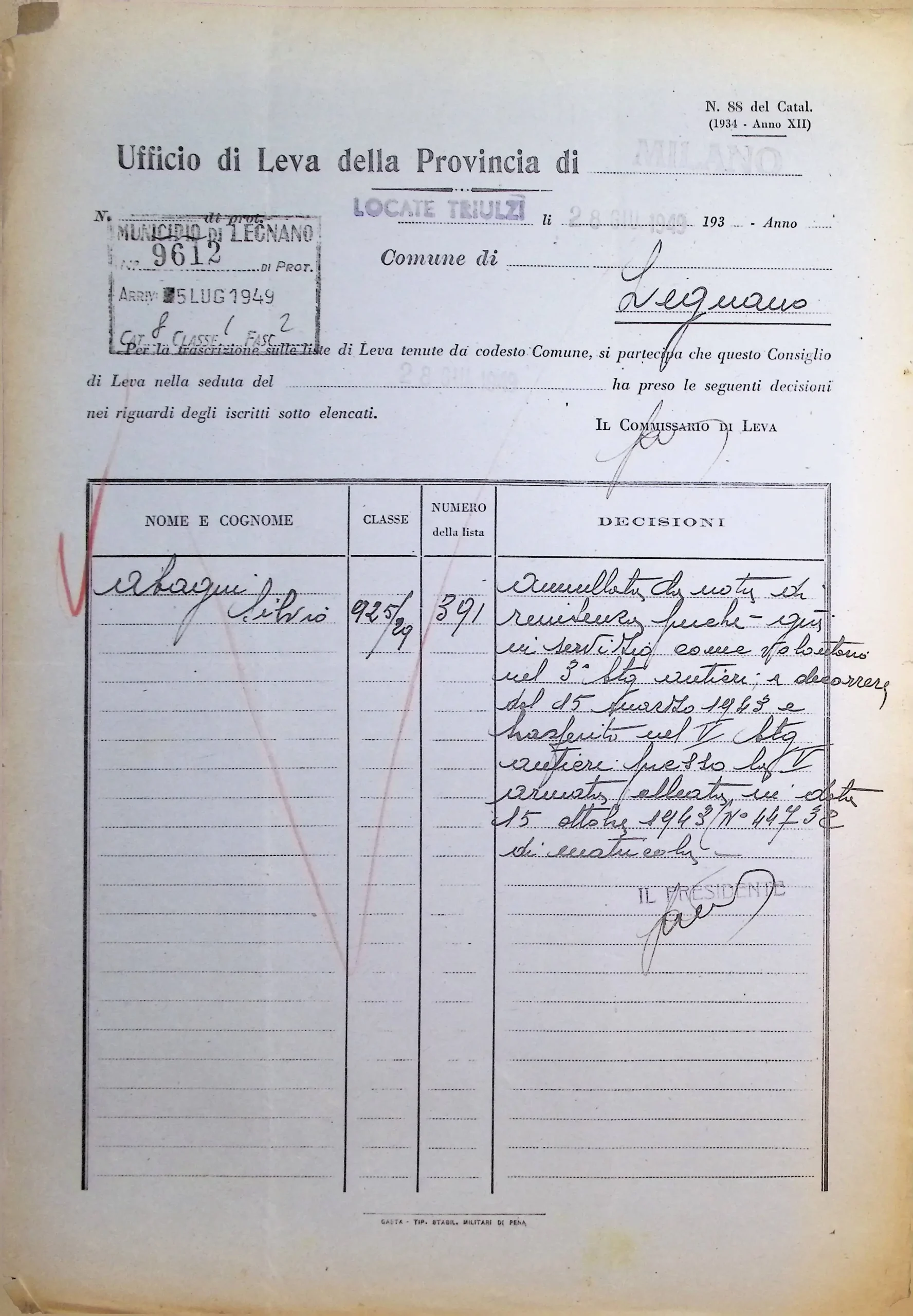 Aggiornamento delle liste di leva delle classi 1927, 1928, 1929, 1930