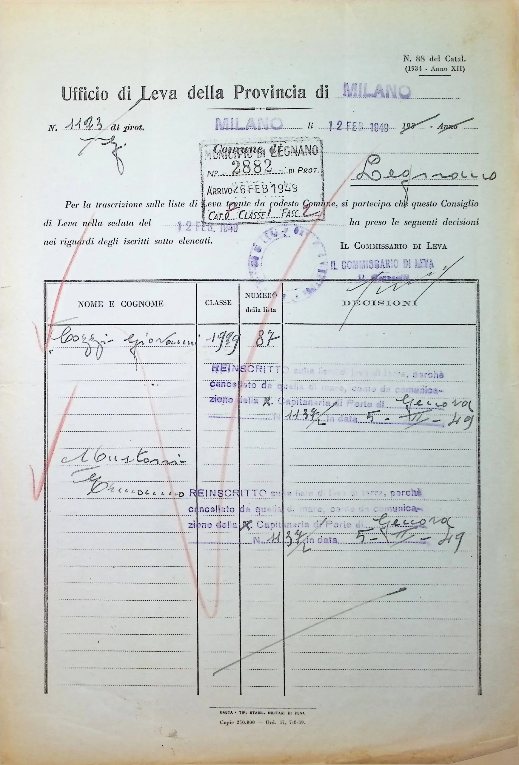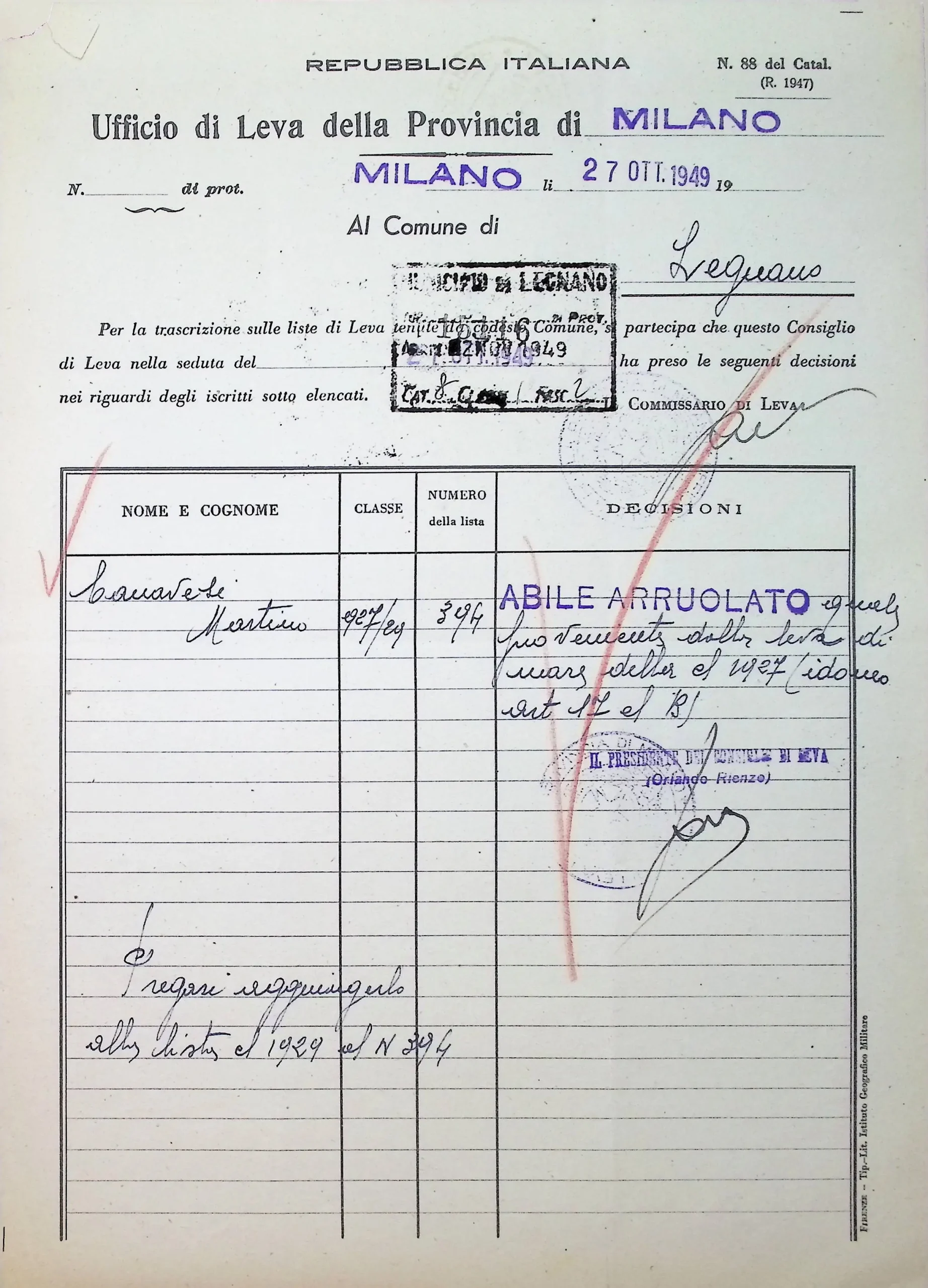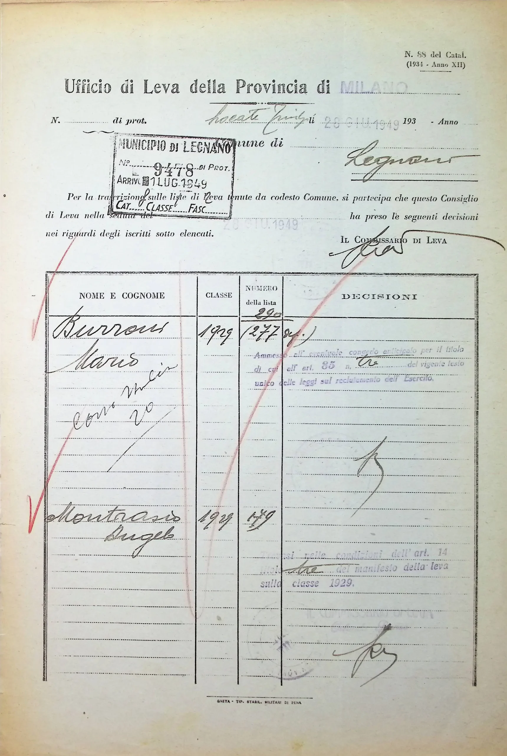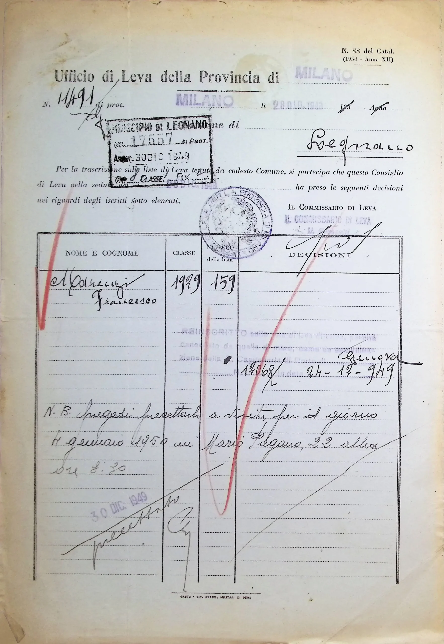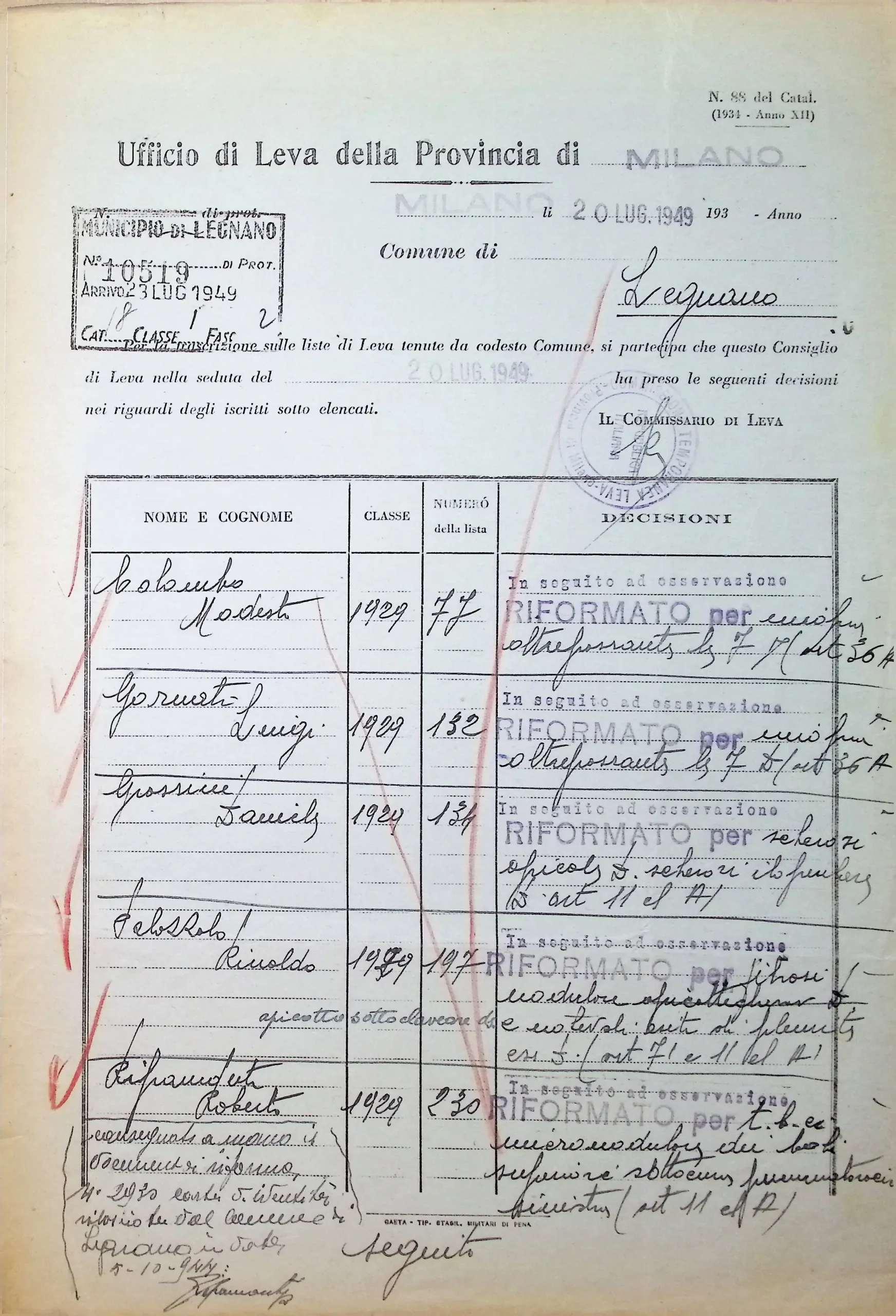 Aggiornamento delle liste di leva delle classi 1927, 1928, 1929, 1930