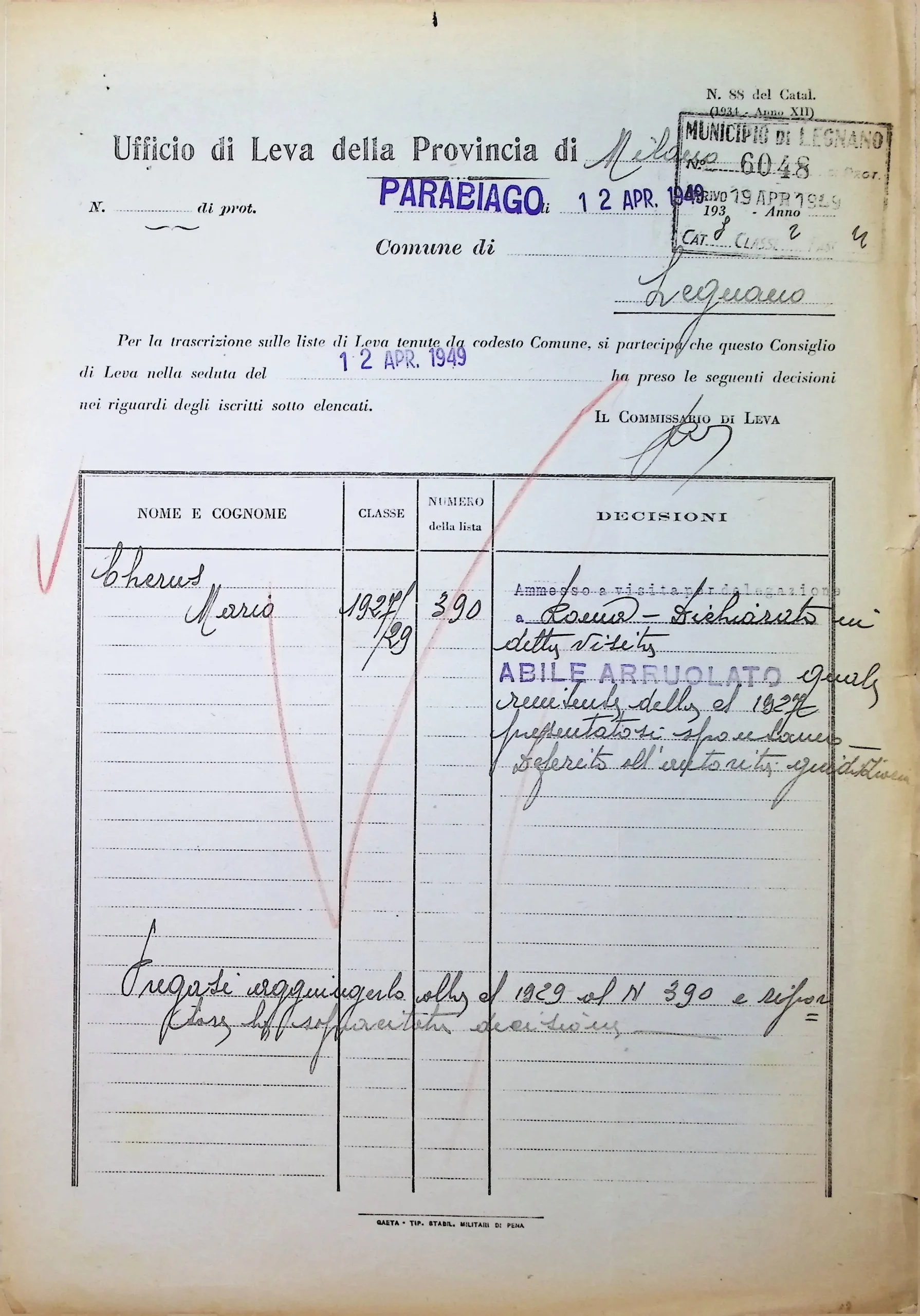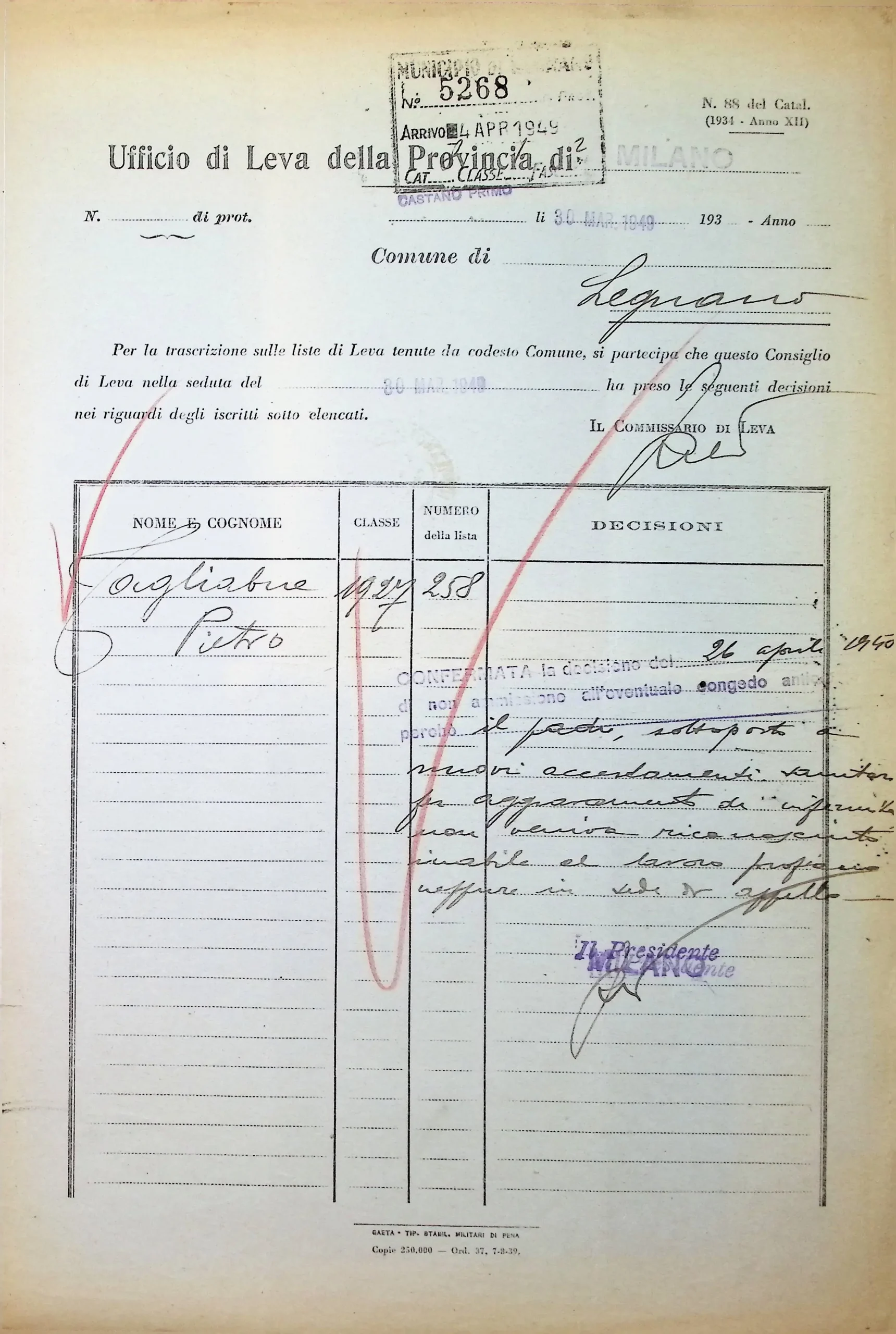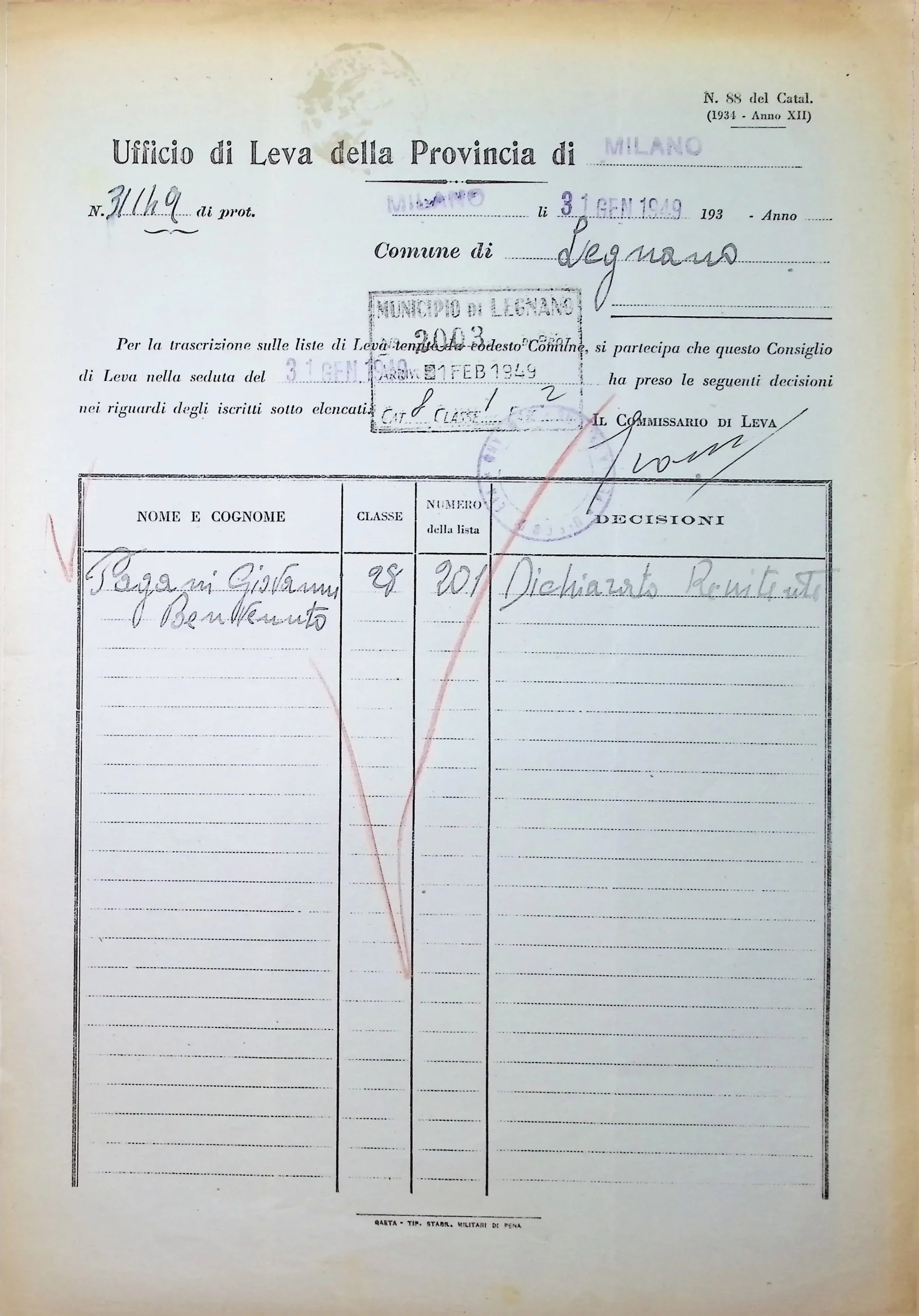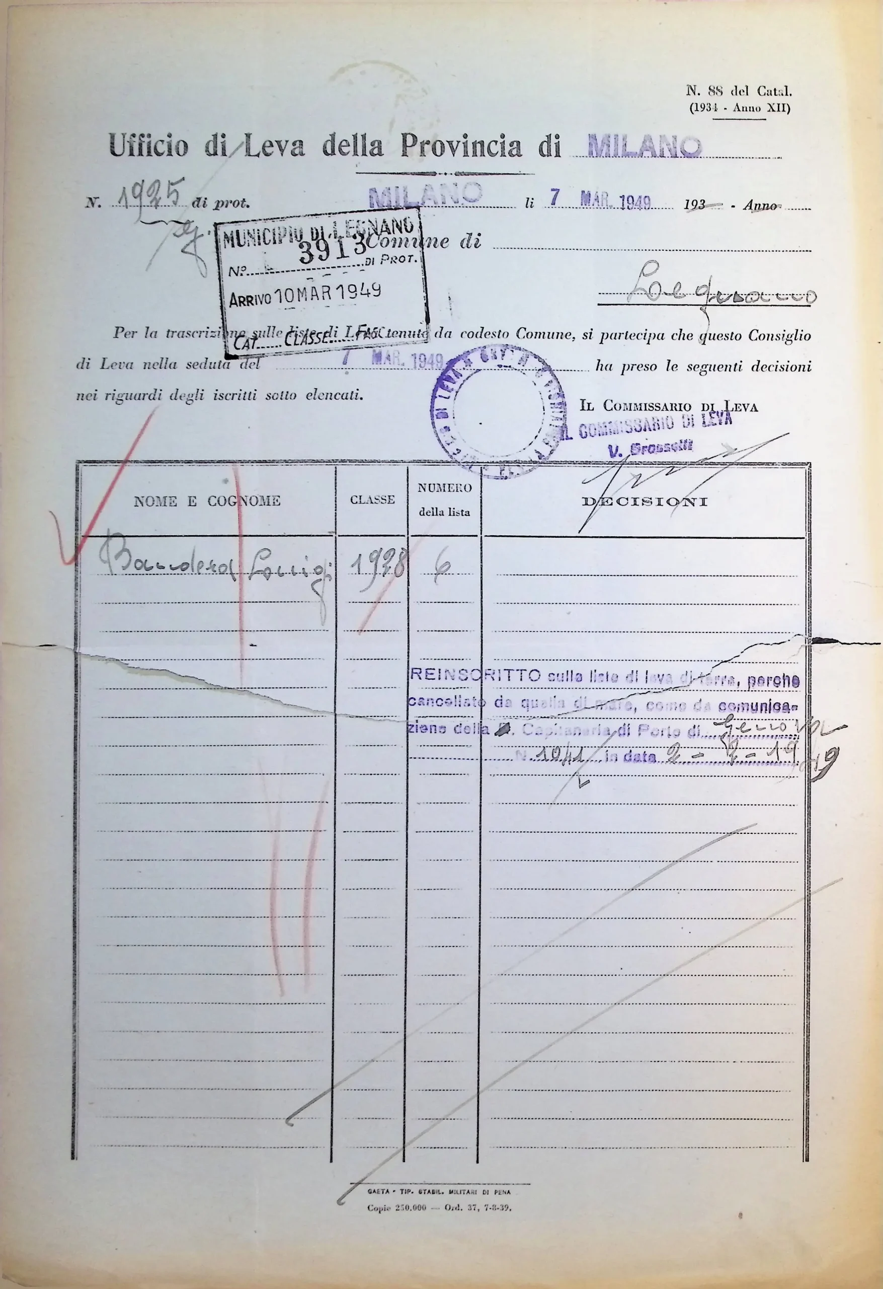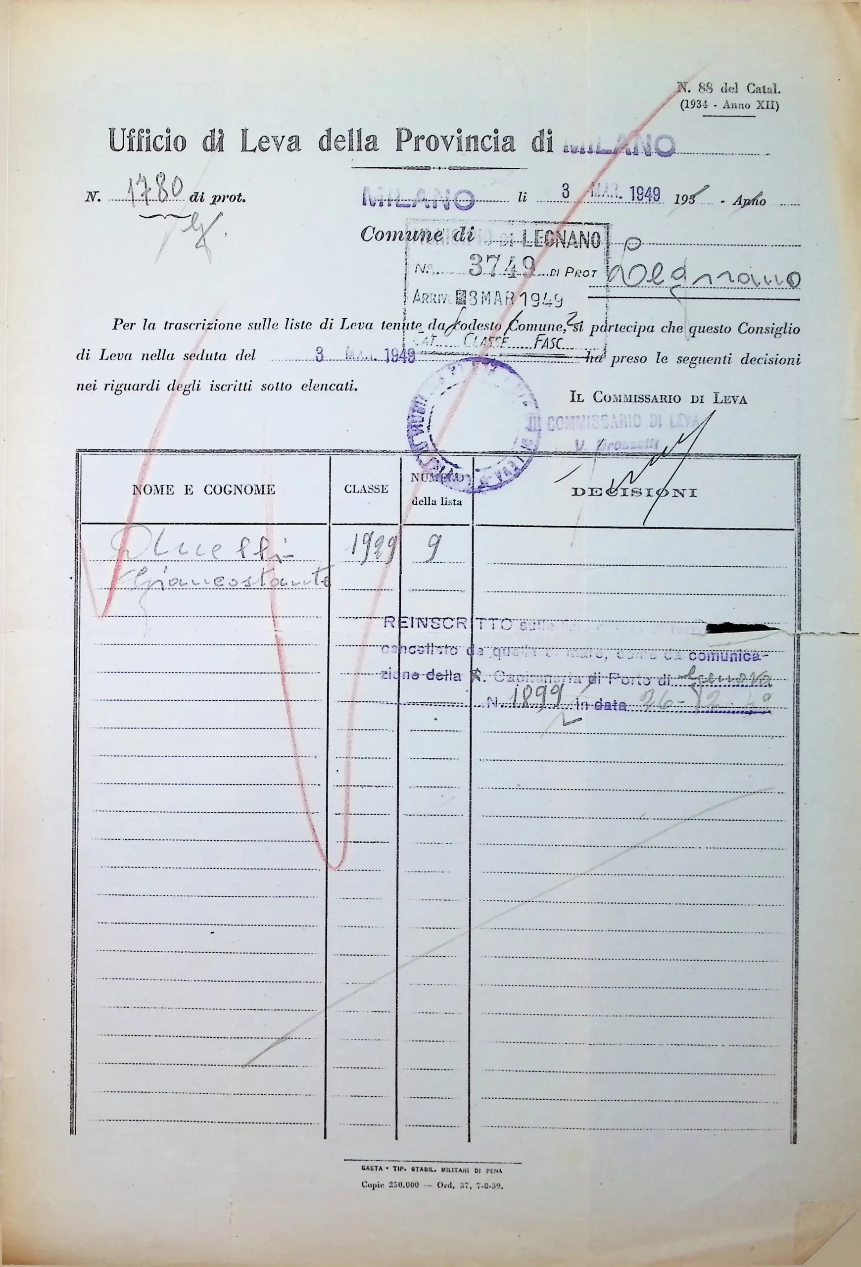 Aggiornamento delle liste di leva delle classi 1927, 1928, 1929, 1930