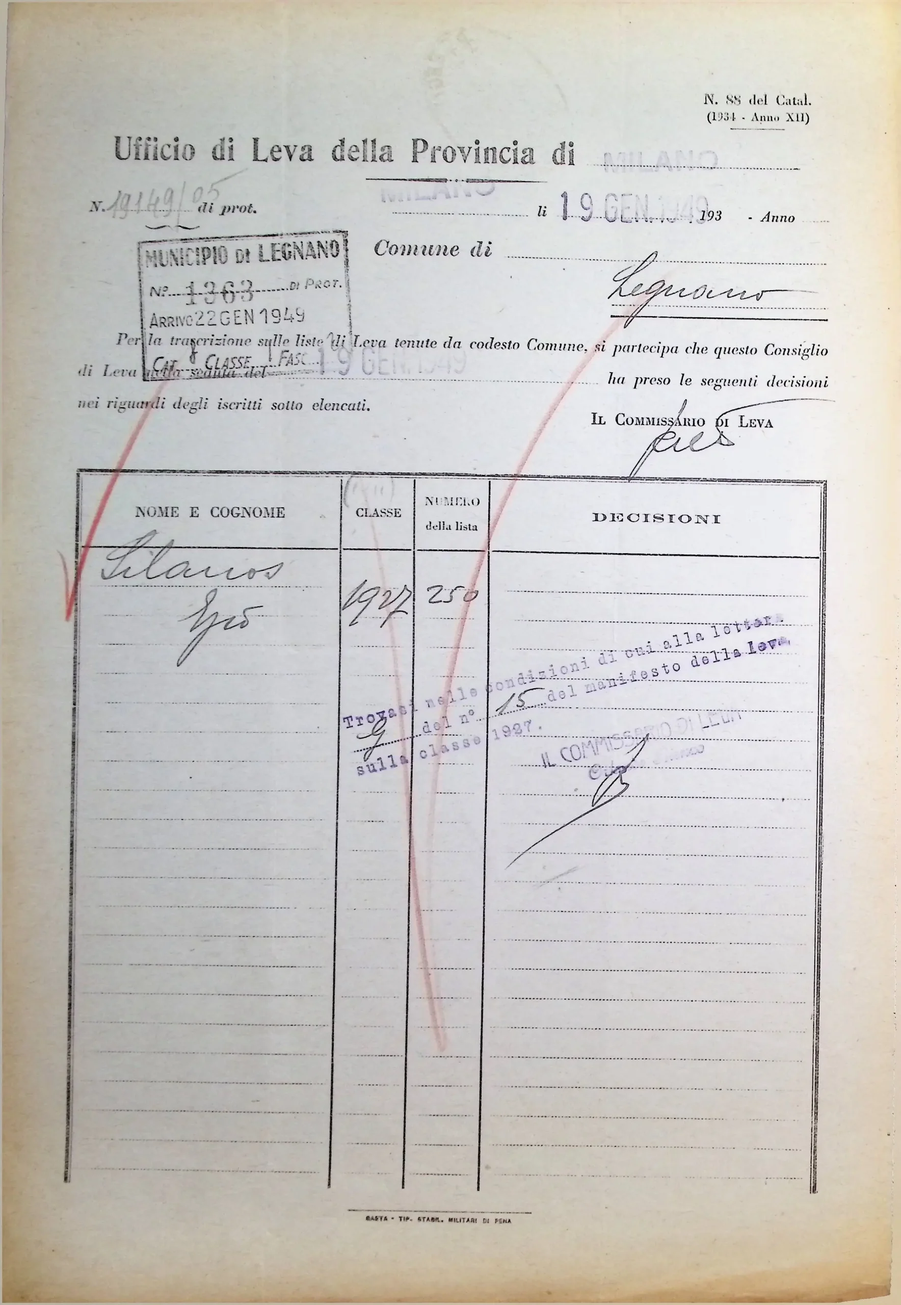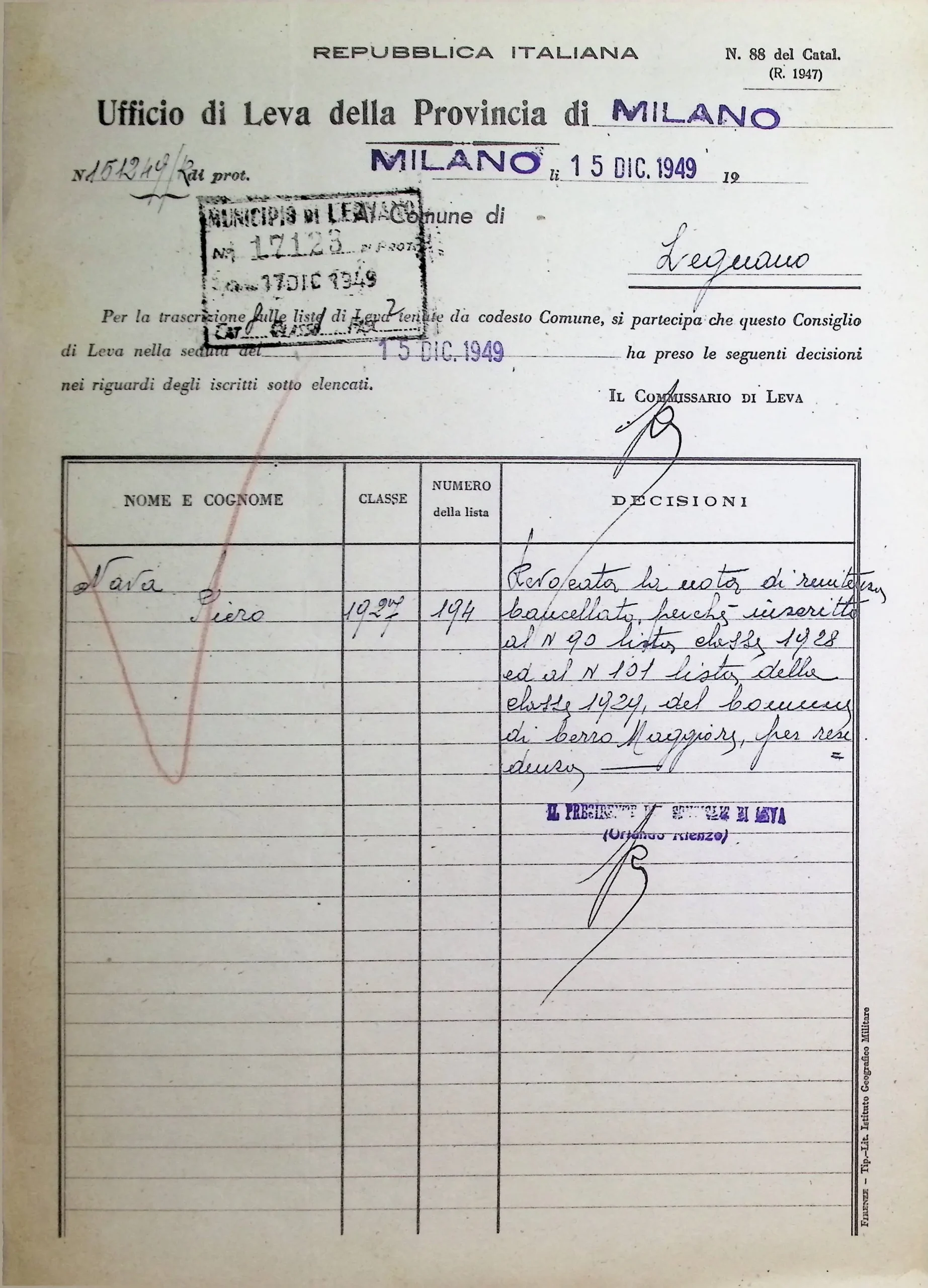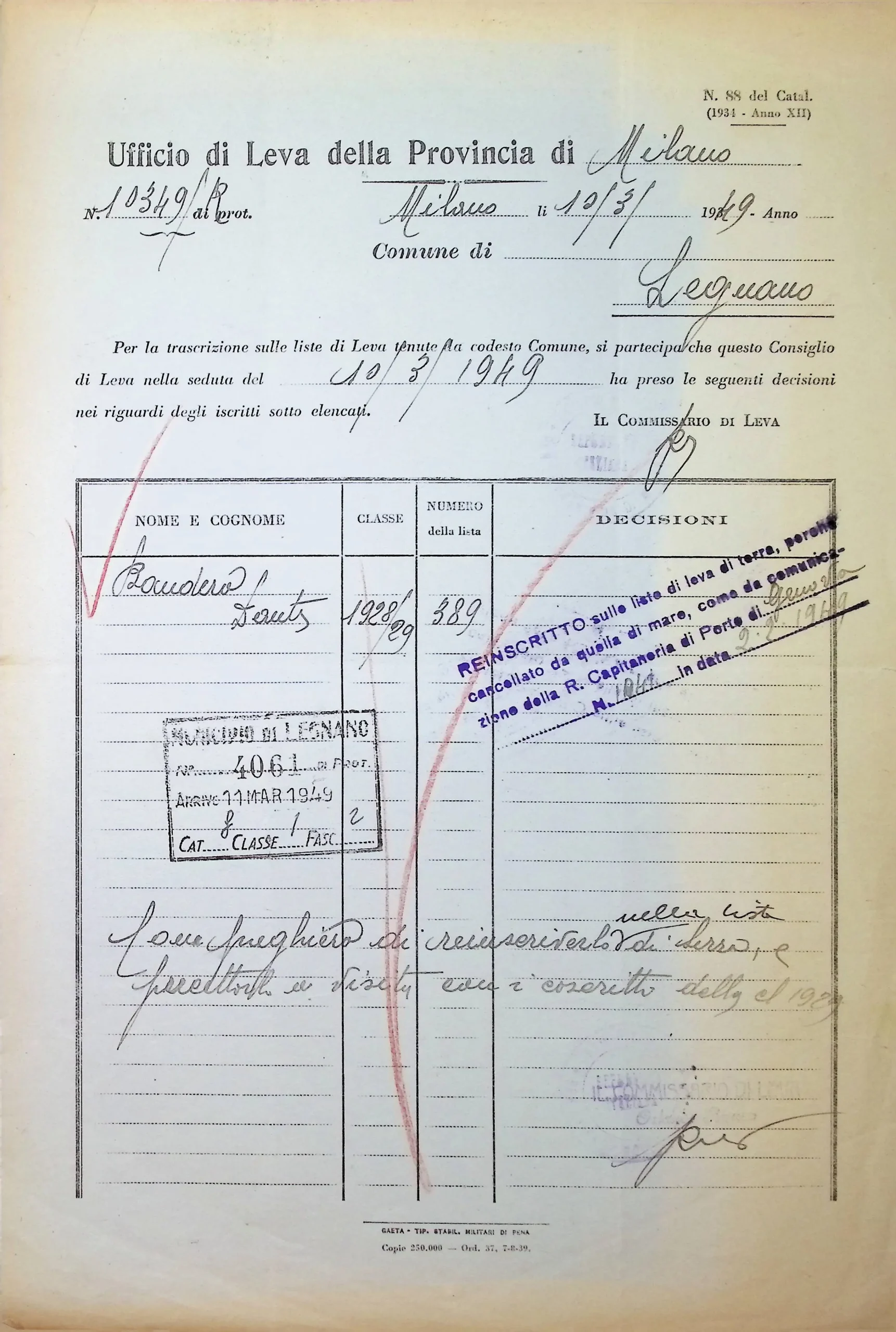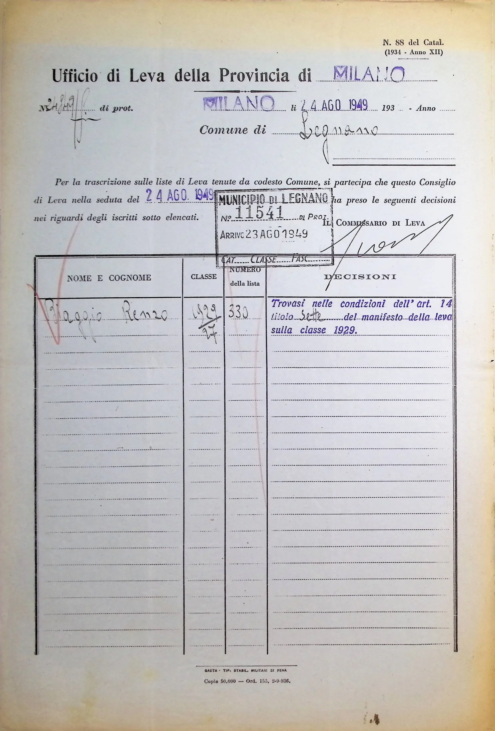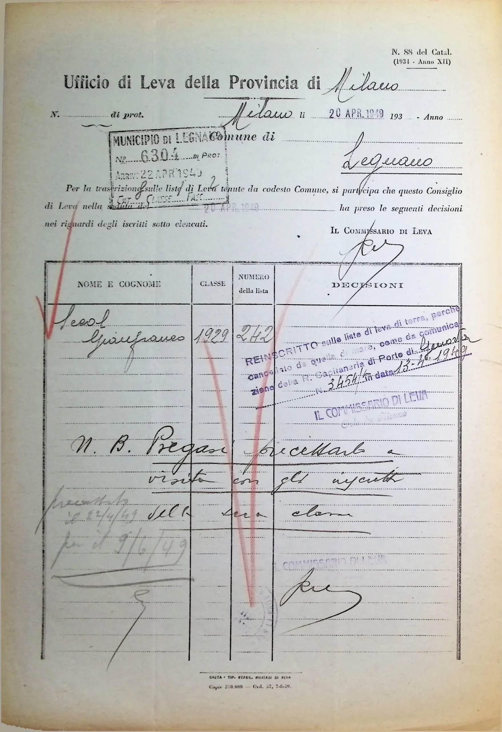 Aggiornamento delle liste di leva delle classi 1927, 1928, 1929, 1930