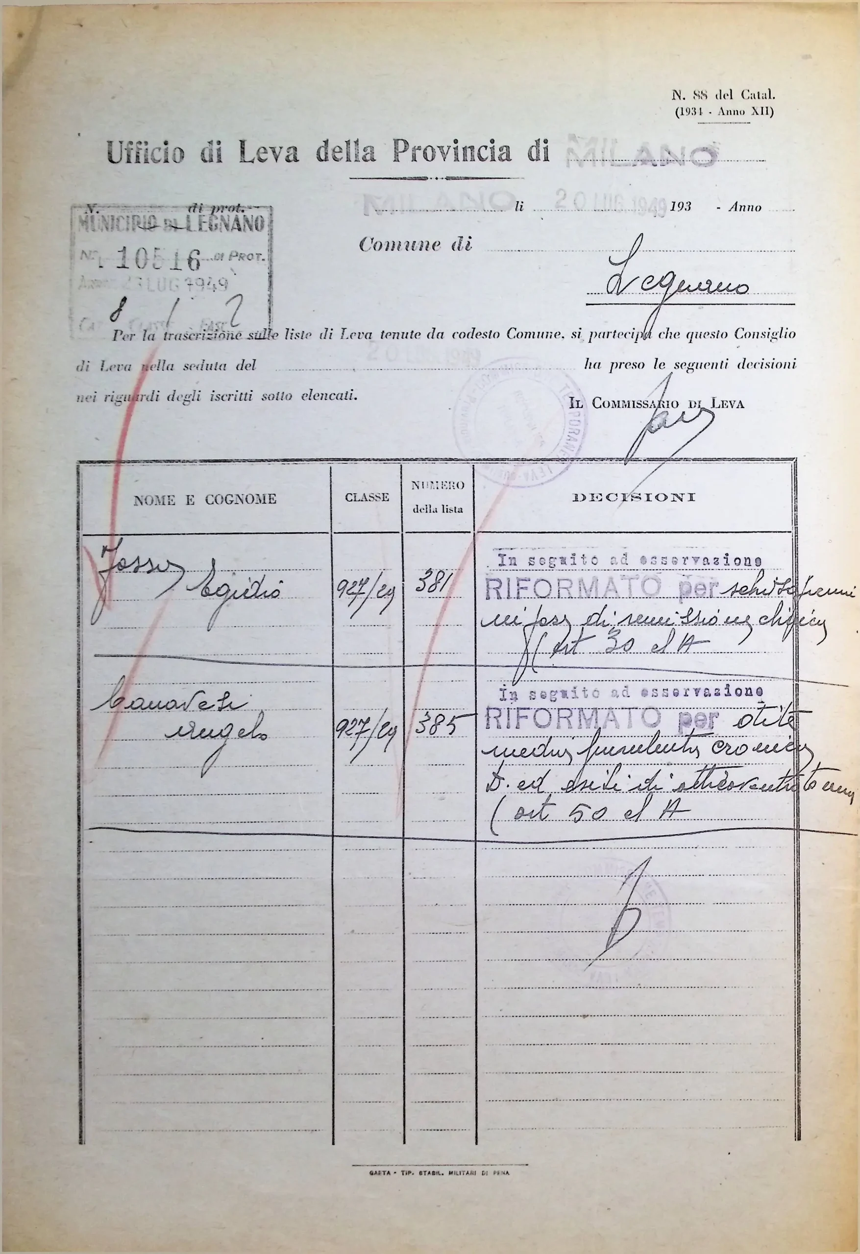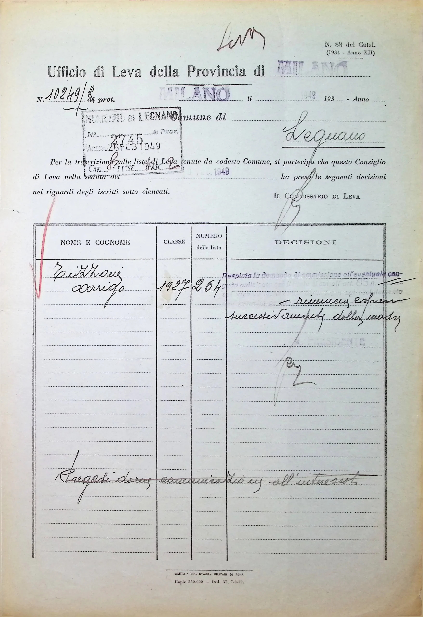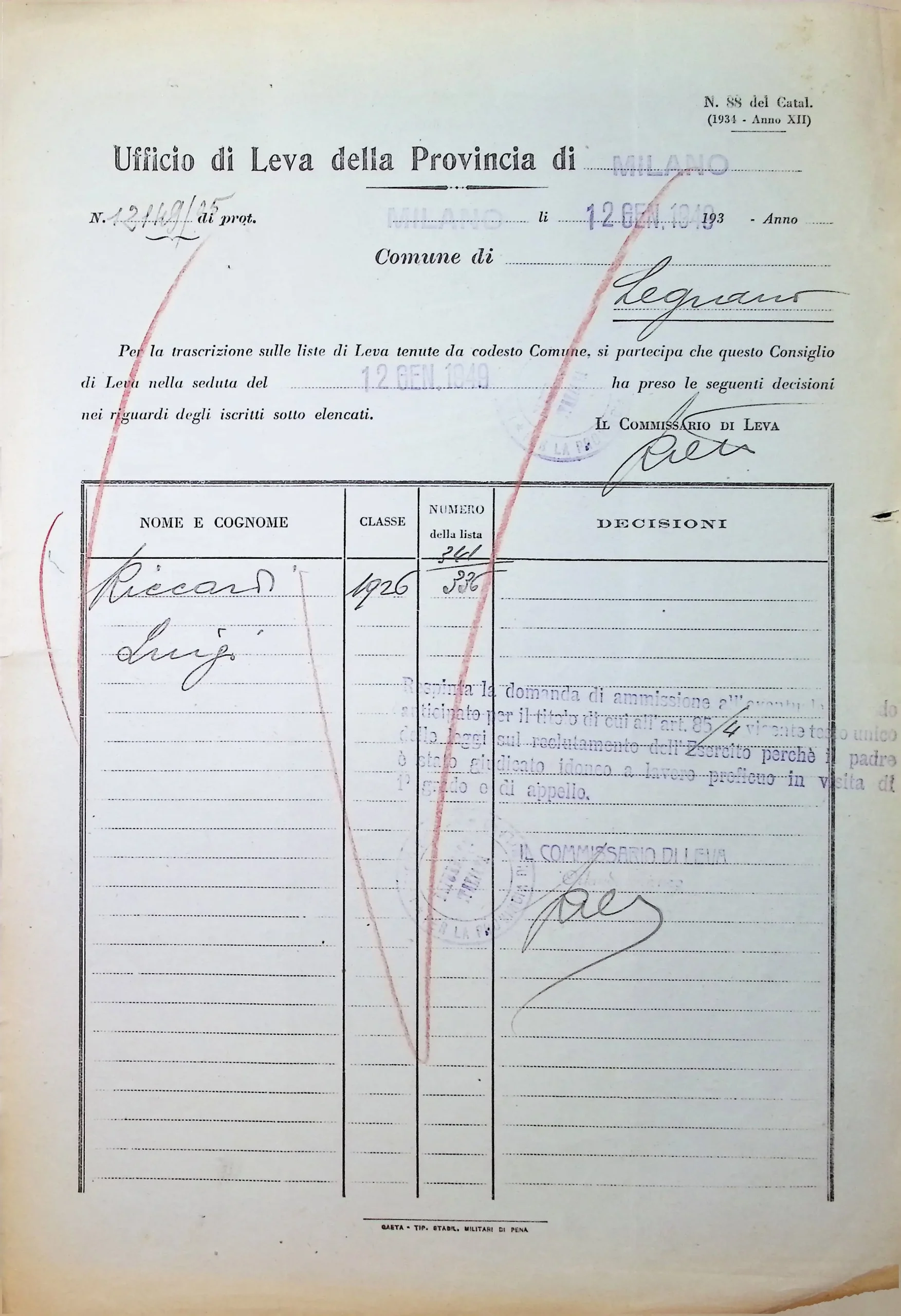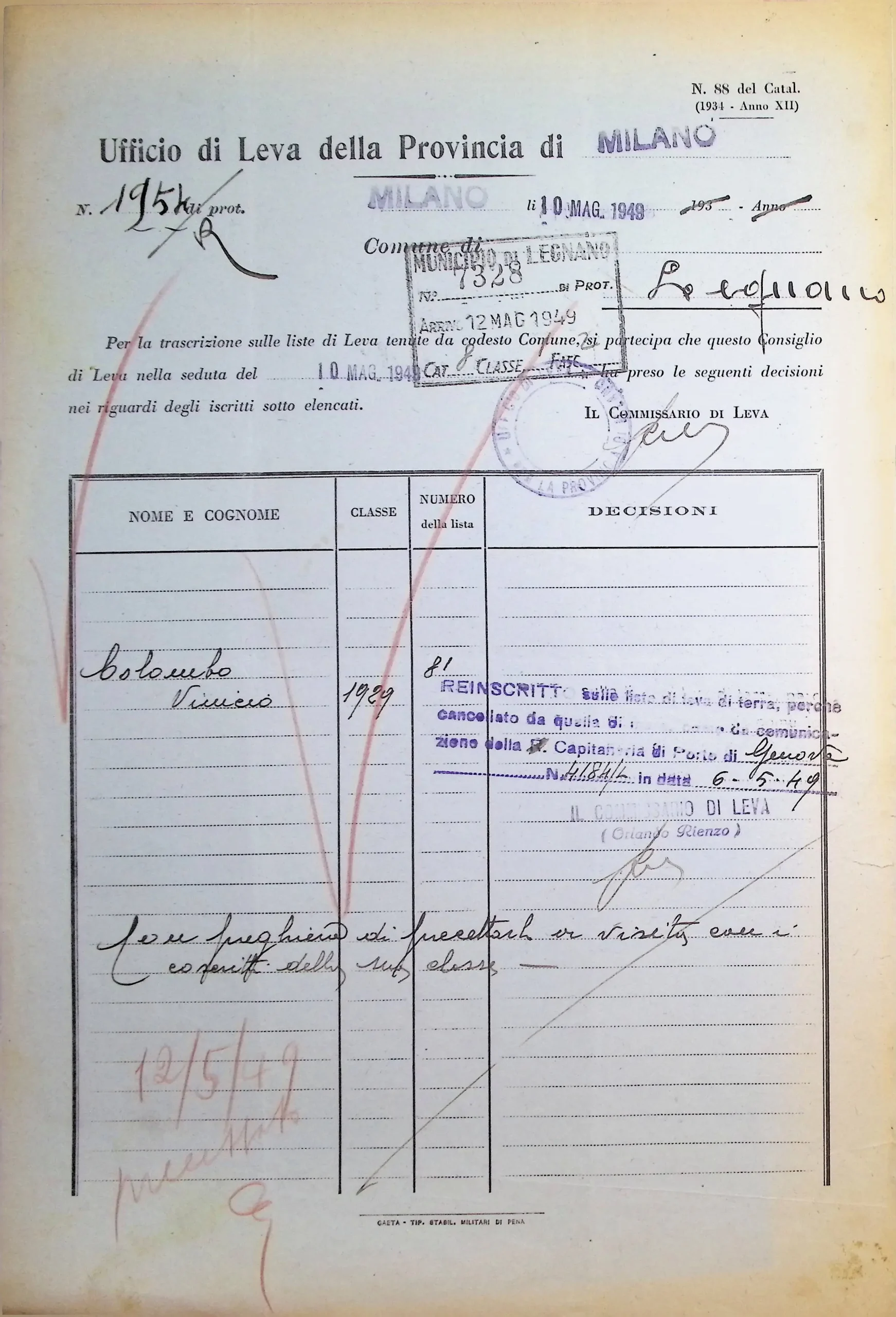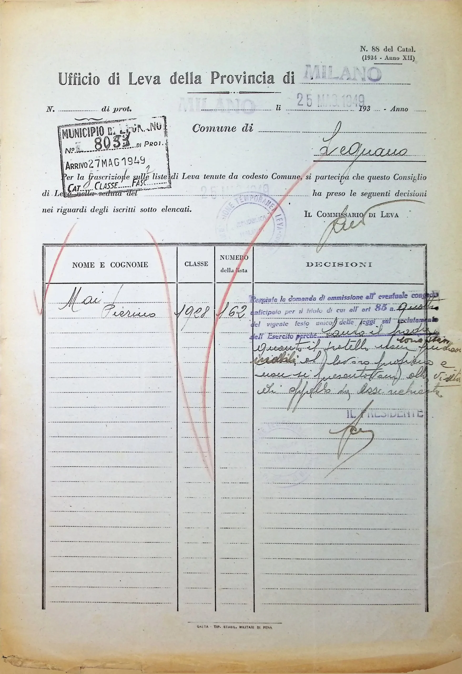 Aggiornamento delle liste di leva delle classi 1927, 1928, 1929, 1930