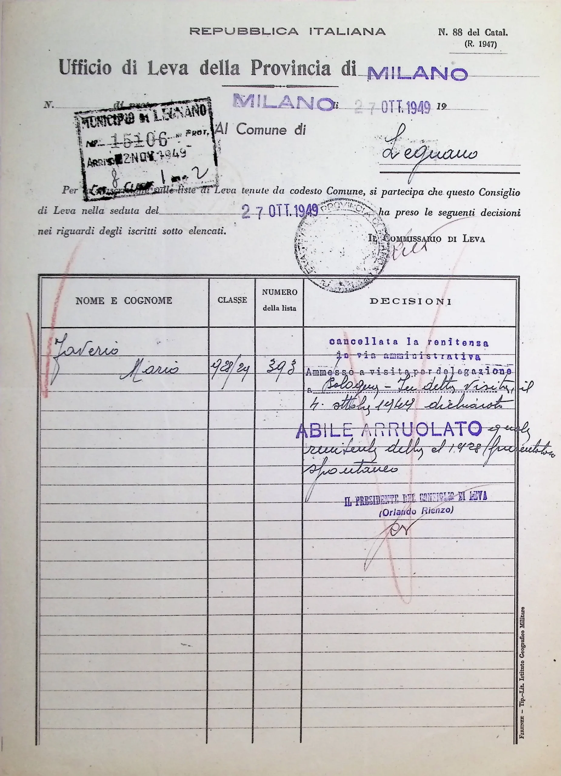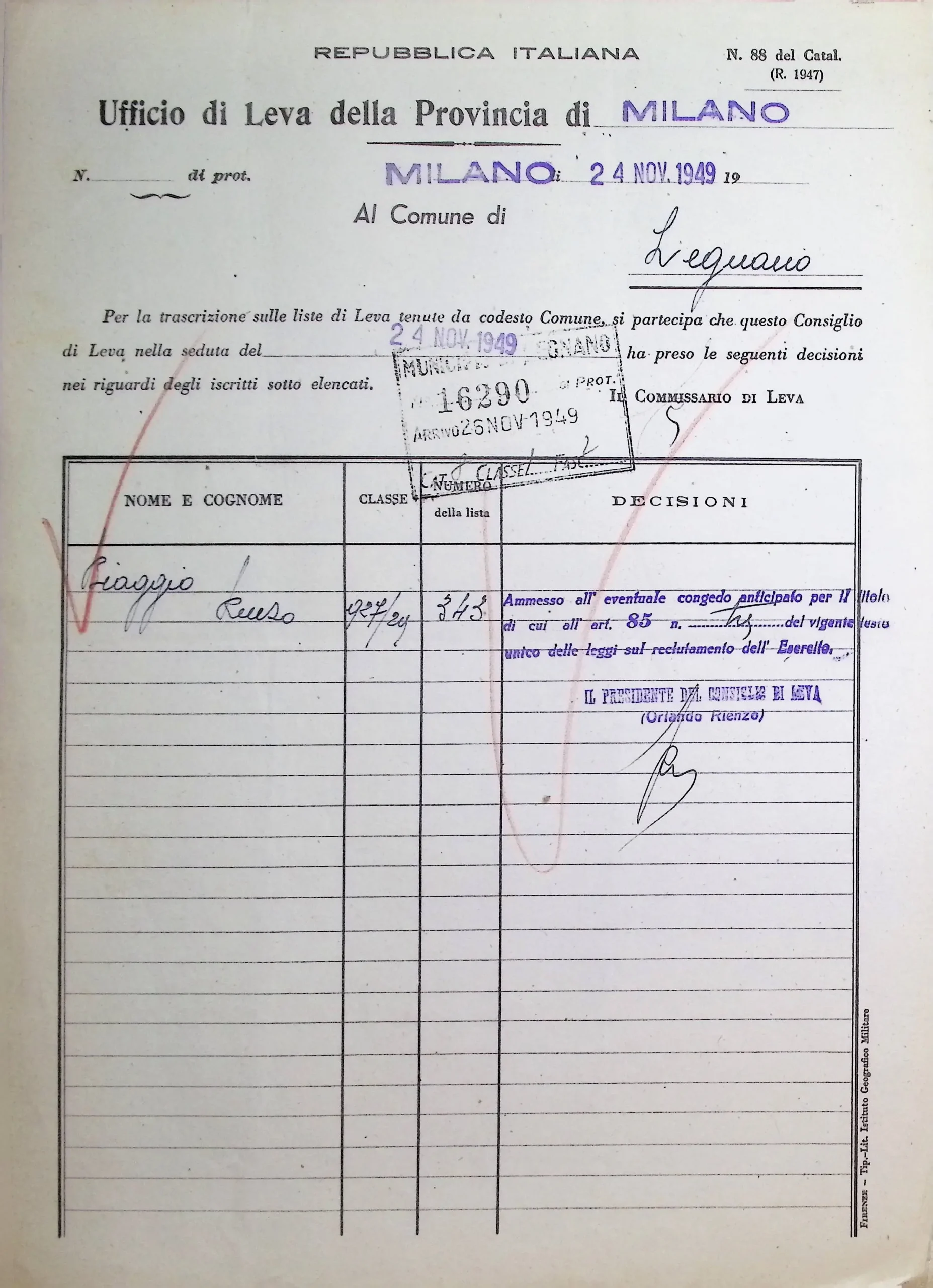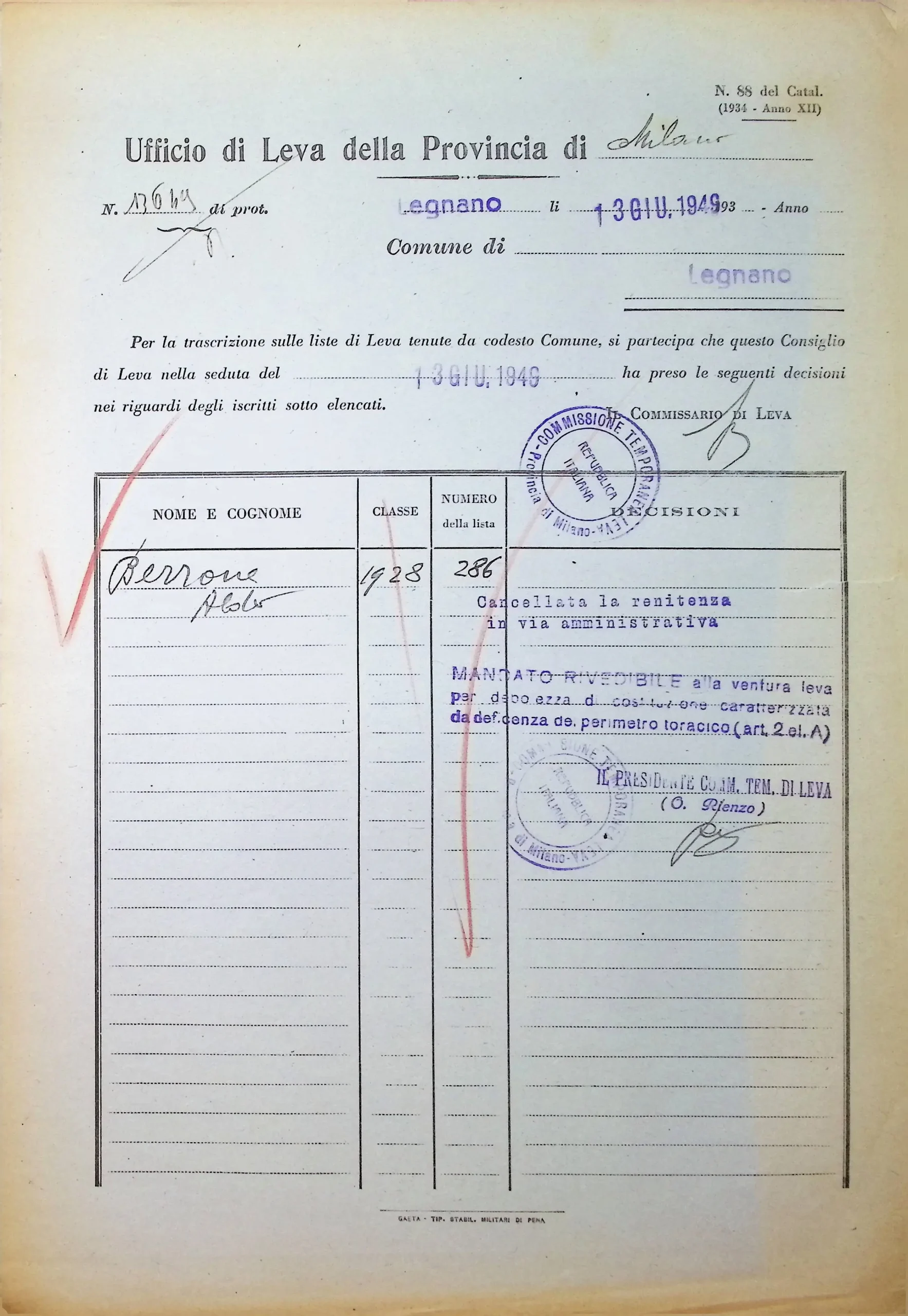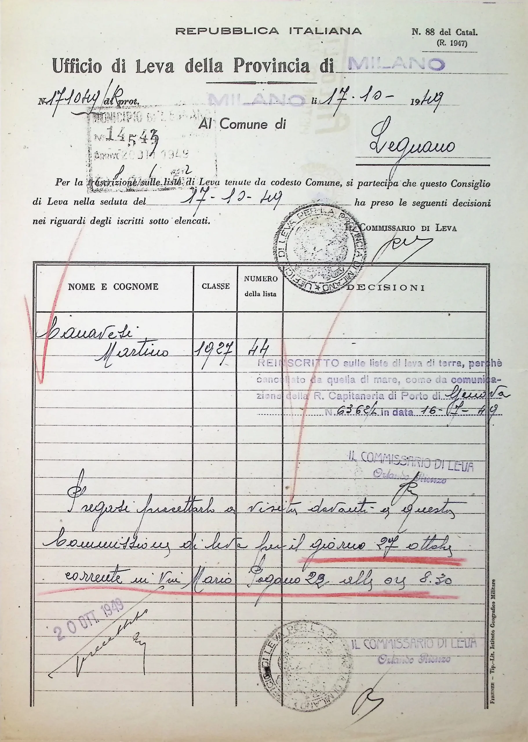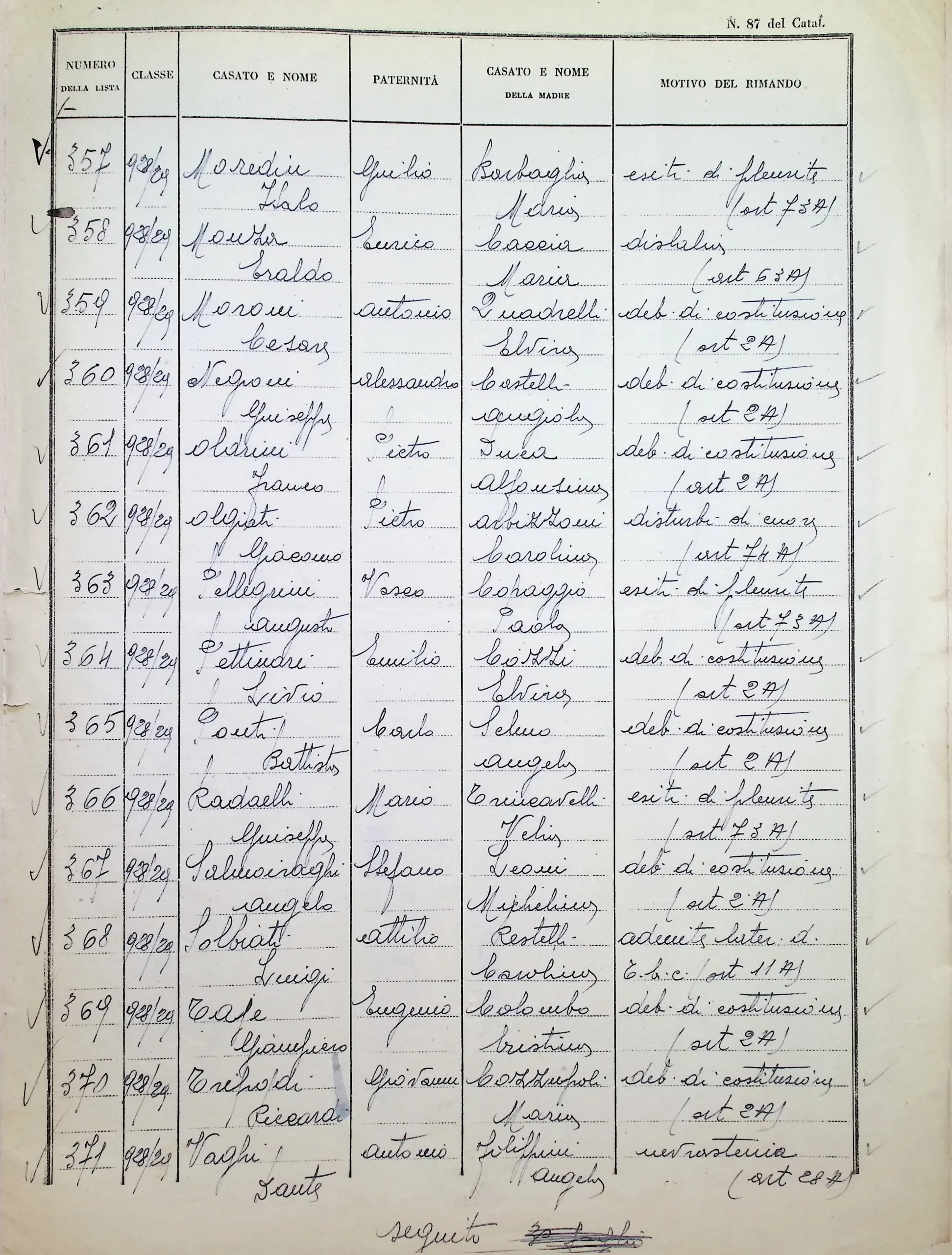 Aggiornamento delle liste di leva delle classi 1927, 1928, 1929, 1930