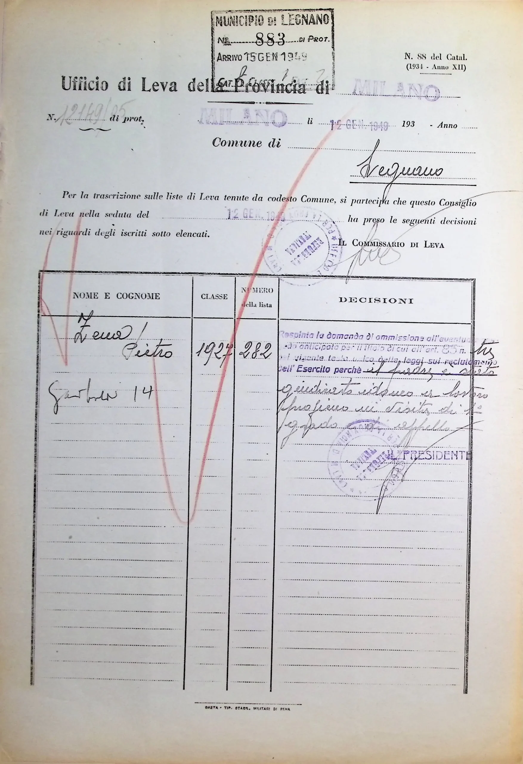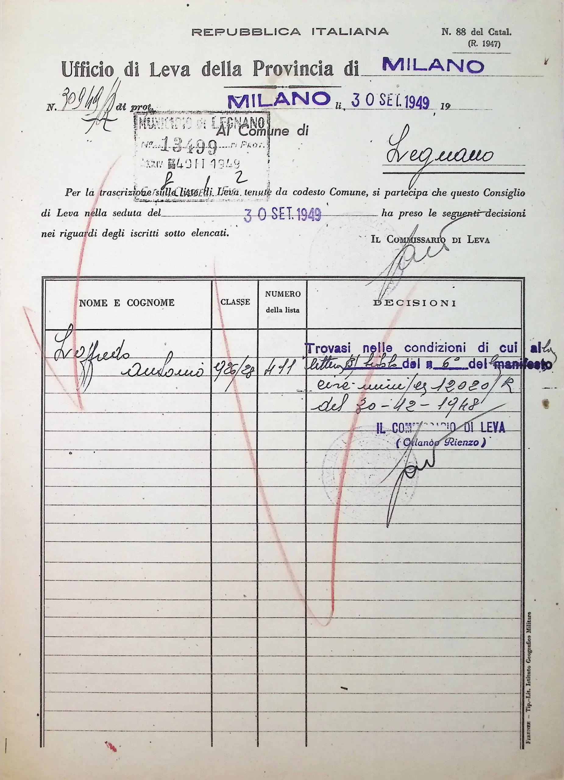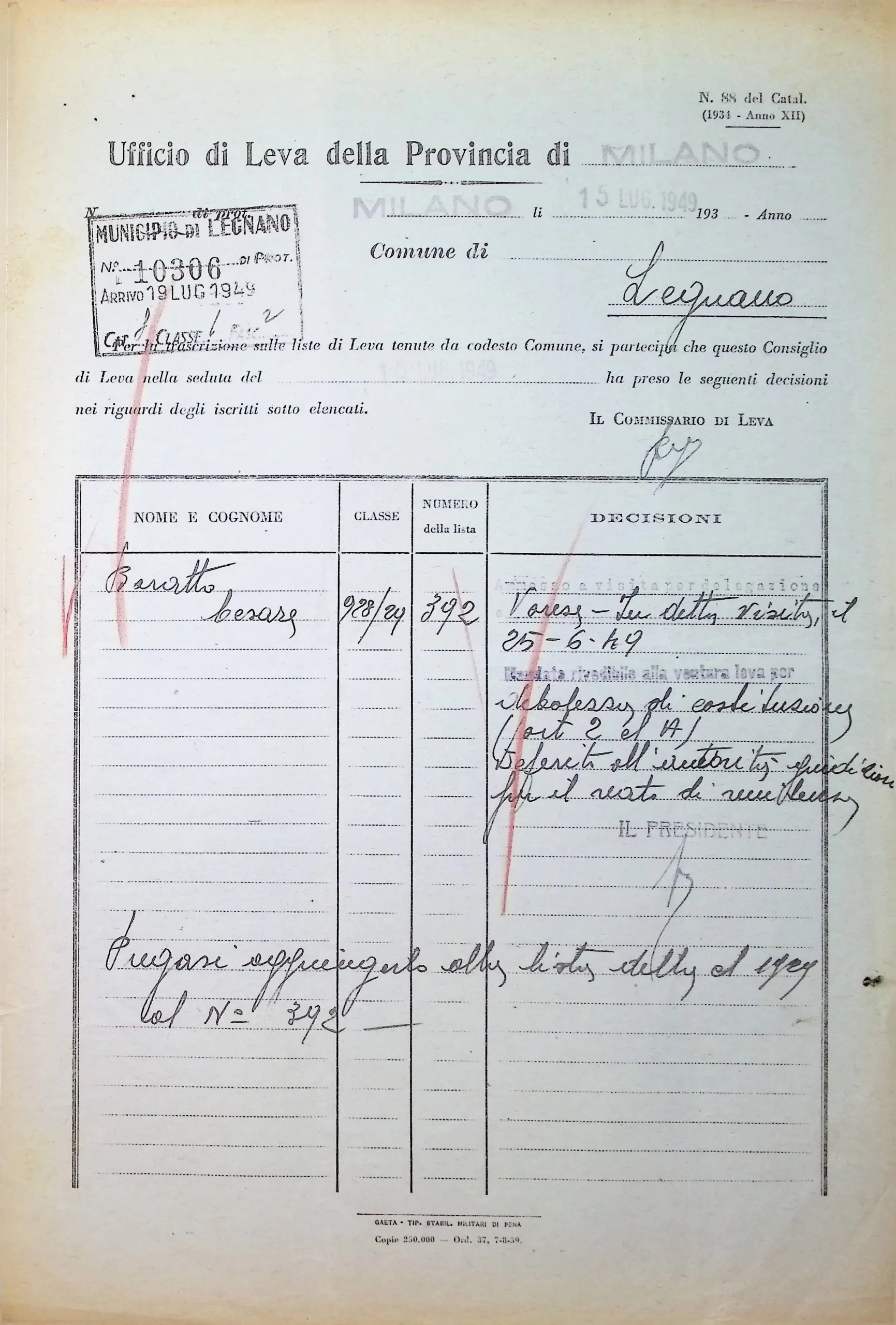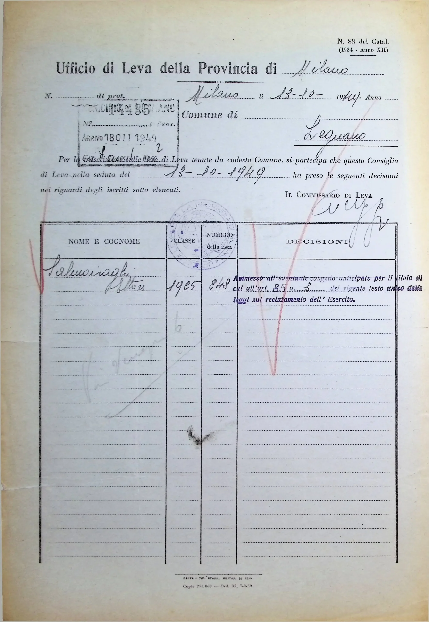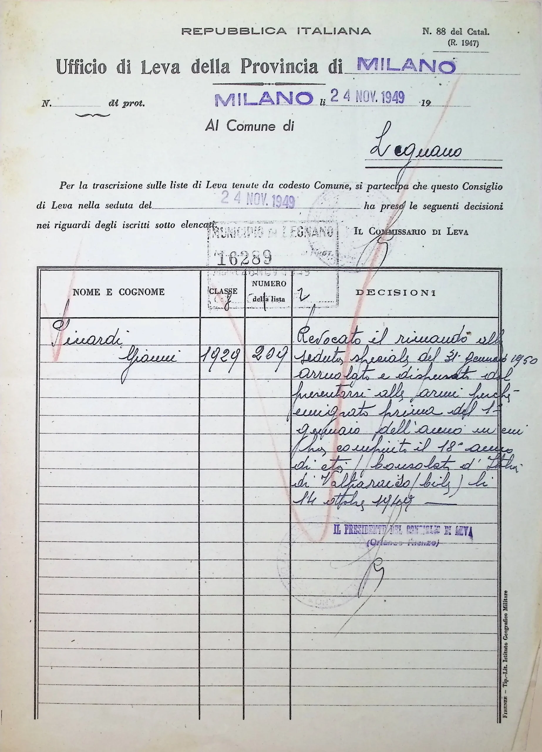 Aggiornamento delle liste di leva delle classi 1927, 1928, 1929, 1930