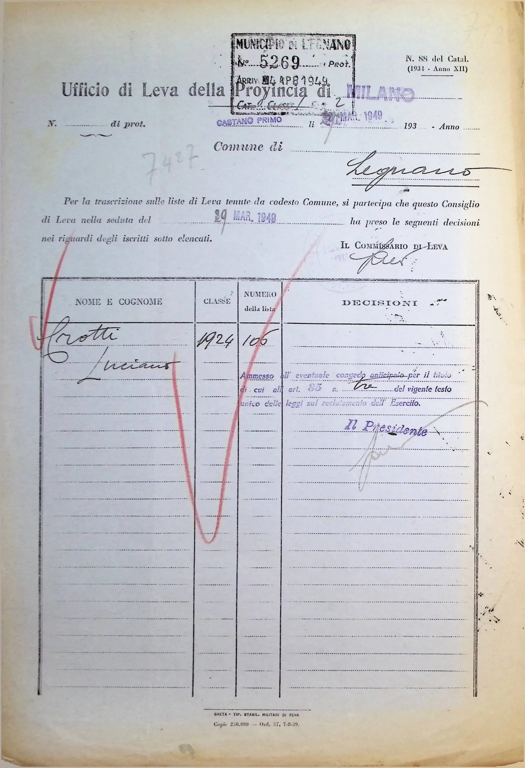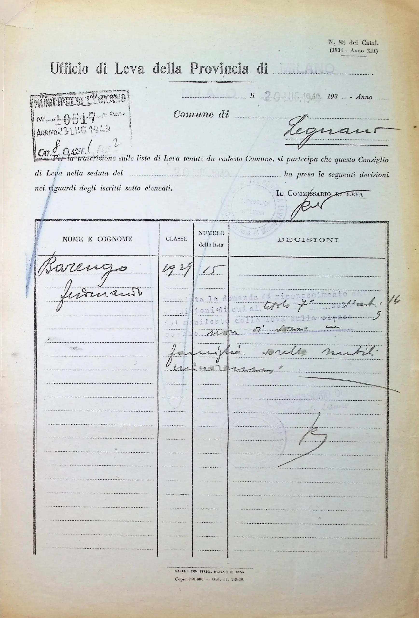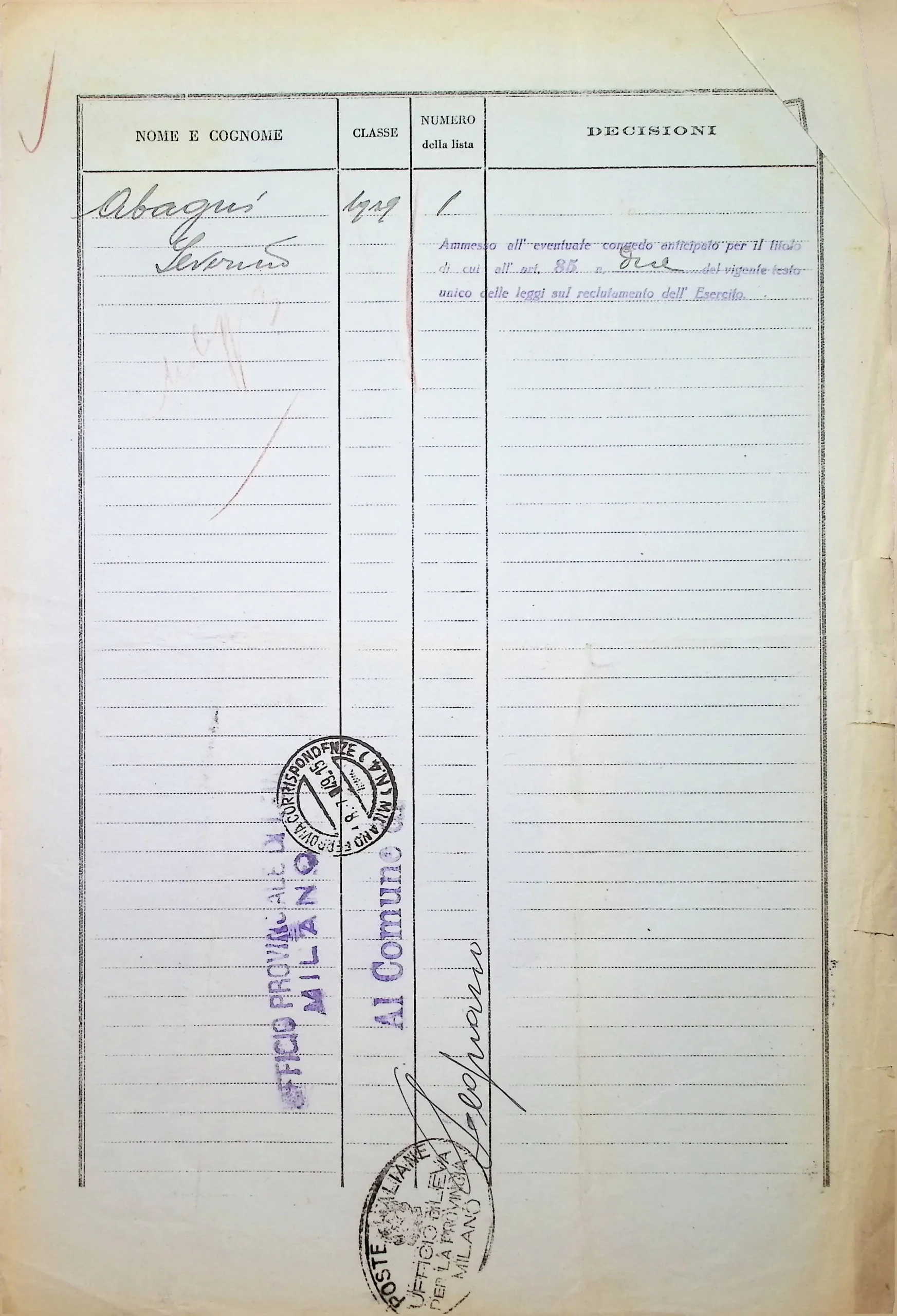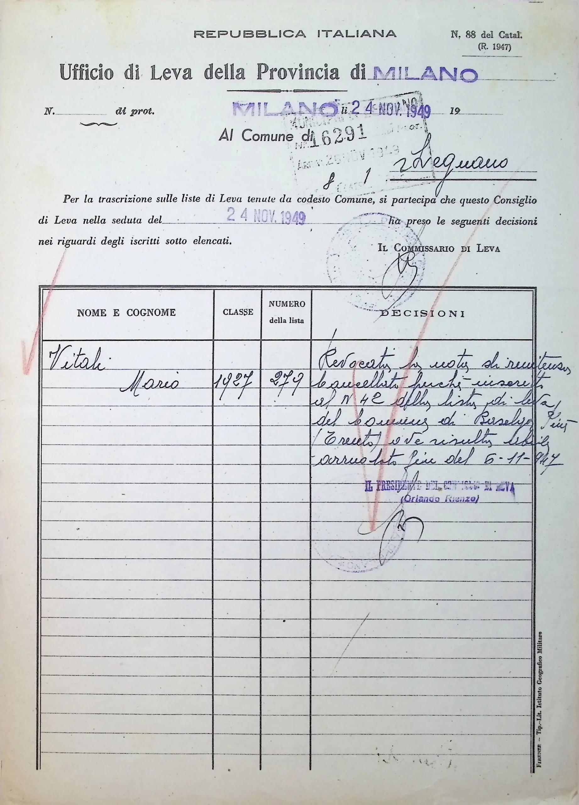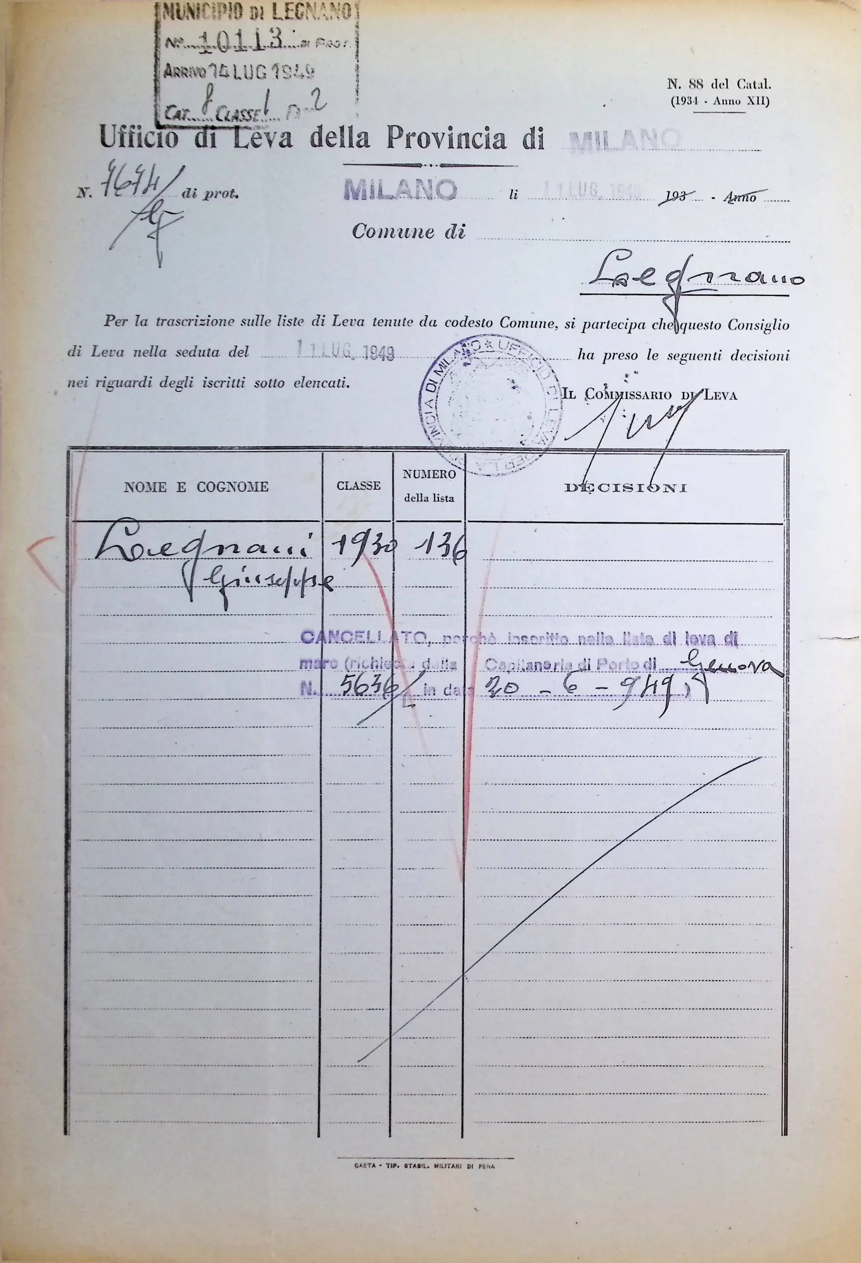 Aggiornamento delle liste di leva delle classi 1927, 1928, 1929, 1930
