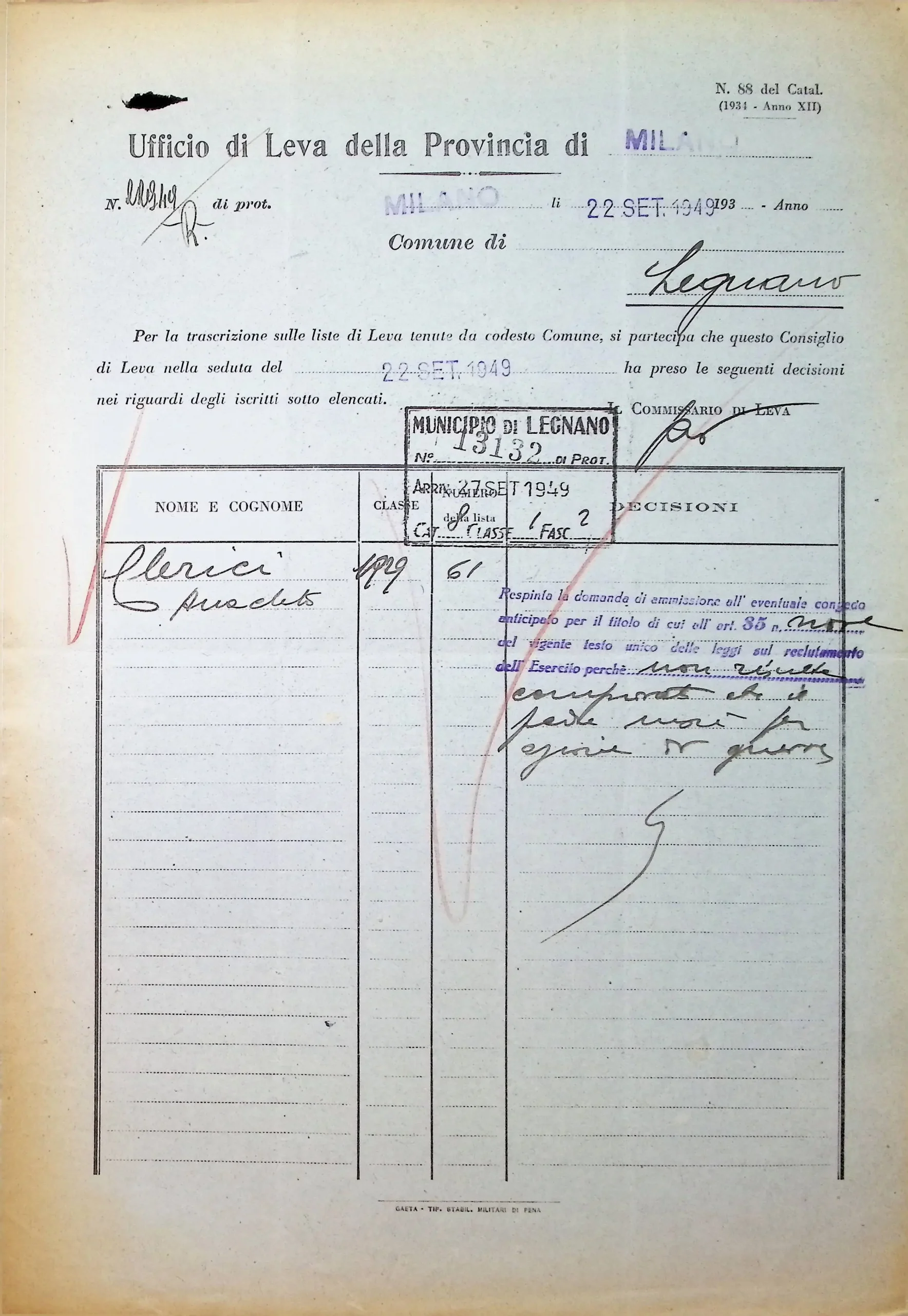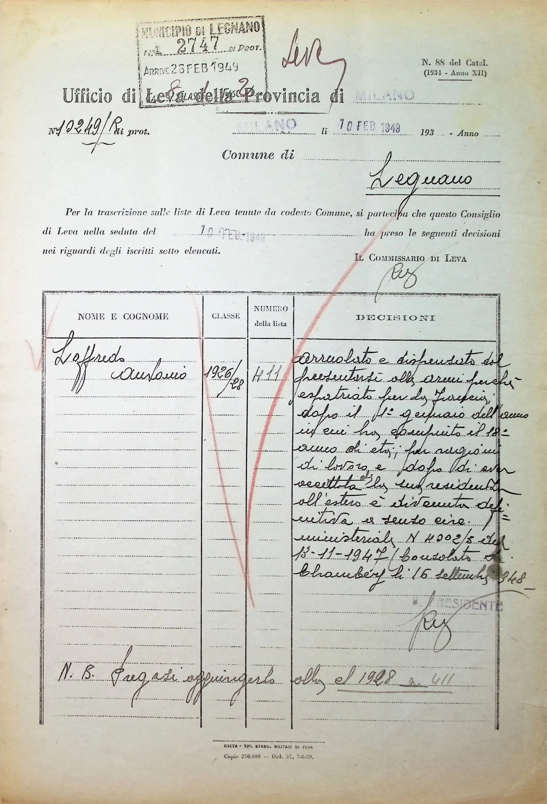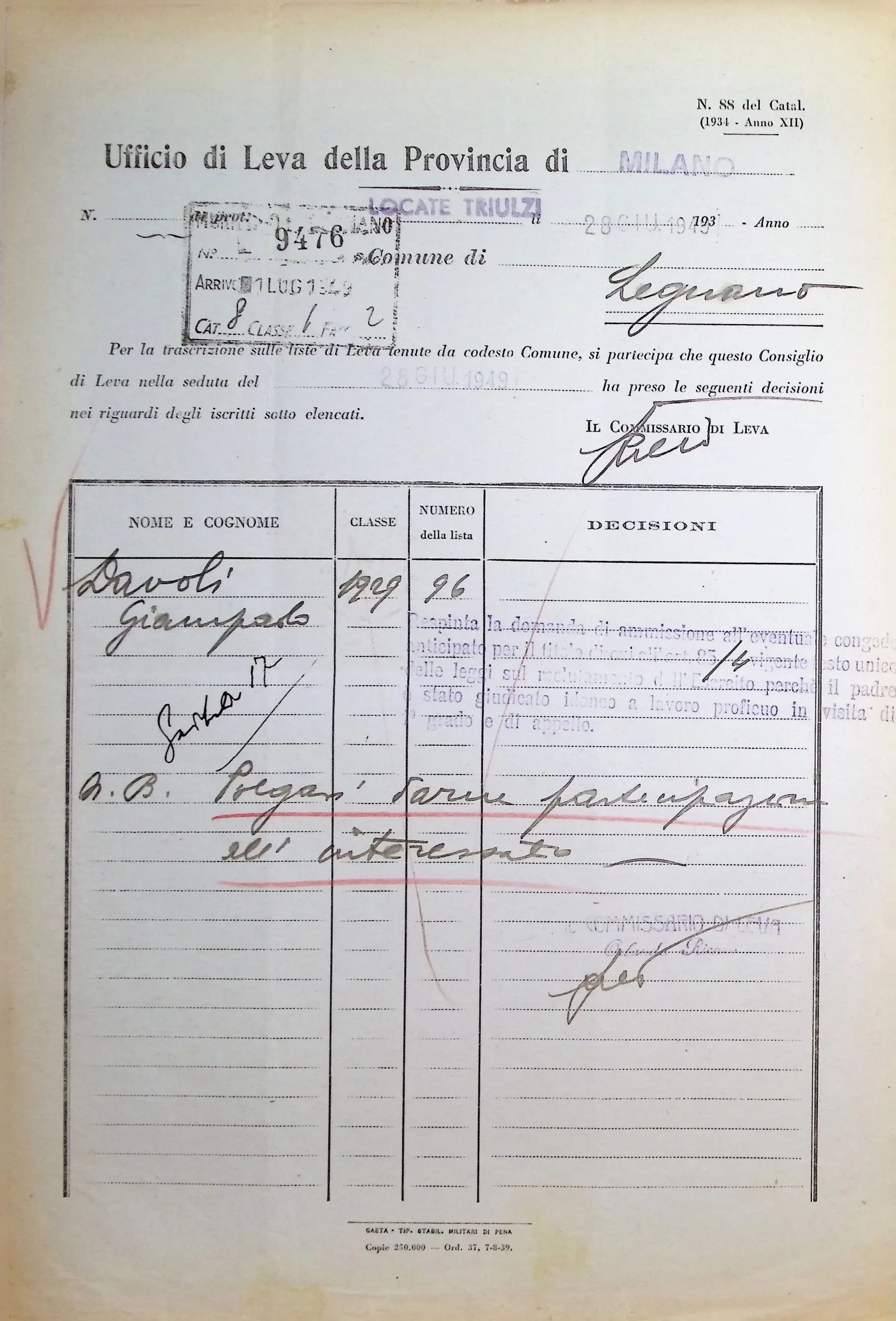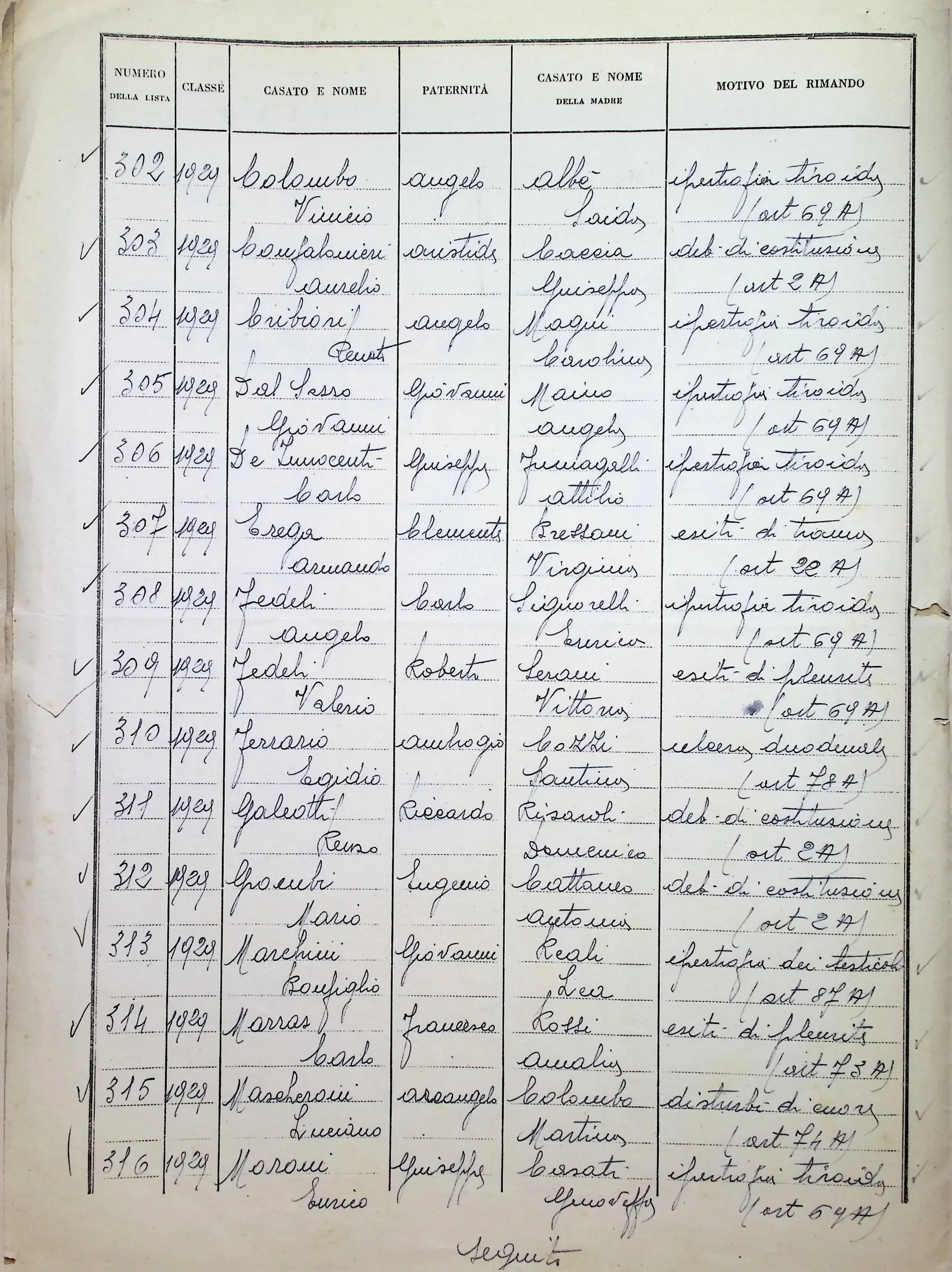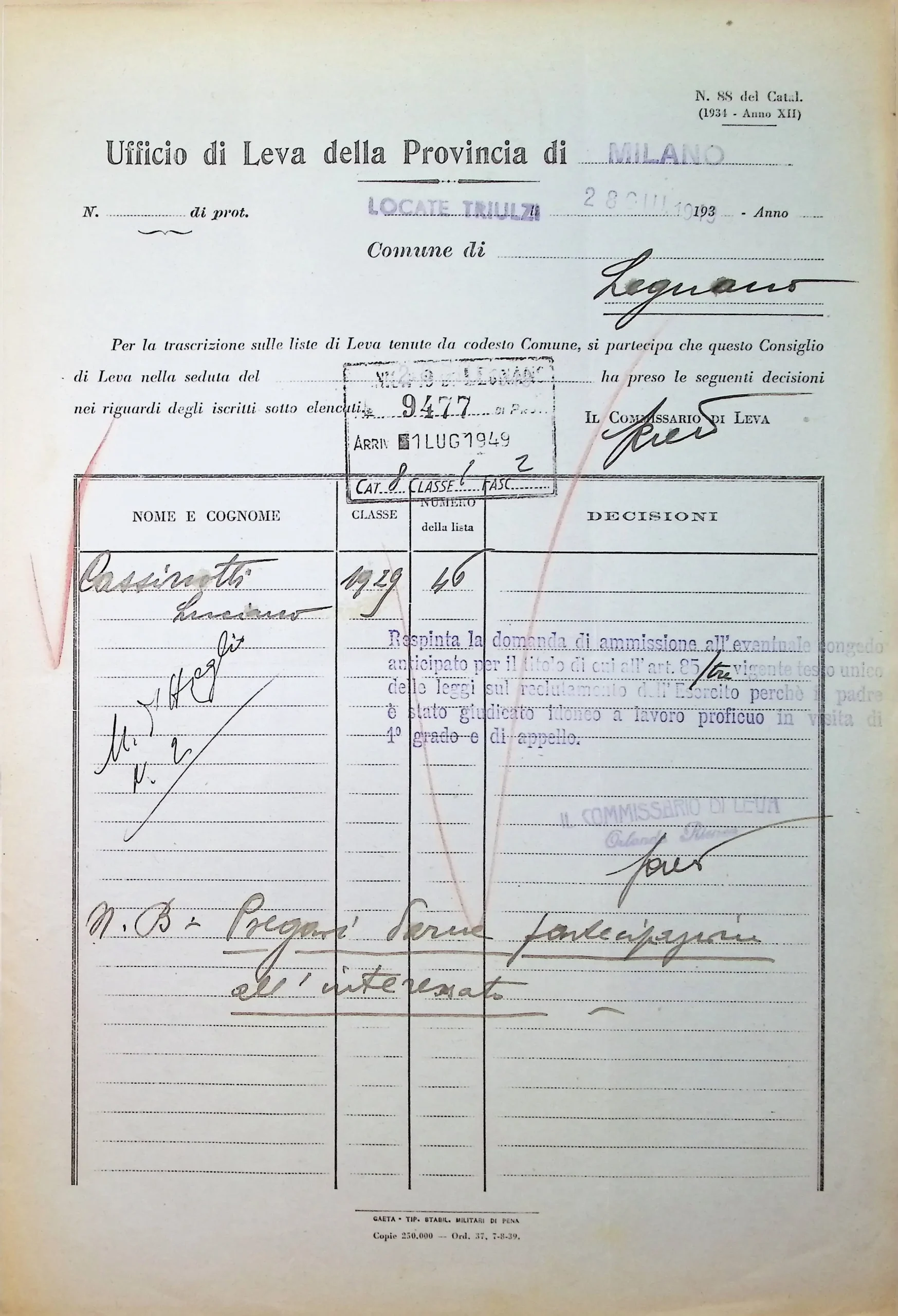Aggiornamento delle liste di leva delle classi 1927, 1928, 1929, 1930