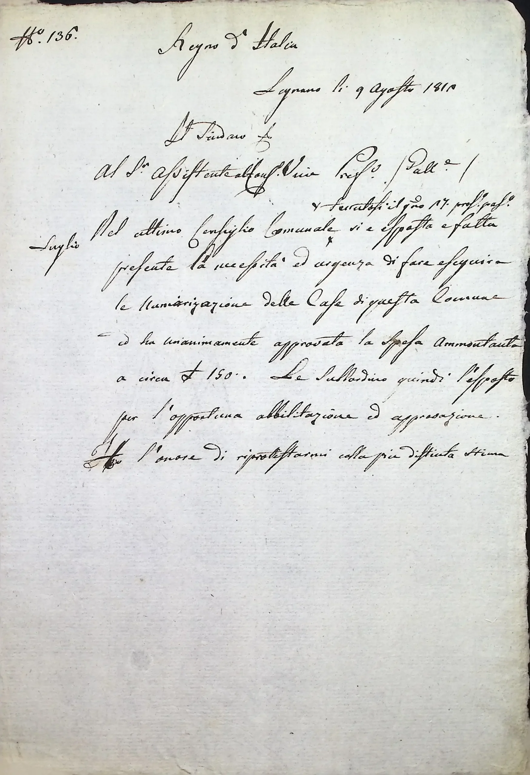 Approvazione della spesa per la numerazione delle case nel territorio comunale