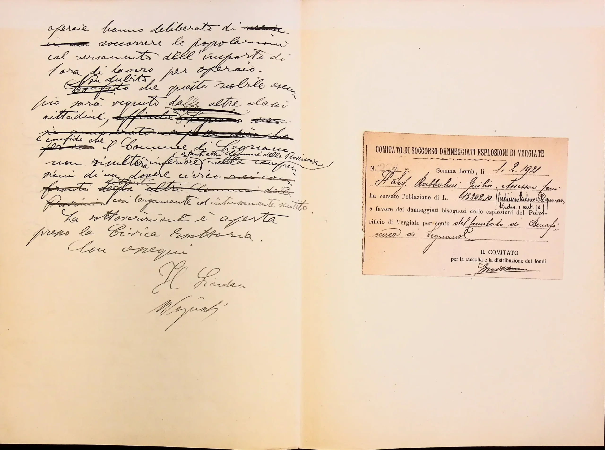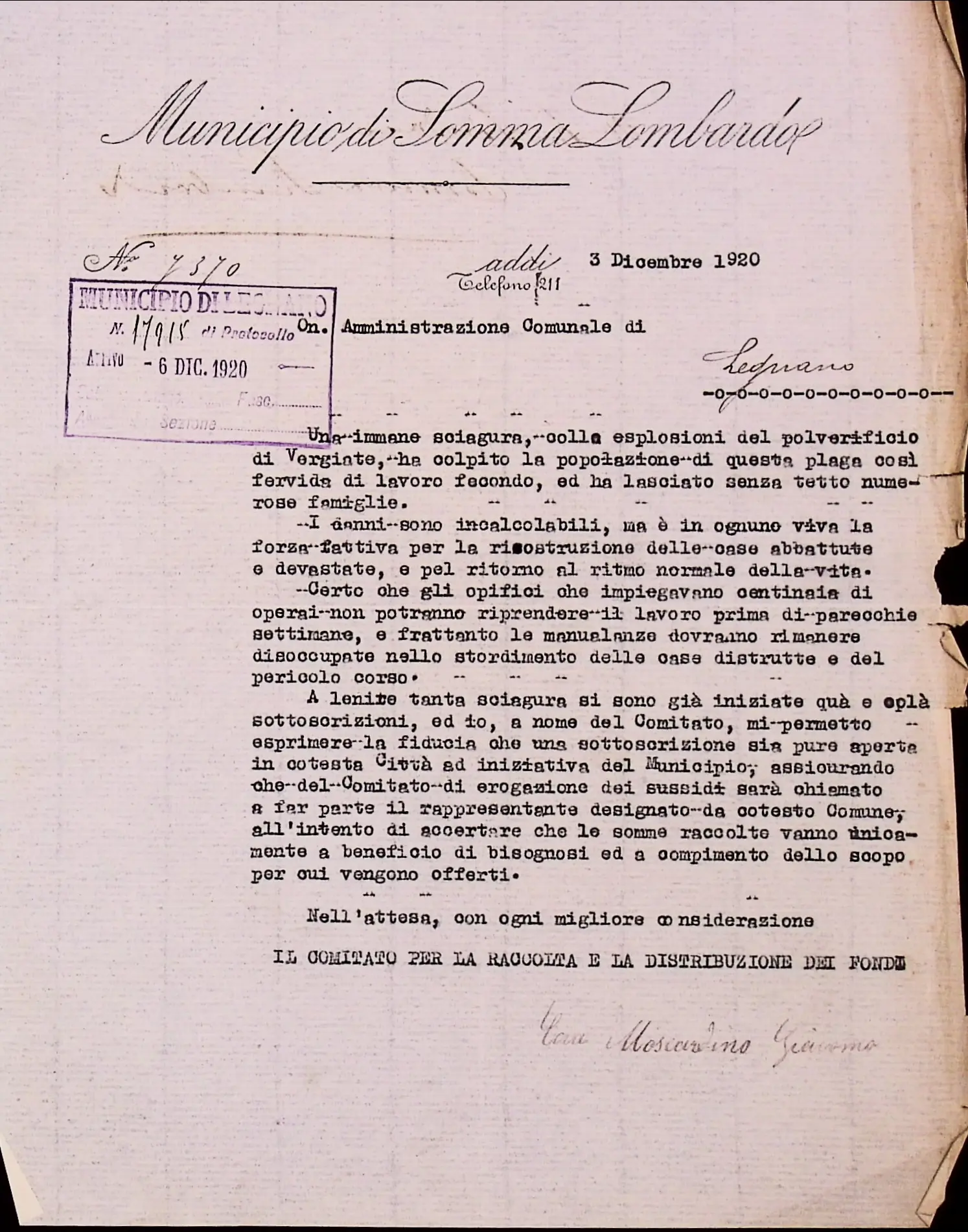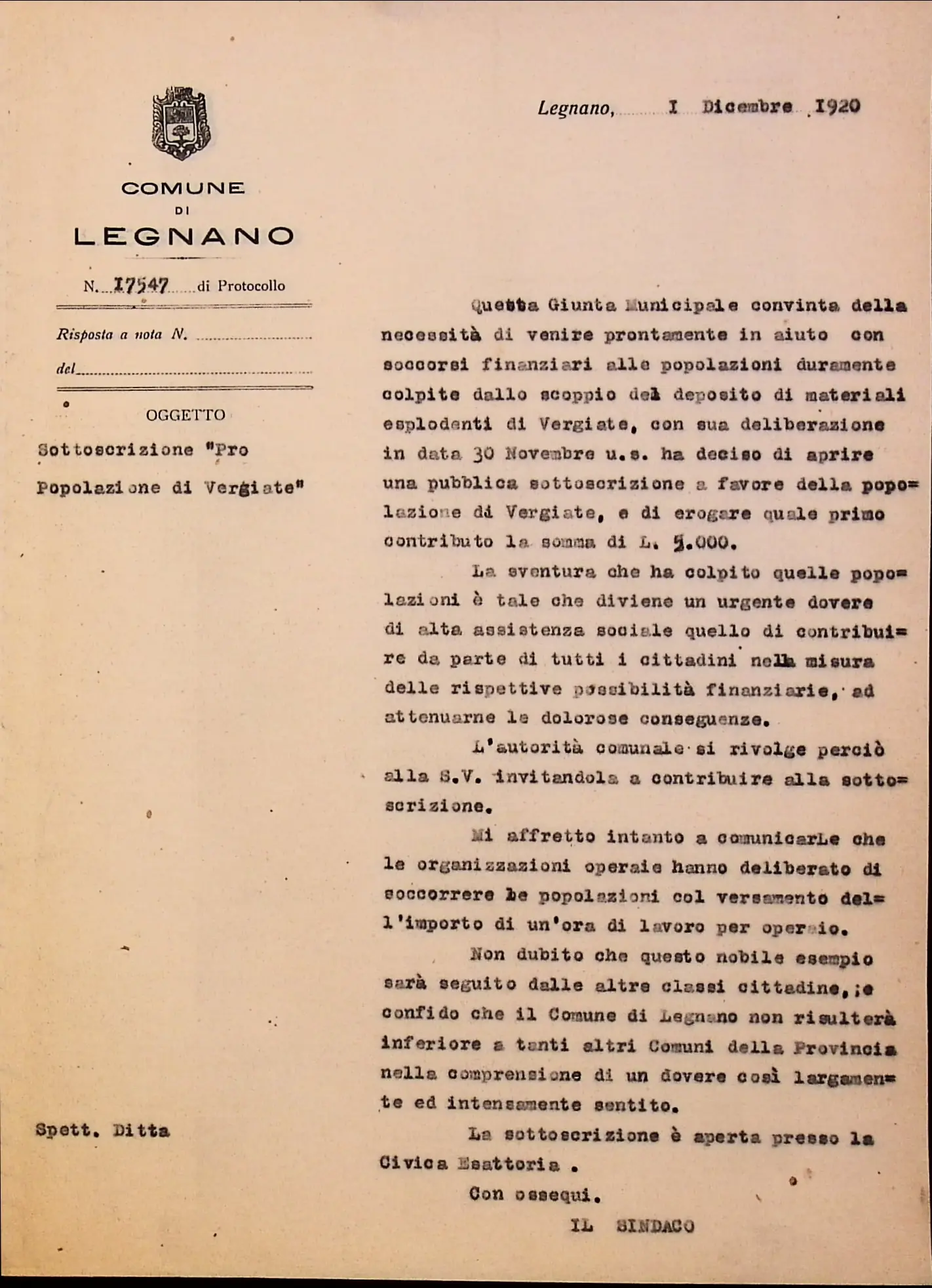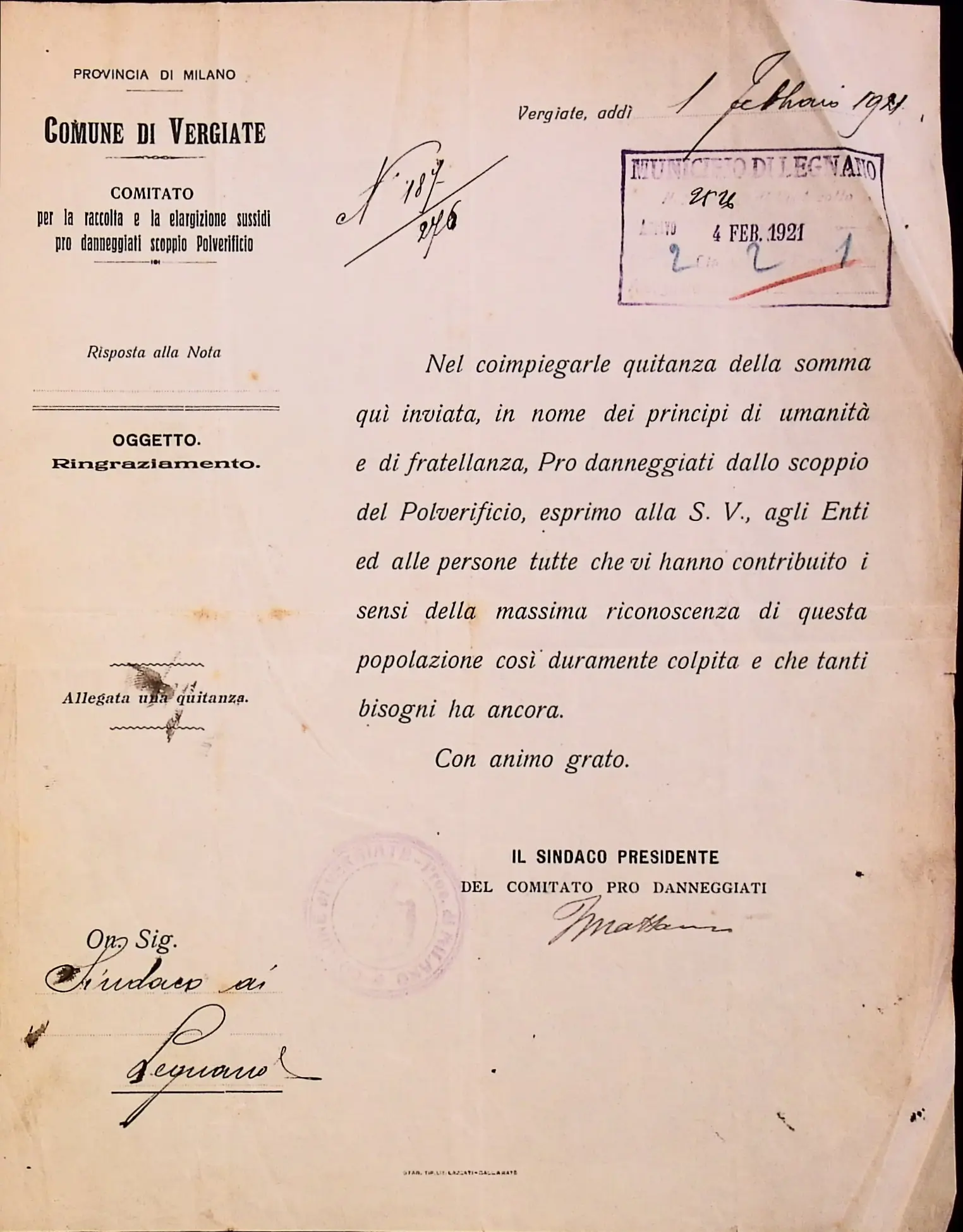Assistenza a favore dei danneggiati dallo scoppio del polverificio di Vergiate