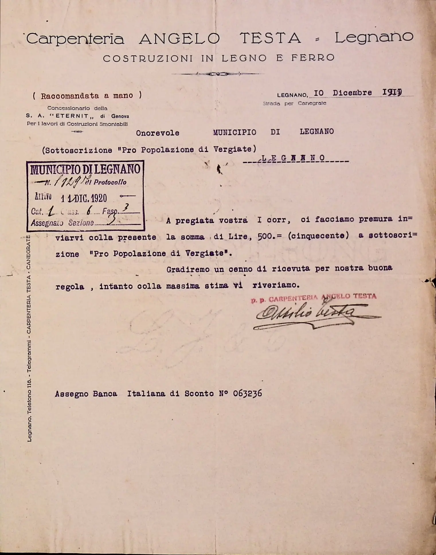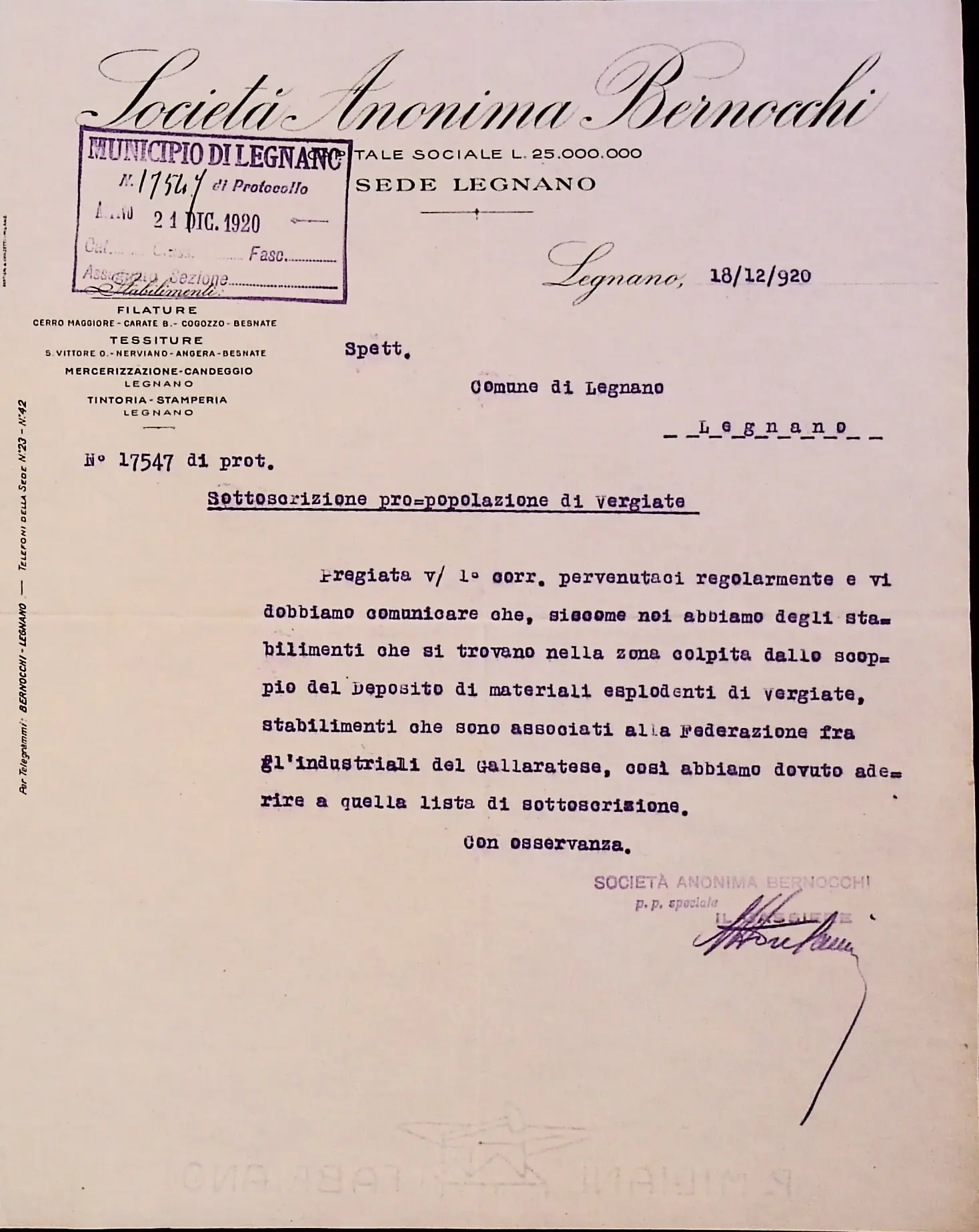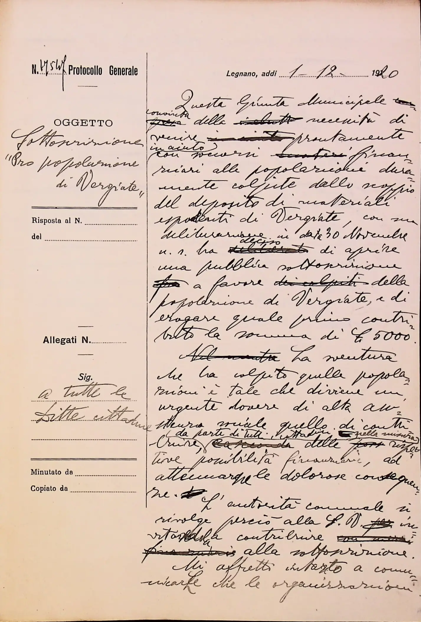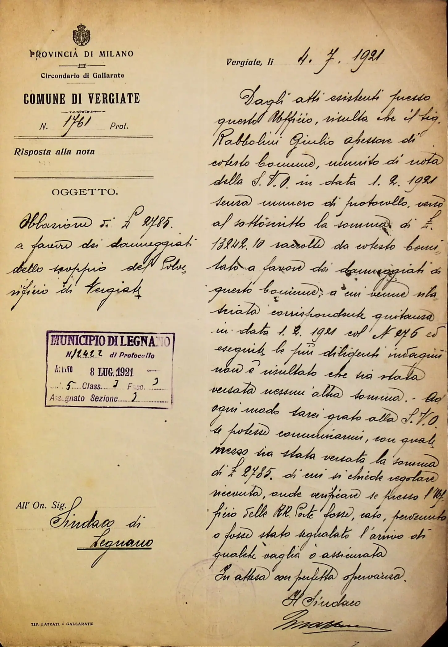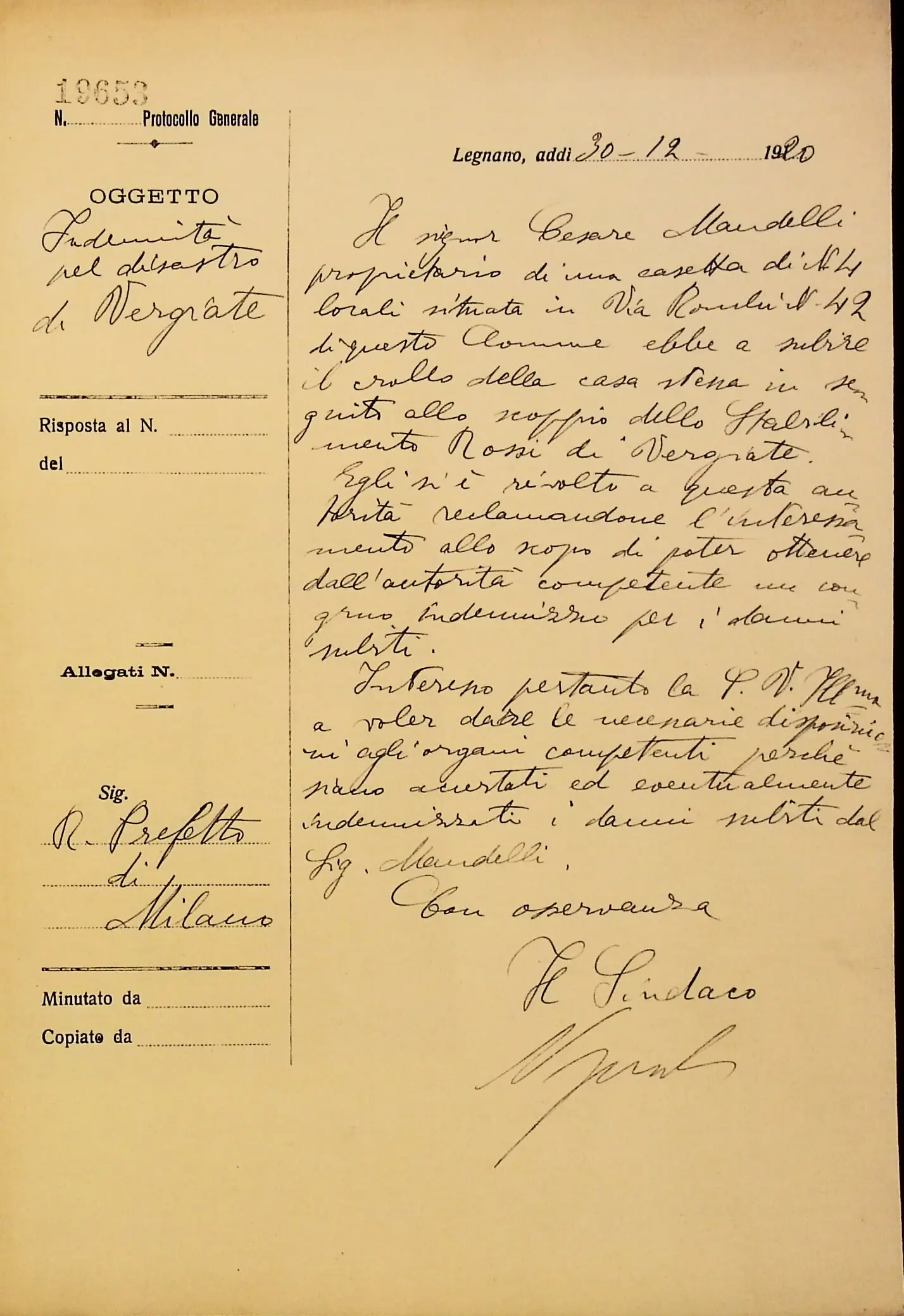 Assistenza a favore dei danneggiati dallo scoppio del polverificio di Vergiate