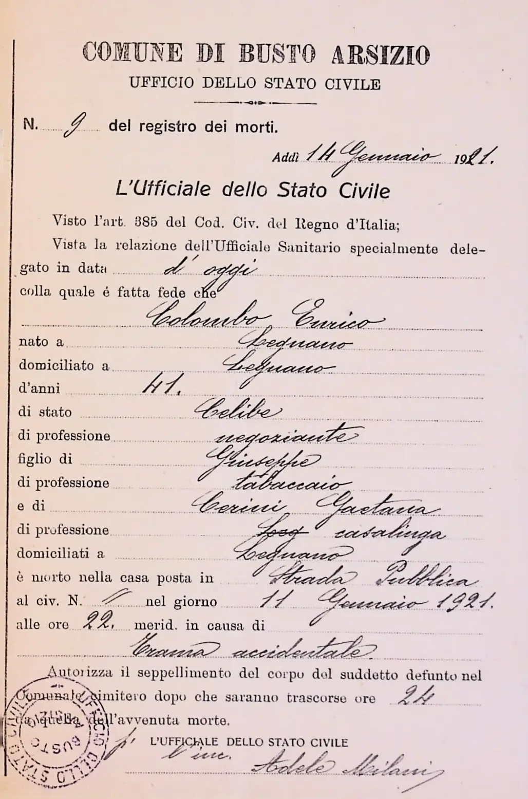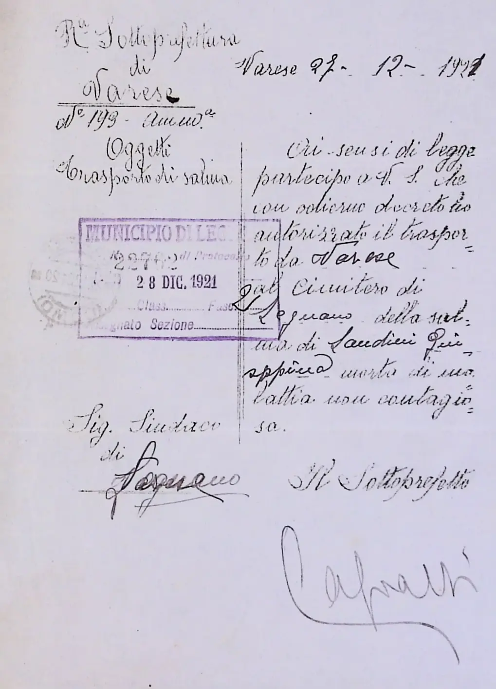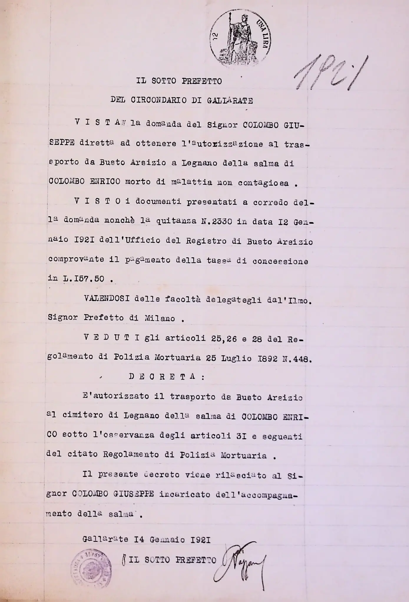 | Classificazione | IV.6 - Polizia mortuaria e cimiteri |