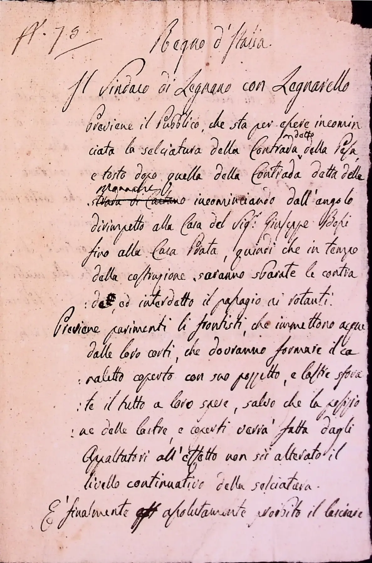 Avviso del Sindaco in occasione della selciatura della contrada detta della Pesa e delle Monache