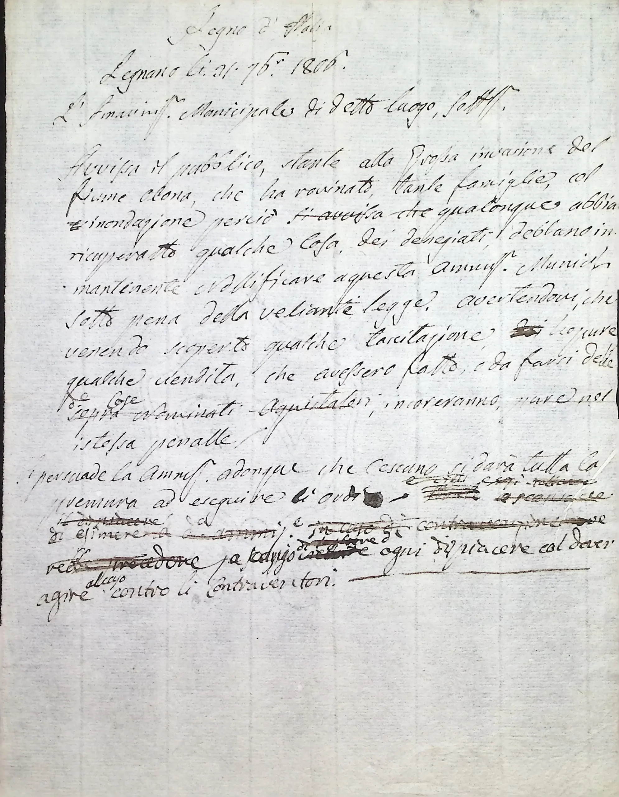 Avviso dell’Amministrazione Municipale per la consegna degli oggetti comunque recuperati dopo la inondazione dovuta alla piena dell’Olona