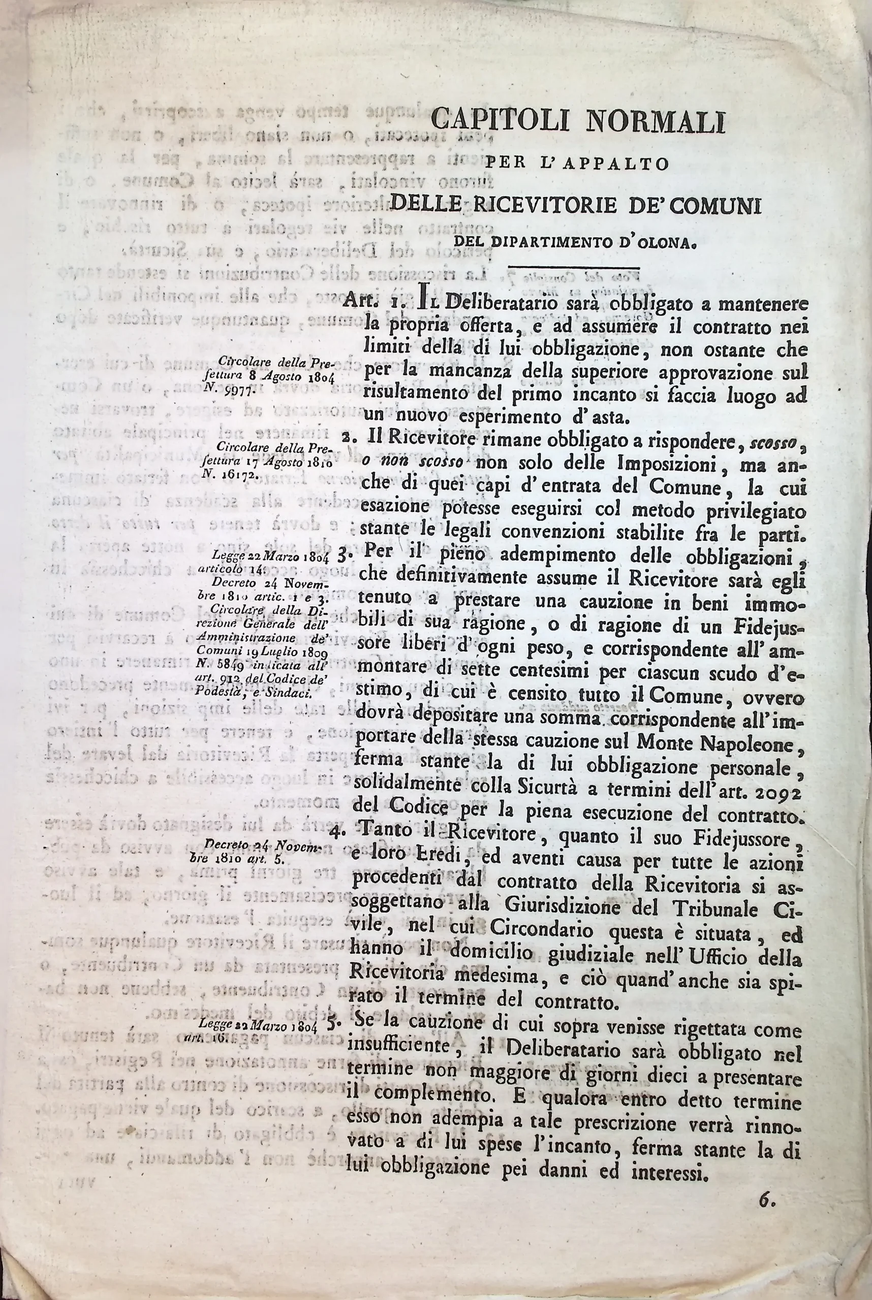 | Note dell'archivista | Descrizione precedente: "Capitali normali per l'appalto delle esattorie comunali". |