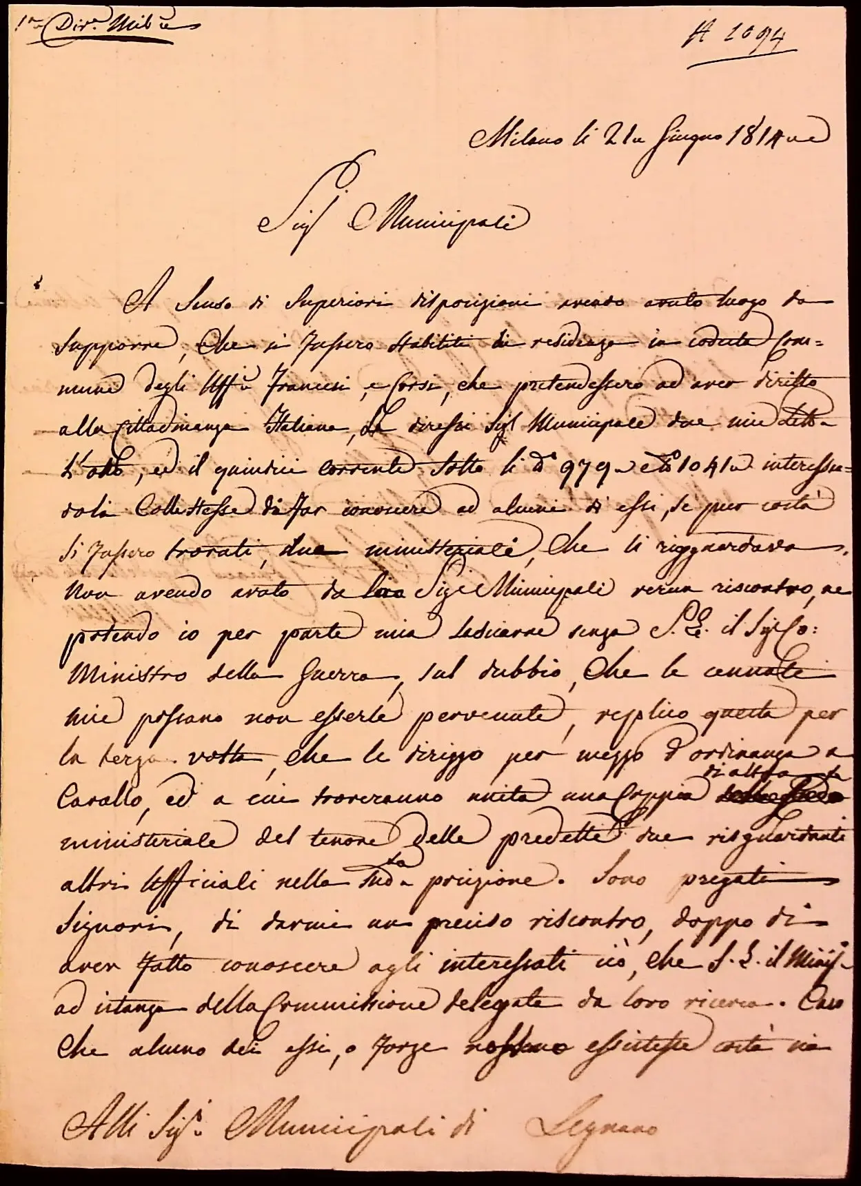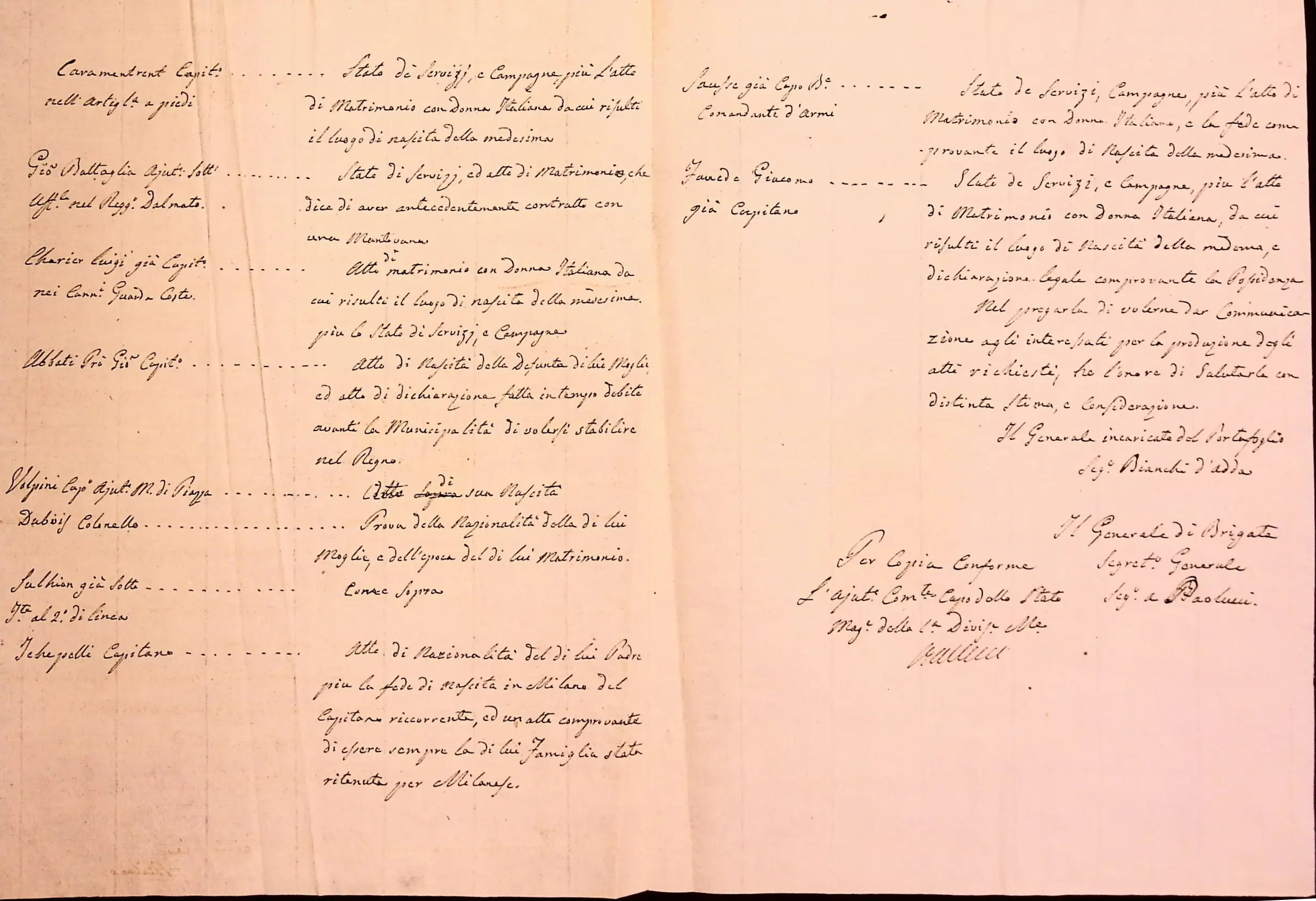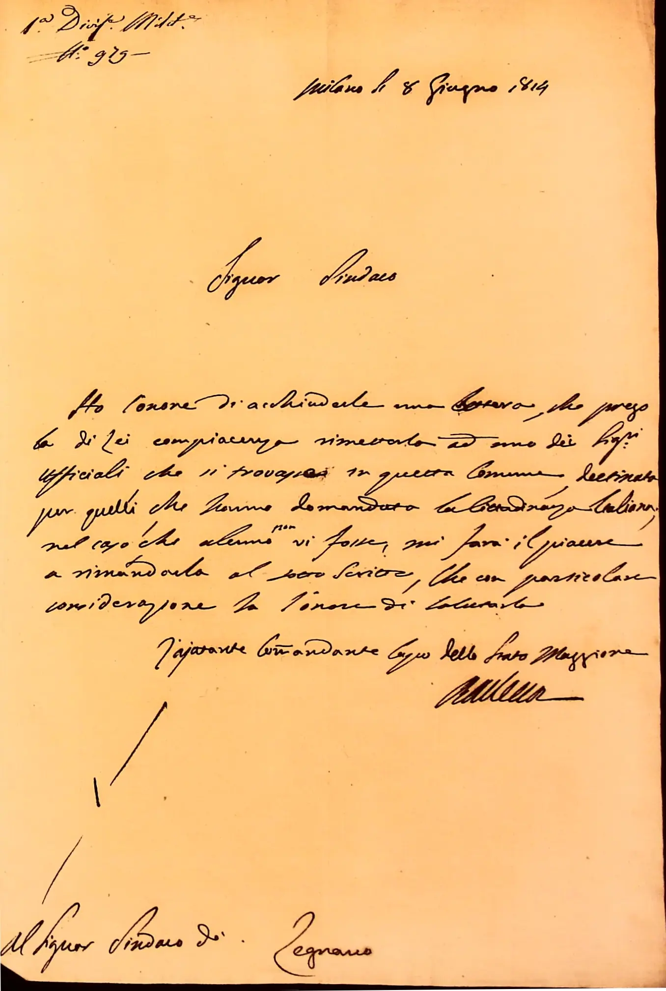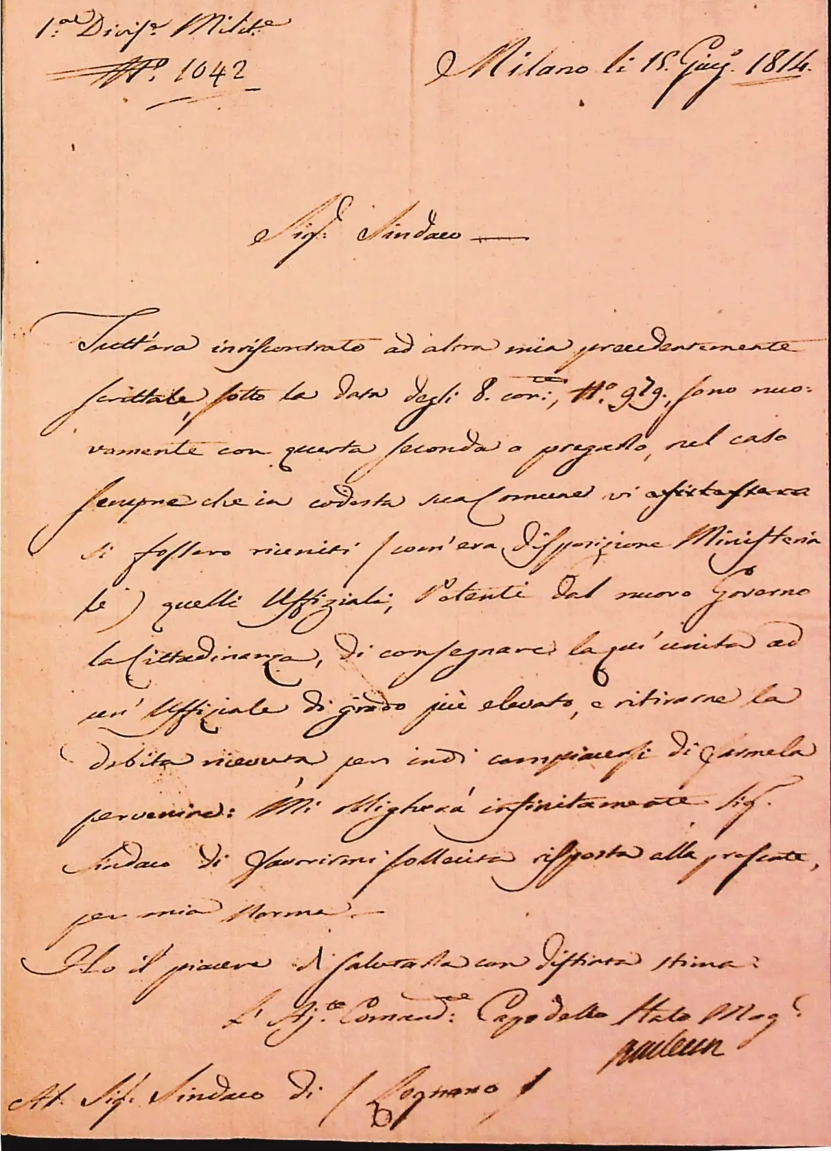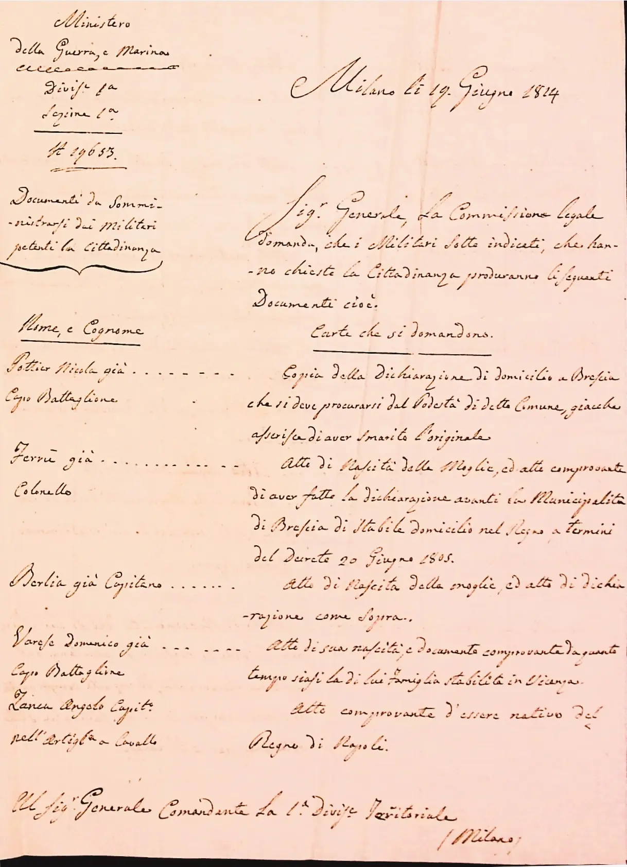 Carteggio con il Comando della I Divisione Militare relativo a richieste di cittadinanza fatte da ufficiali francesi stabilitisi nel territorio del Comune