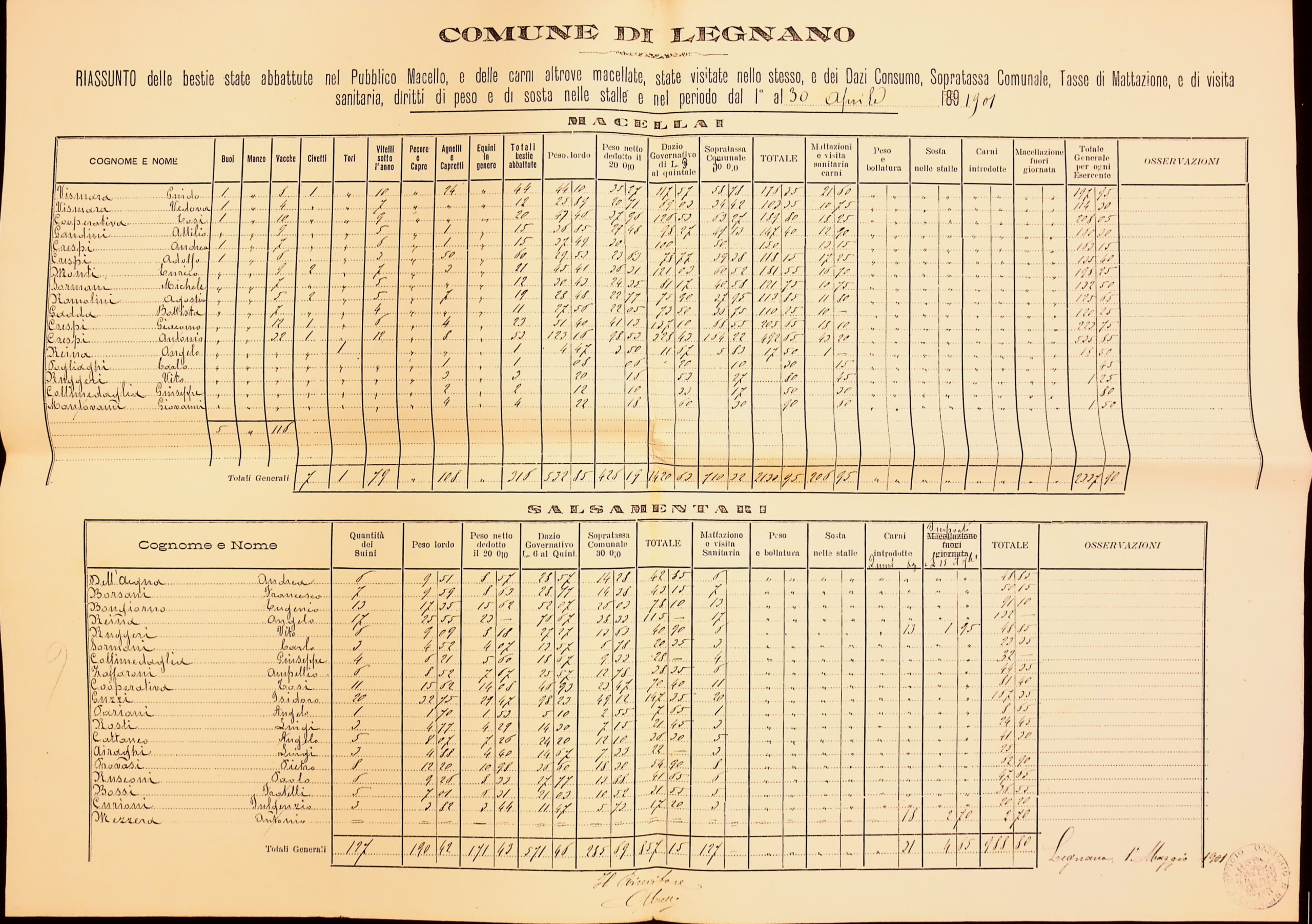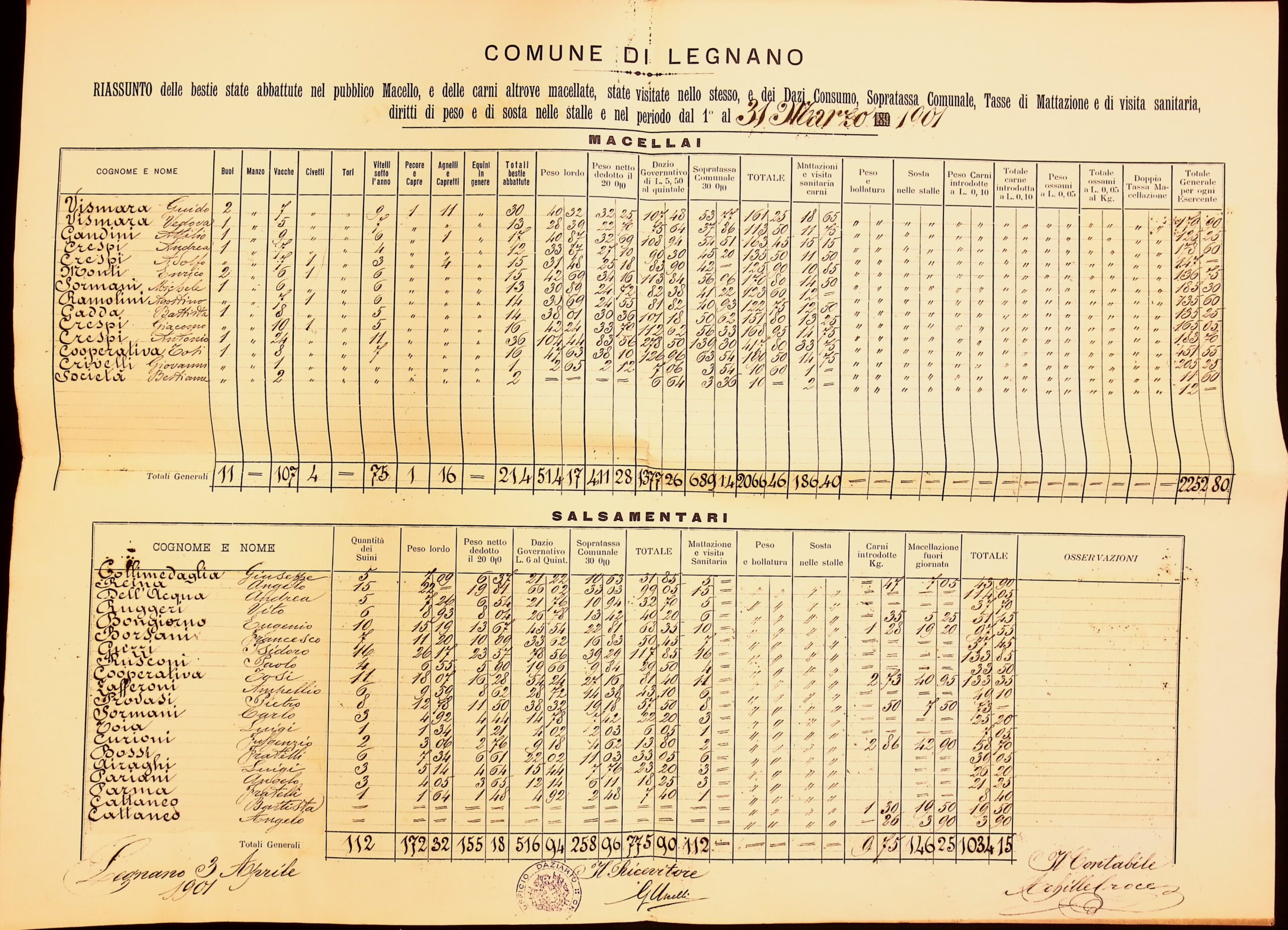 Prospetti mensili delle bestie macellate nel pubblico Macello nei mesi di marzo, aprile e maggio