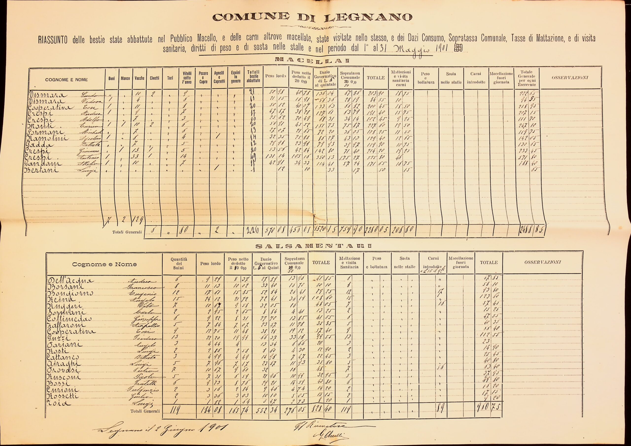 | Note dell'archivista | Descrizione precedente: "Carteggio ed atti relativi alle norme vigenti sull'igiene della vendita delle carni e trasporto delle carni per quanto riguarda il Civico Macello del Comune di Legnano. Alcune statistiche". |