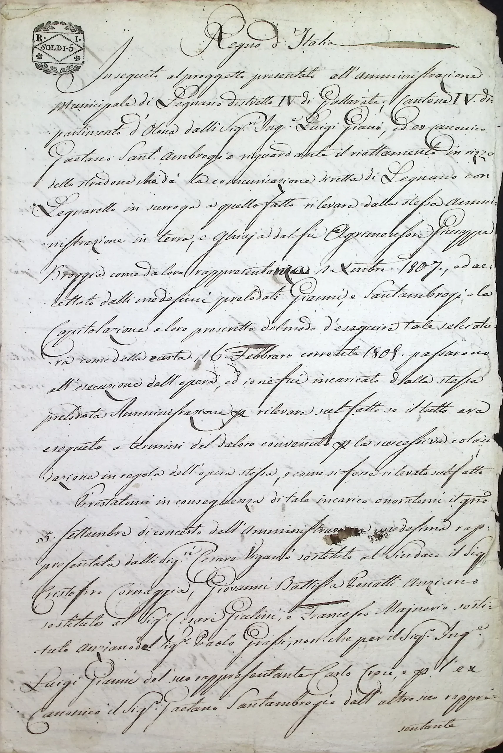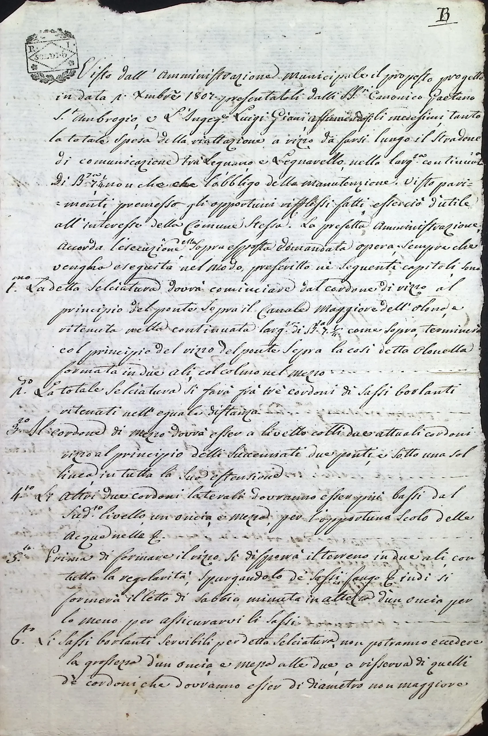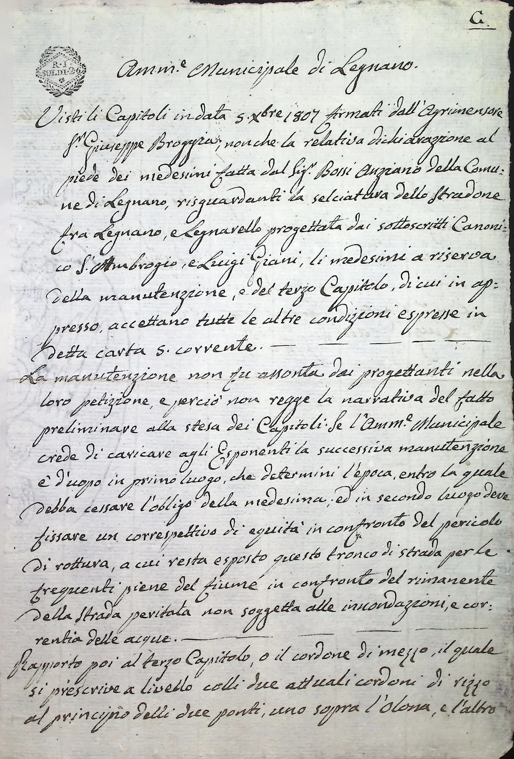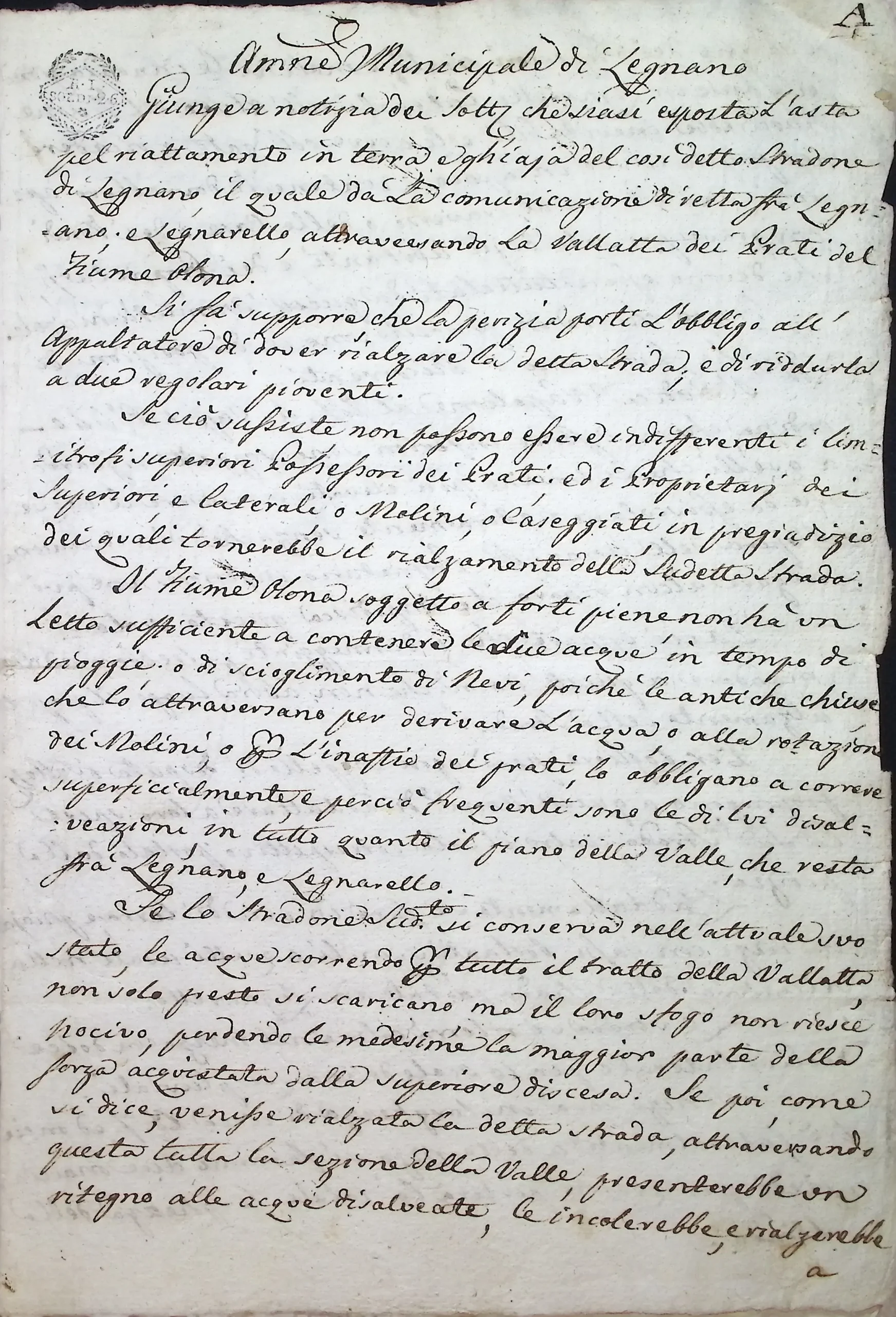 Carteggio relativo ai lavori di selciatura della strada comunale conducente a Legnarello