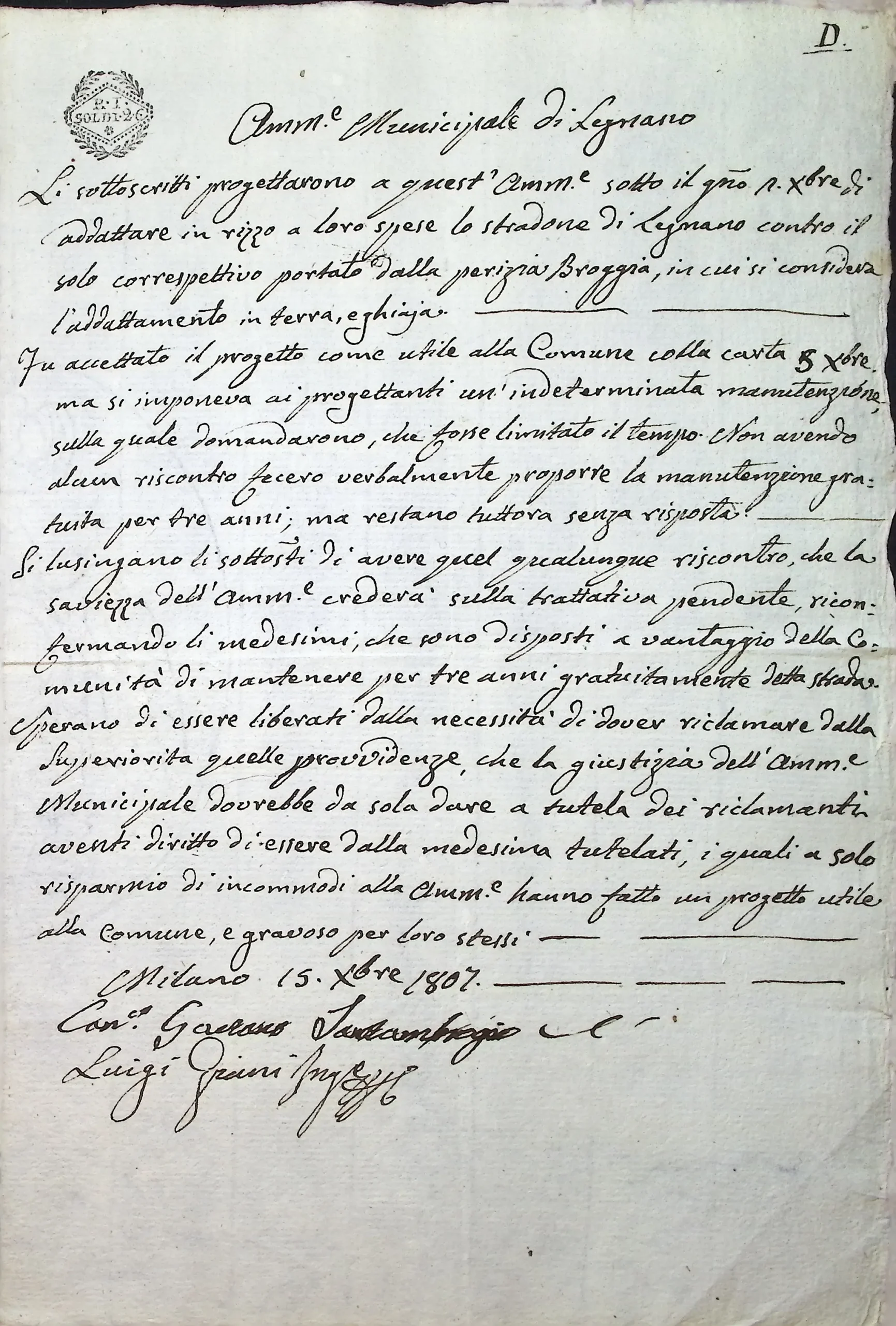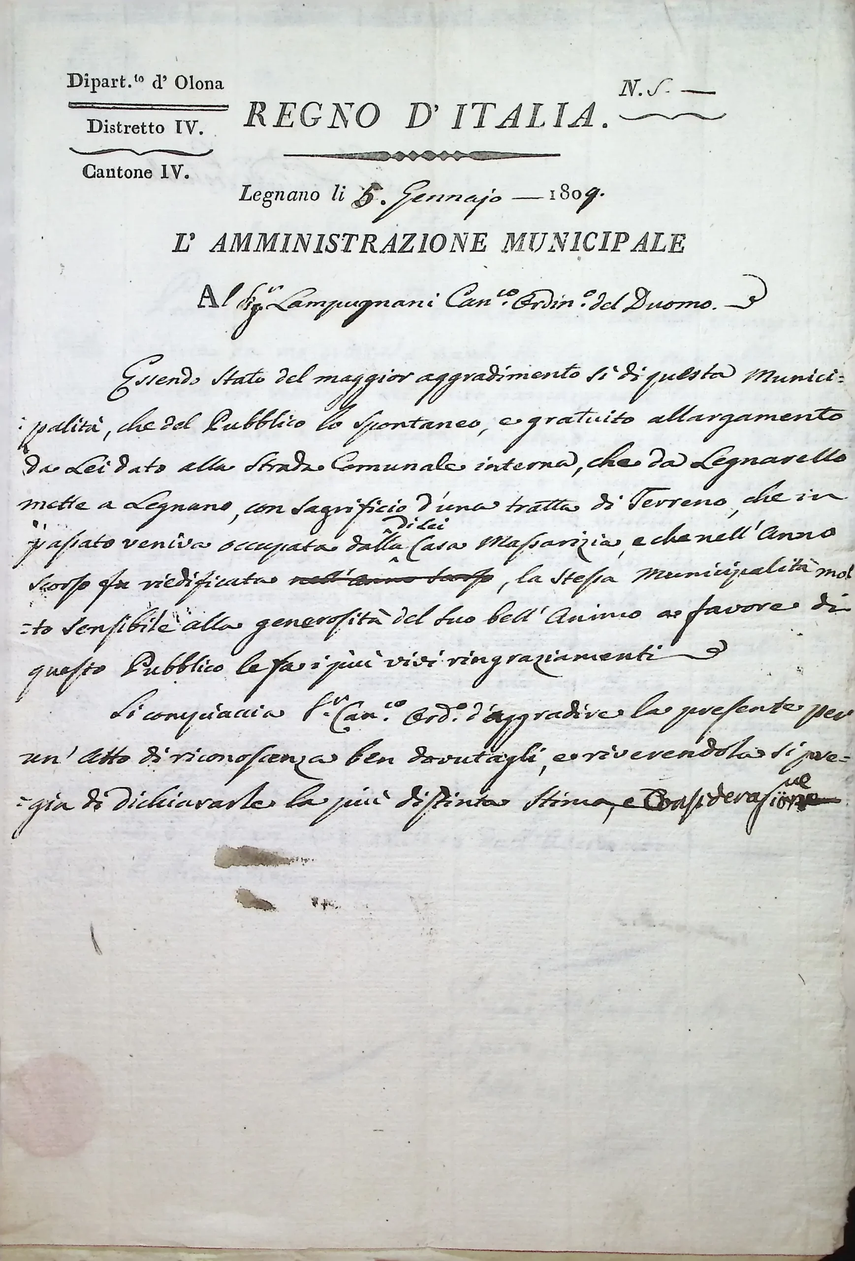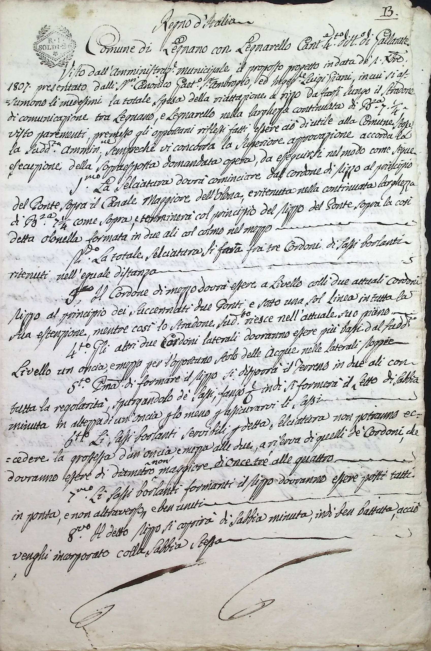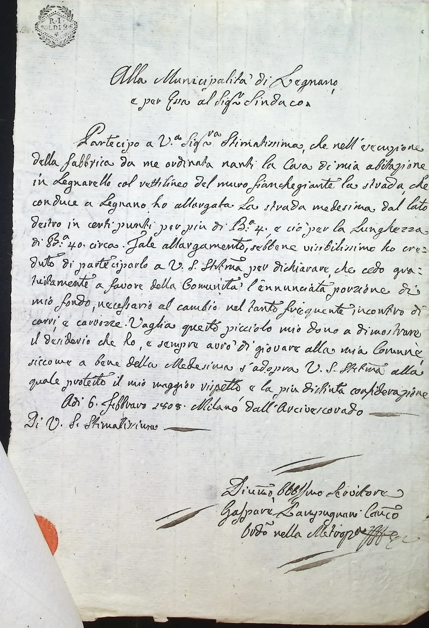 Carteggio relativo ai lavori di selciatura della strada comunale conducente a Legnarello
