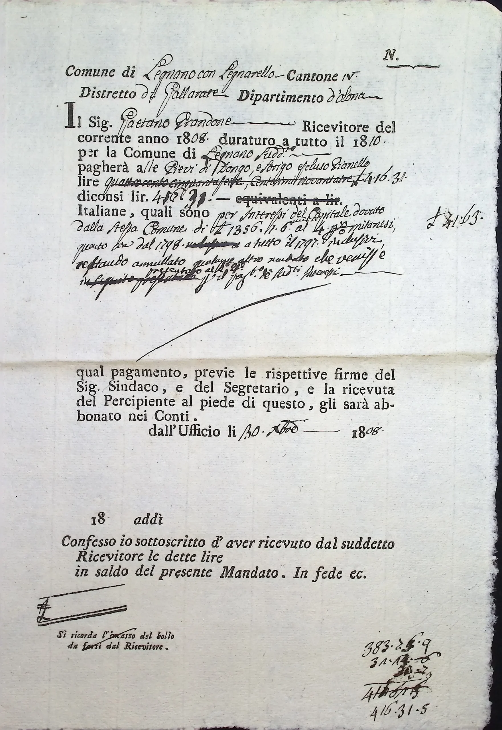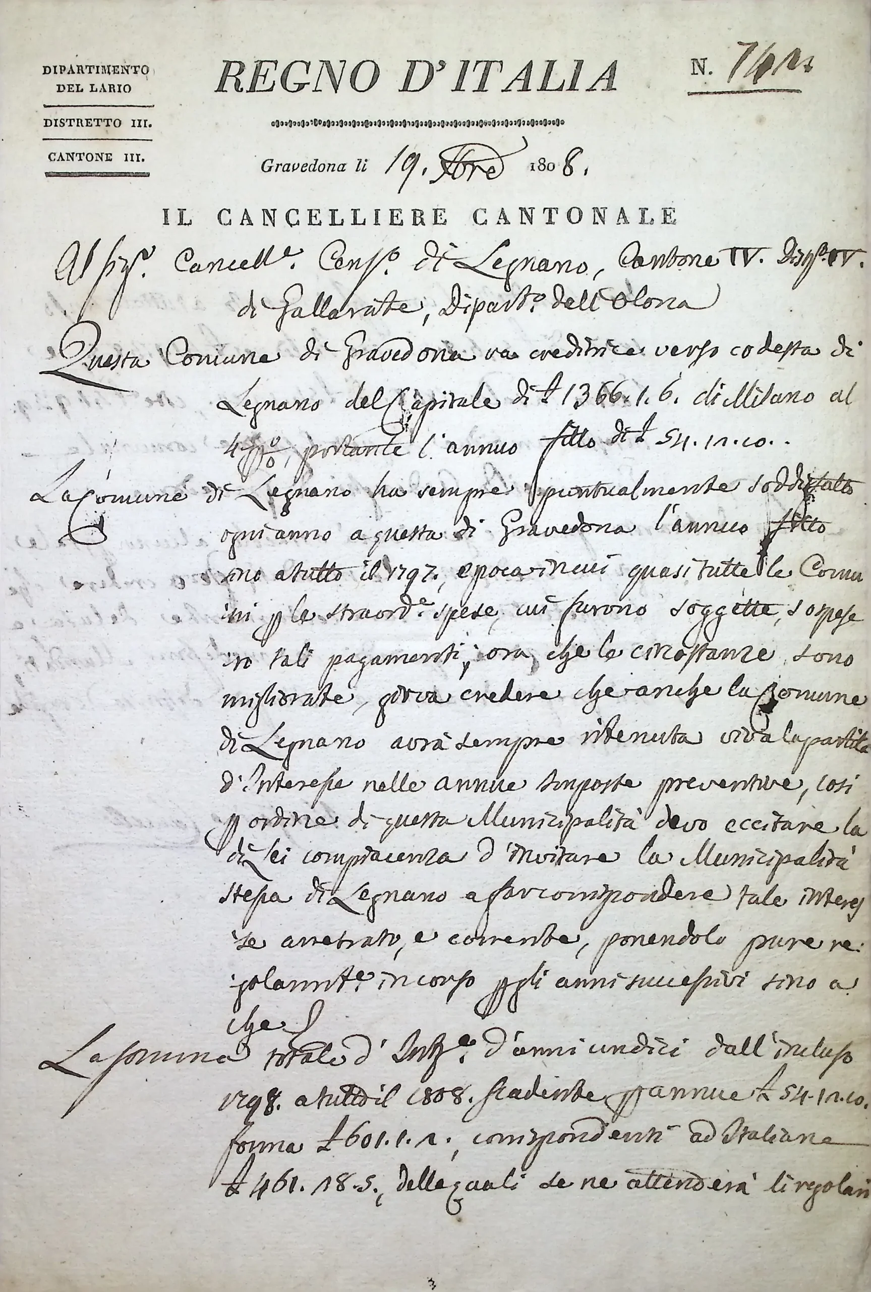 Carteggio relativo ad un debito del Comune verso quello di Gravedona