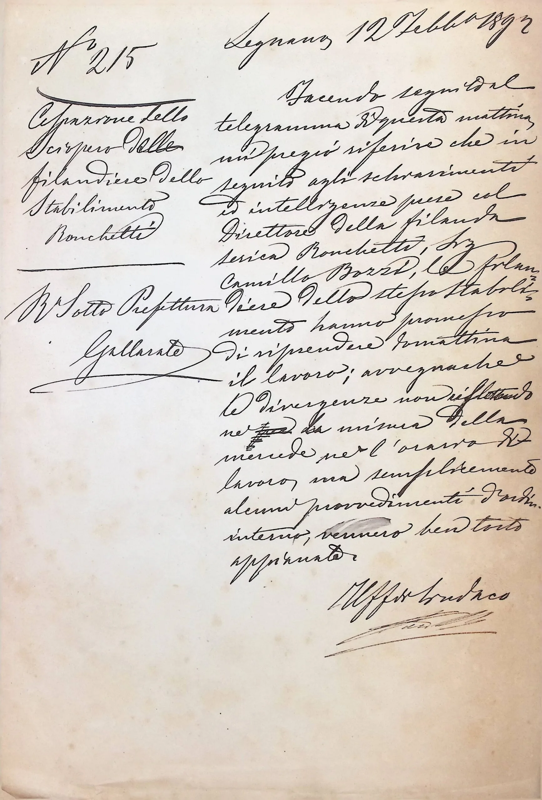 Carteggio con la Sotto Prefettura sulla mancata persentazione da parte di Galli Alberto della denuncia annuale del possesso ed esercizio di caldaie a vapore
