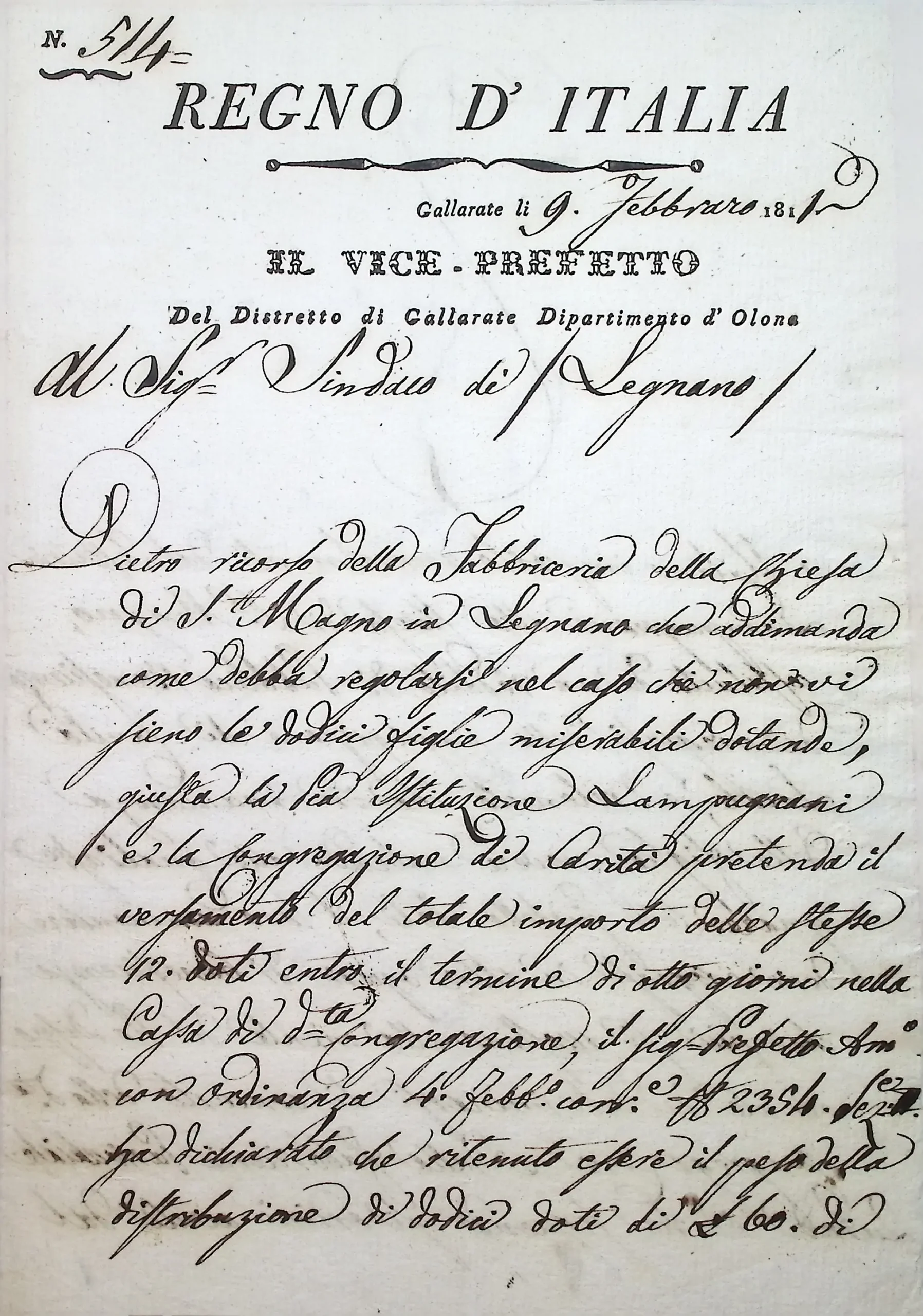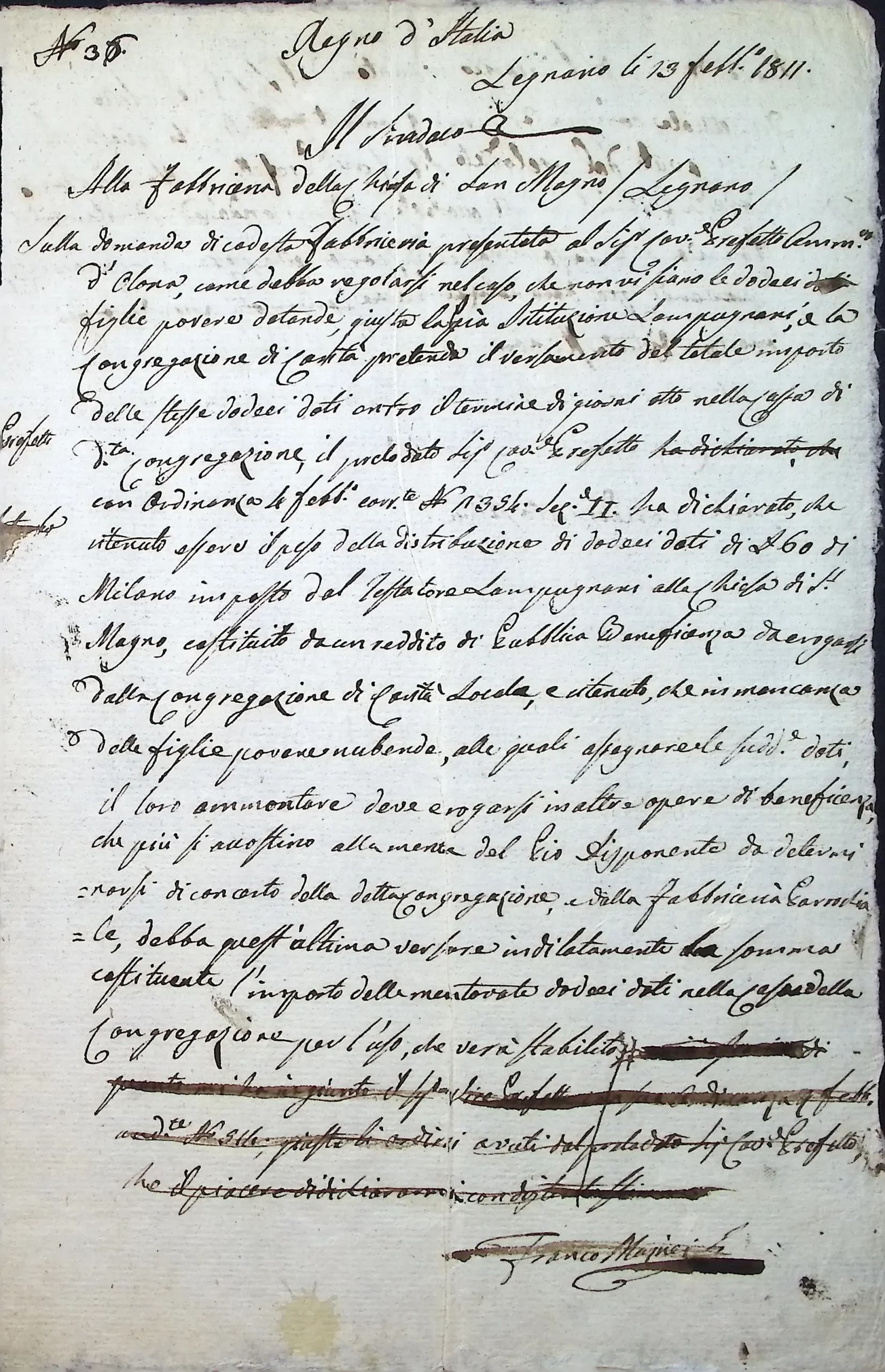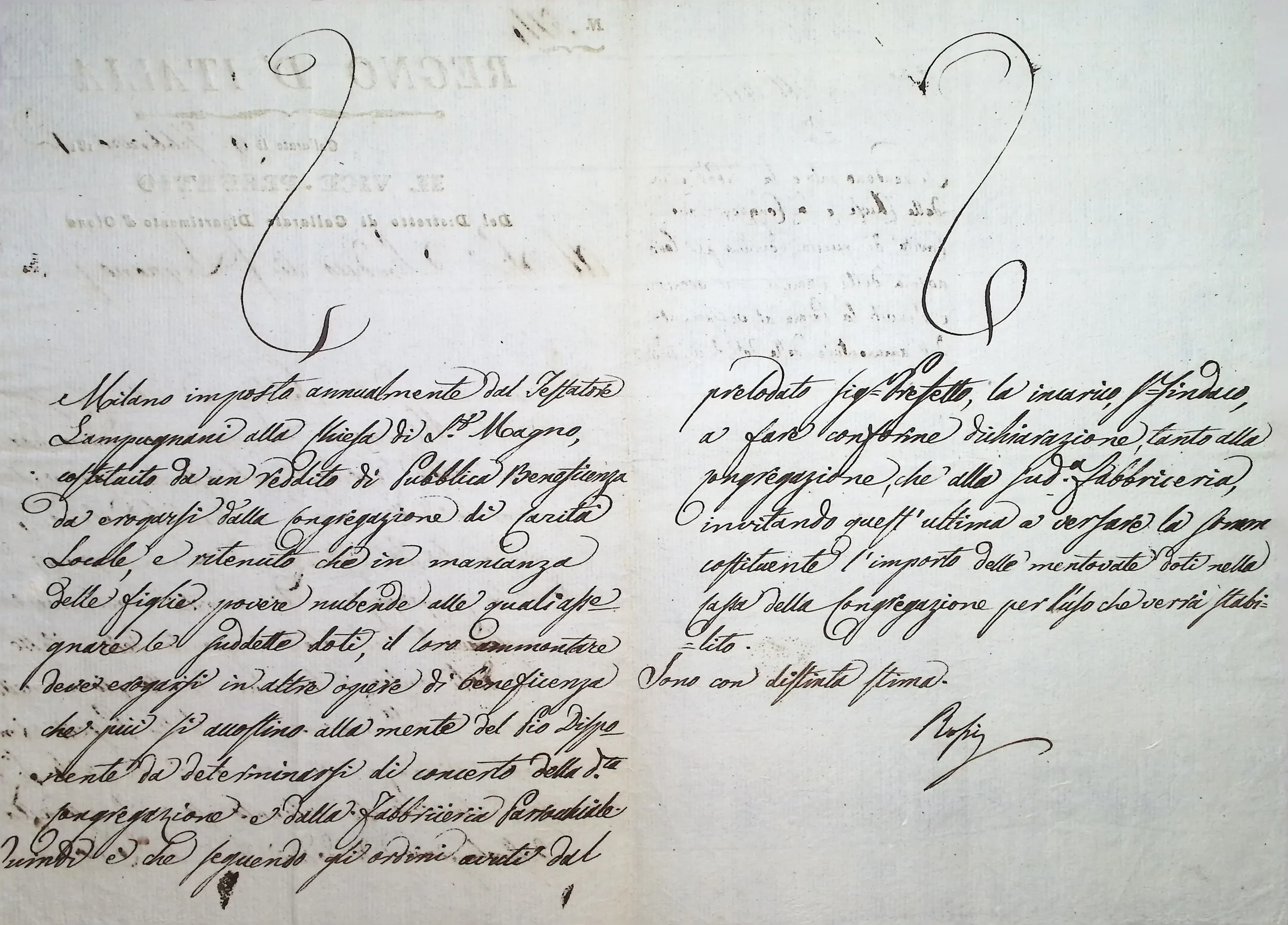 Carteggio relativo alla destinazione delle doti per giovani povere del legato Lampugnani non erogate per mancanza di giovani in tali condizioni