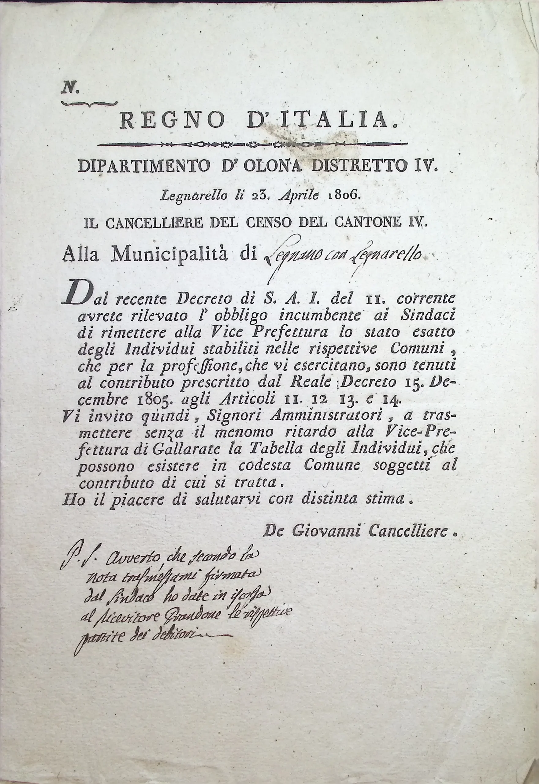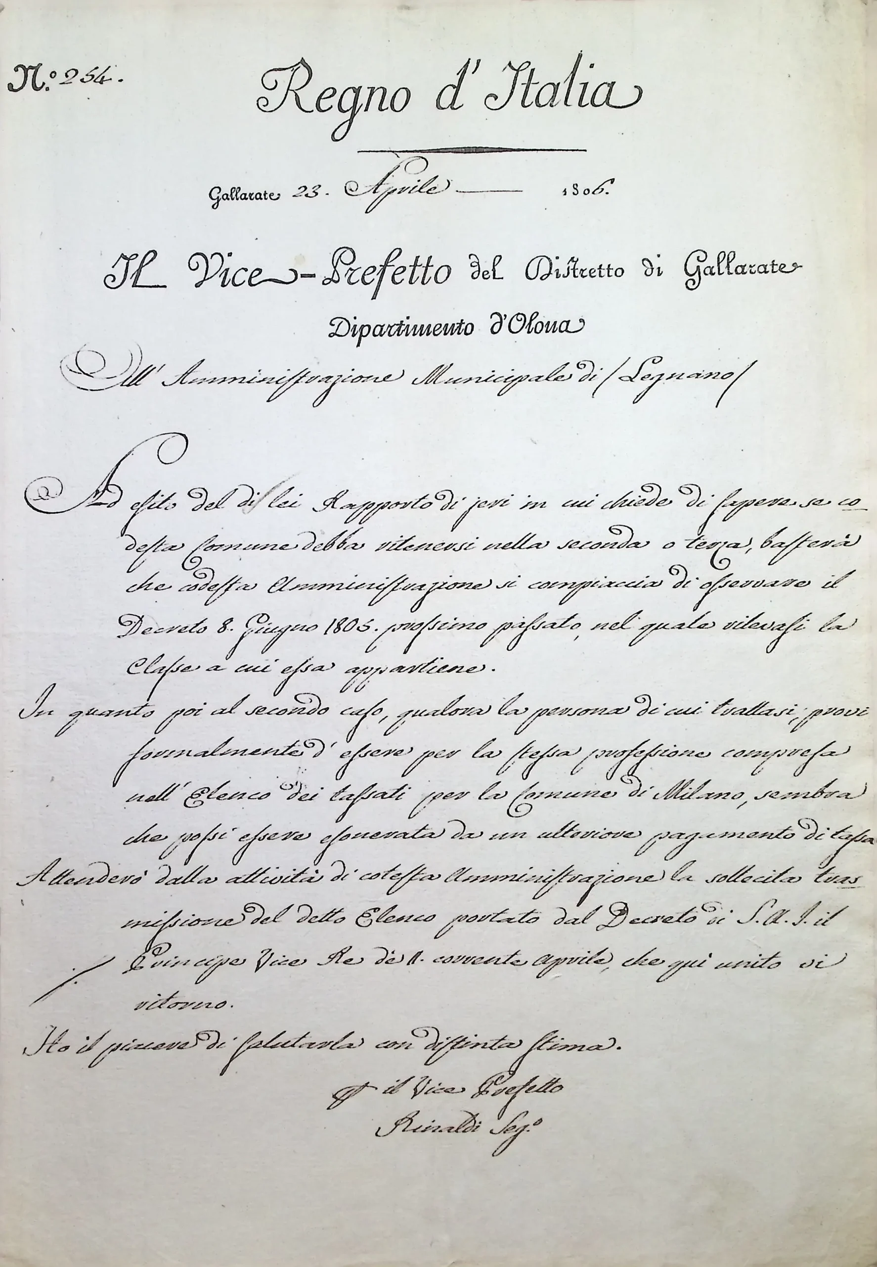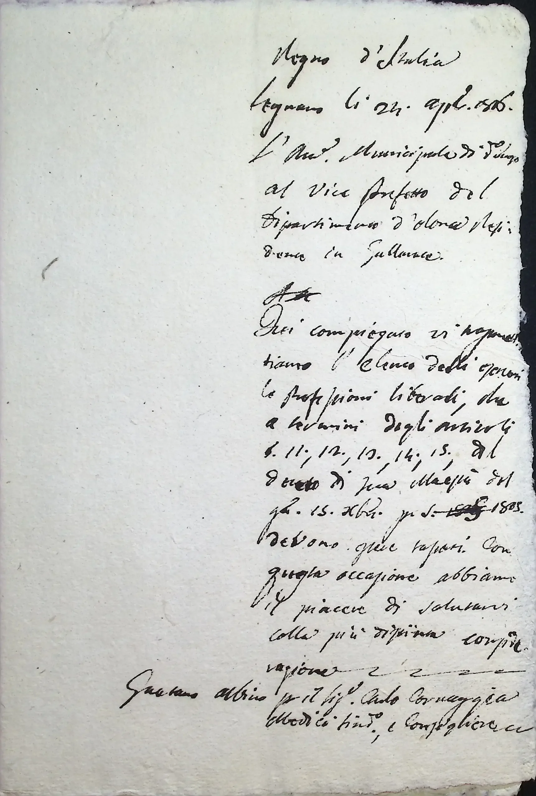 Carteggio relativo alla formazione dell’elenco delle persone esercenti professioni liberali nel territorio del Comune