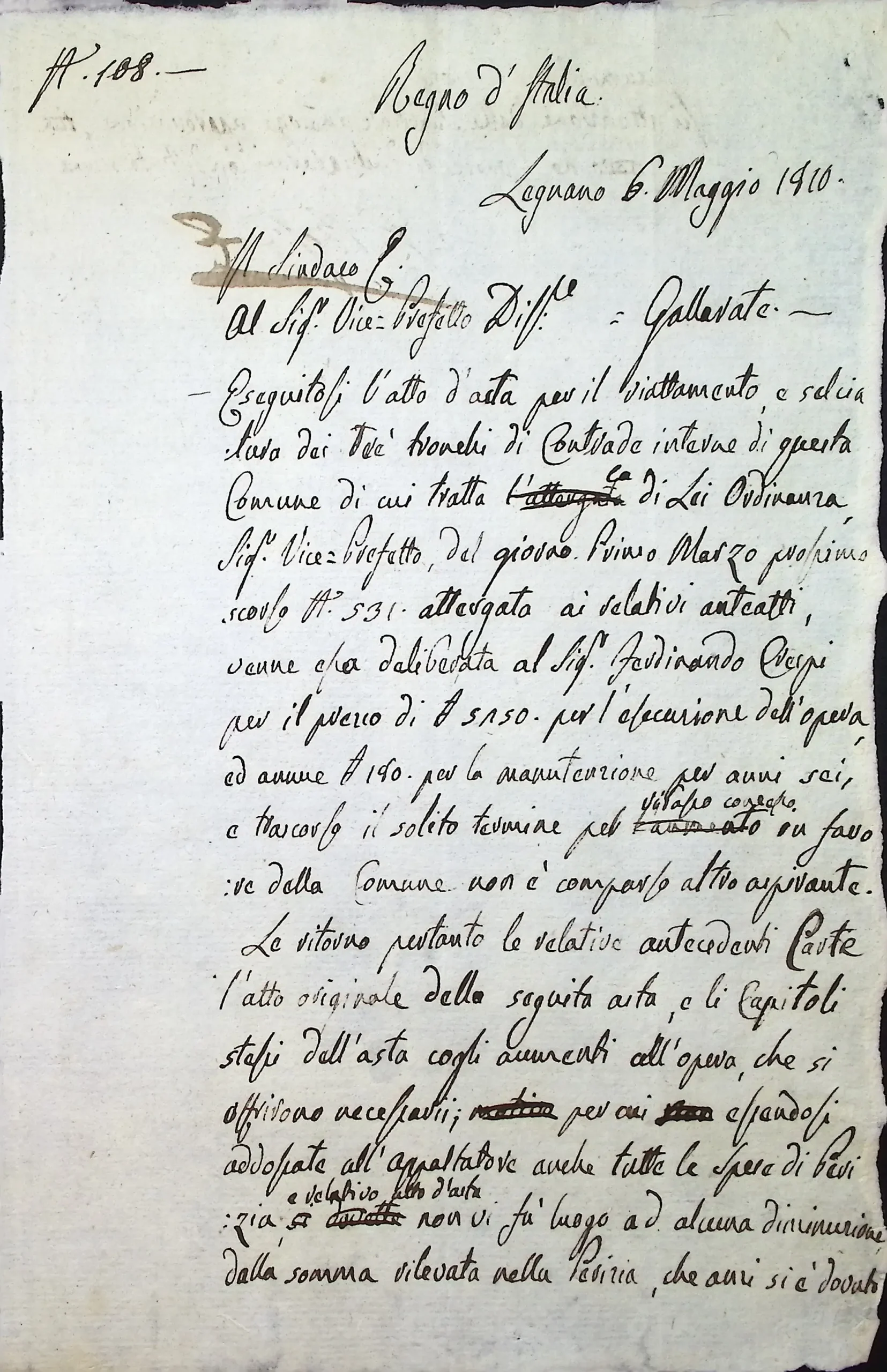 Carteggio relativo all’appalto dei lavori di selciatura delle strade interne del Comune
