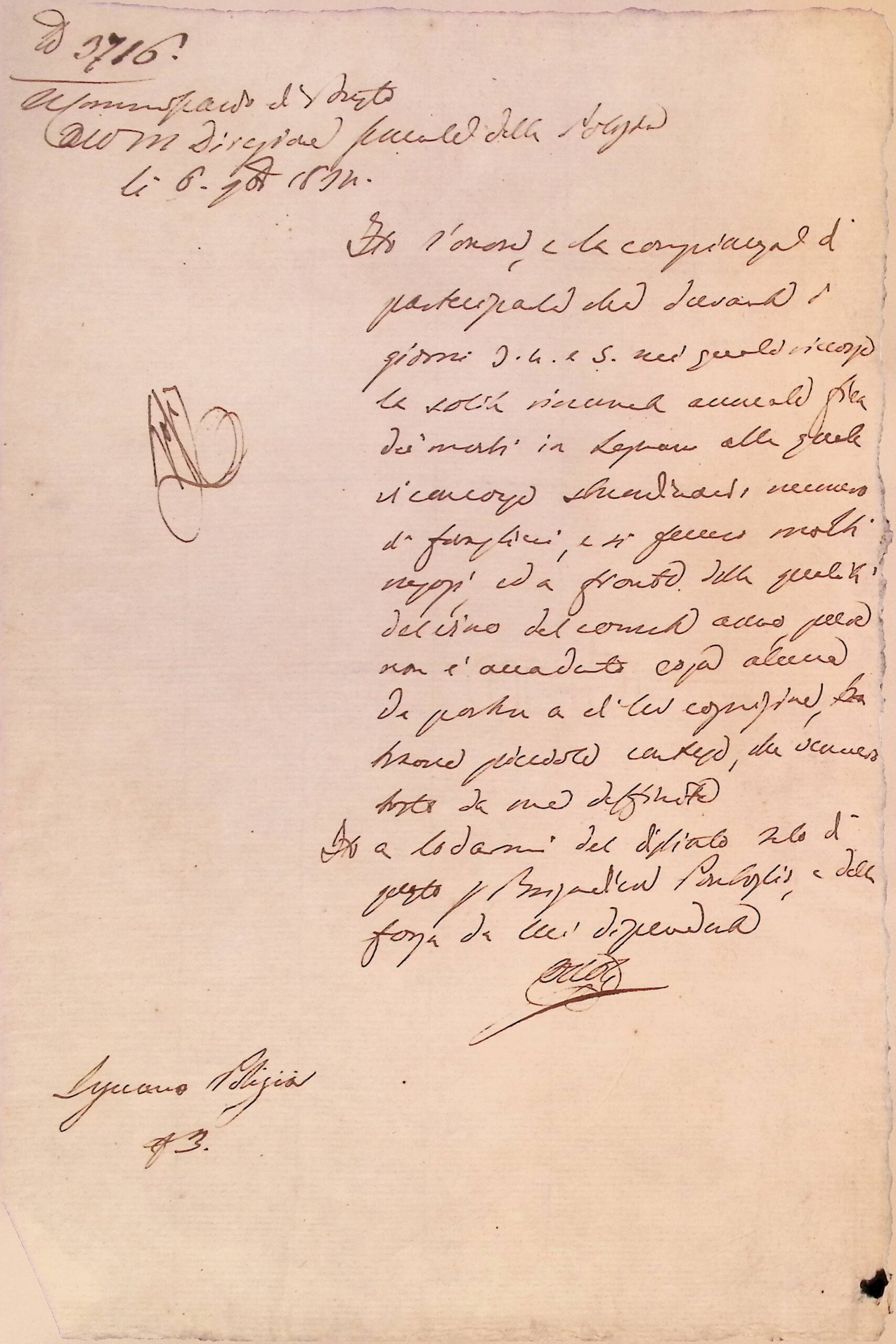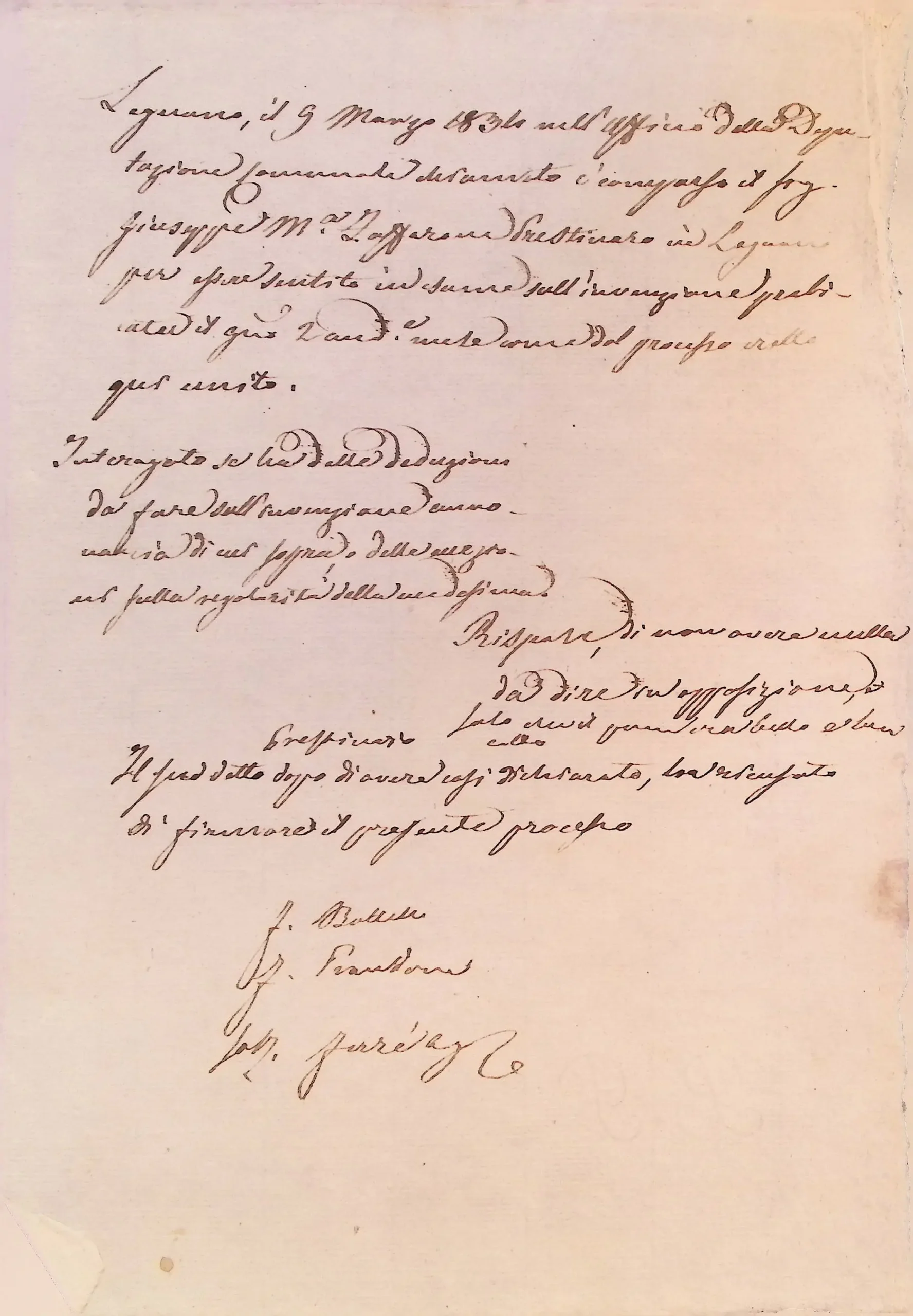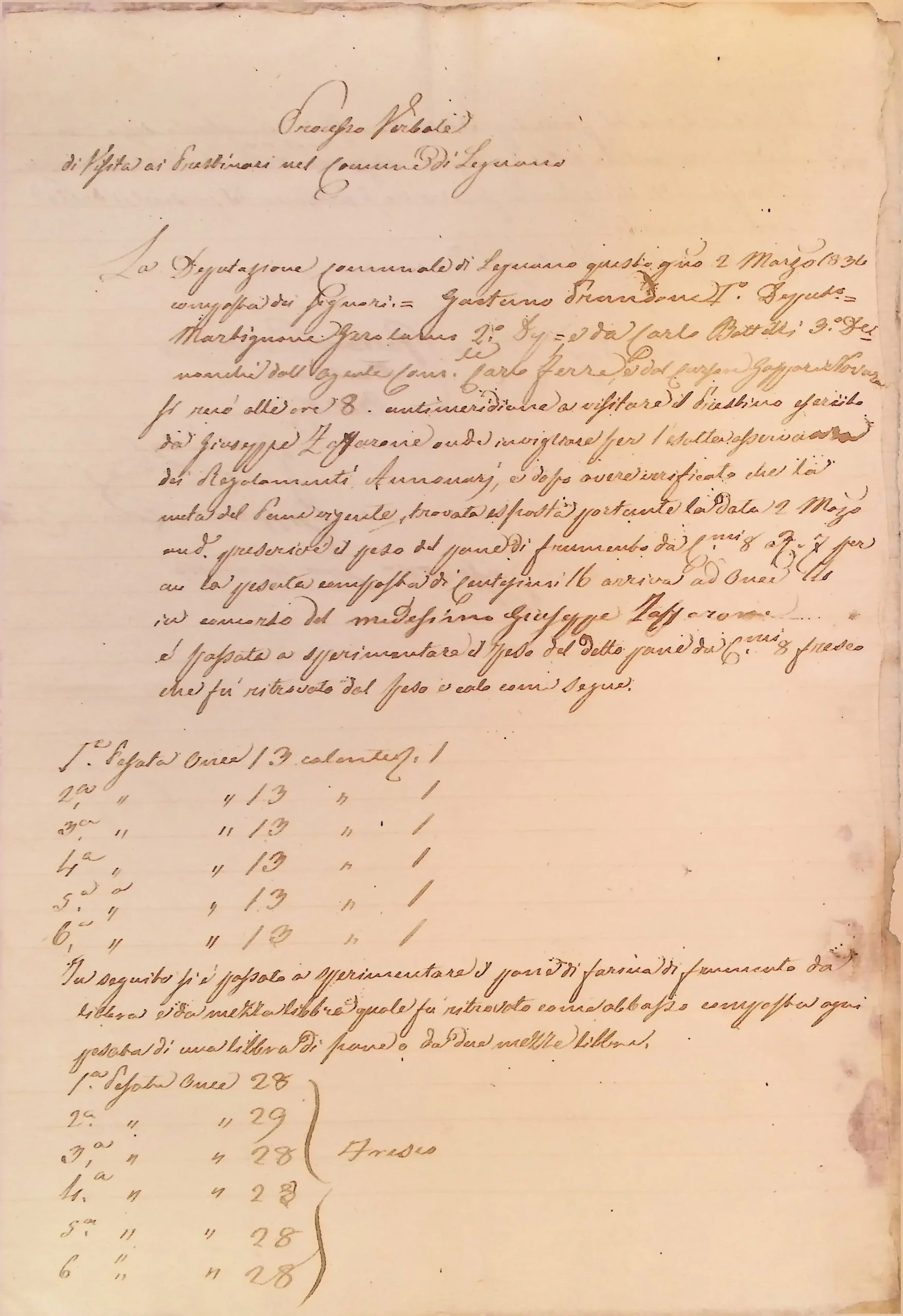 Carteggio relativo per una contravvenzione contestata al prestinaio Giuseppe Maria Zaffaroni