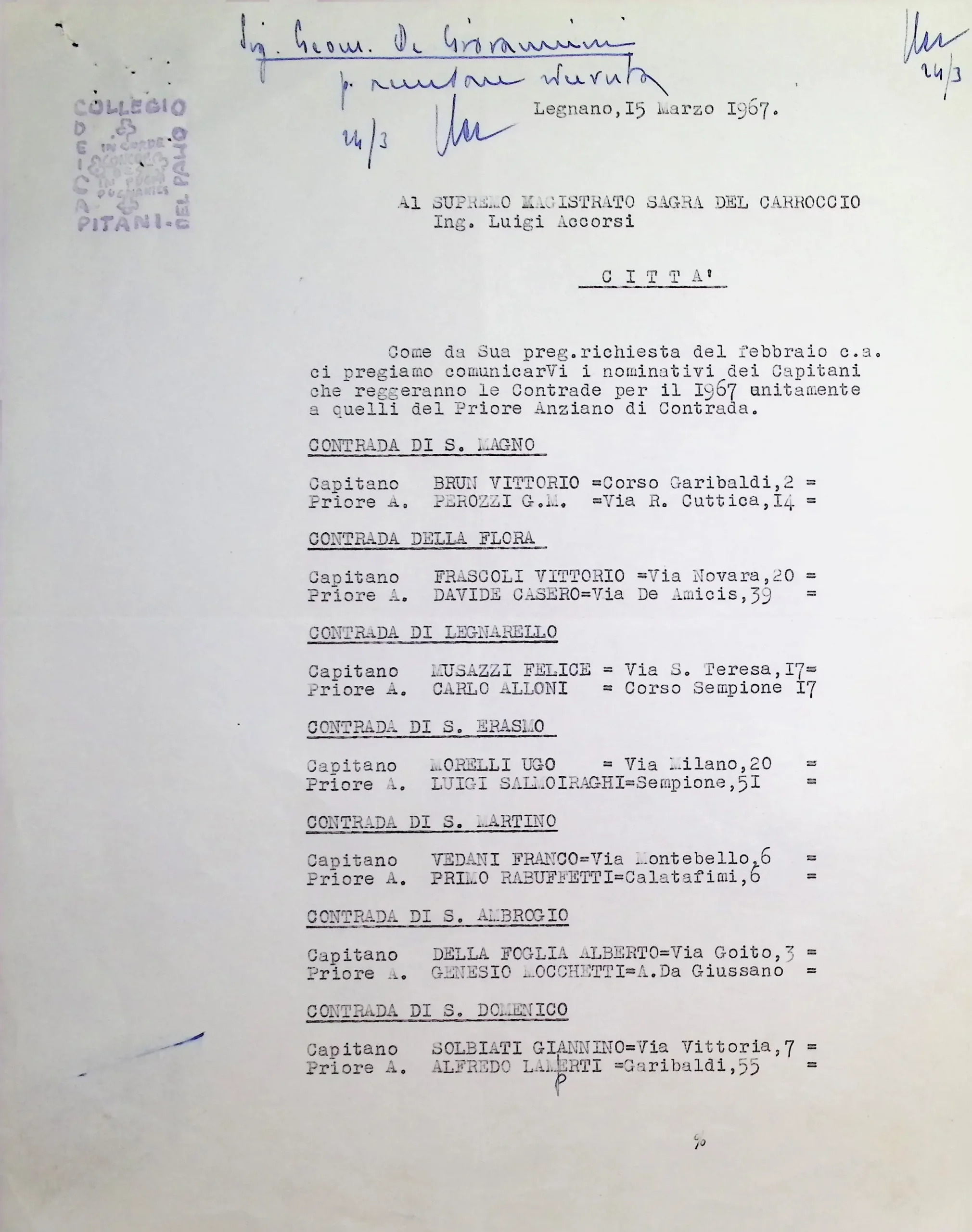 | Estr. Cronologici | 1967 |