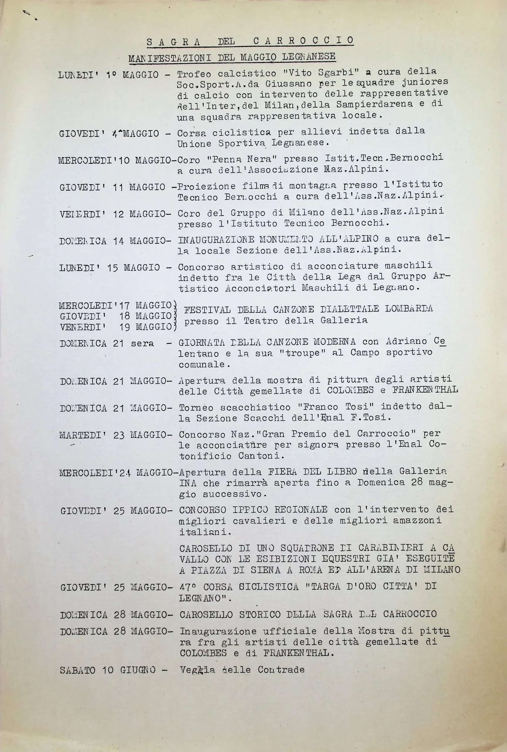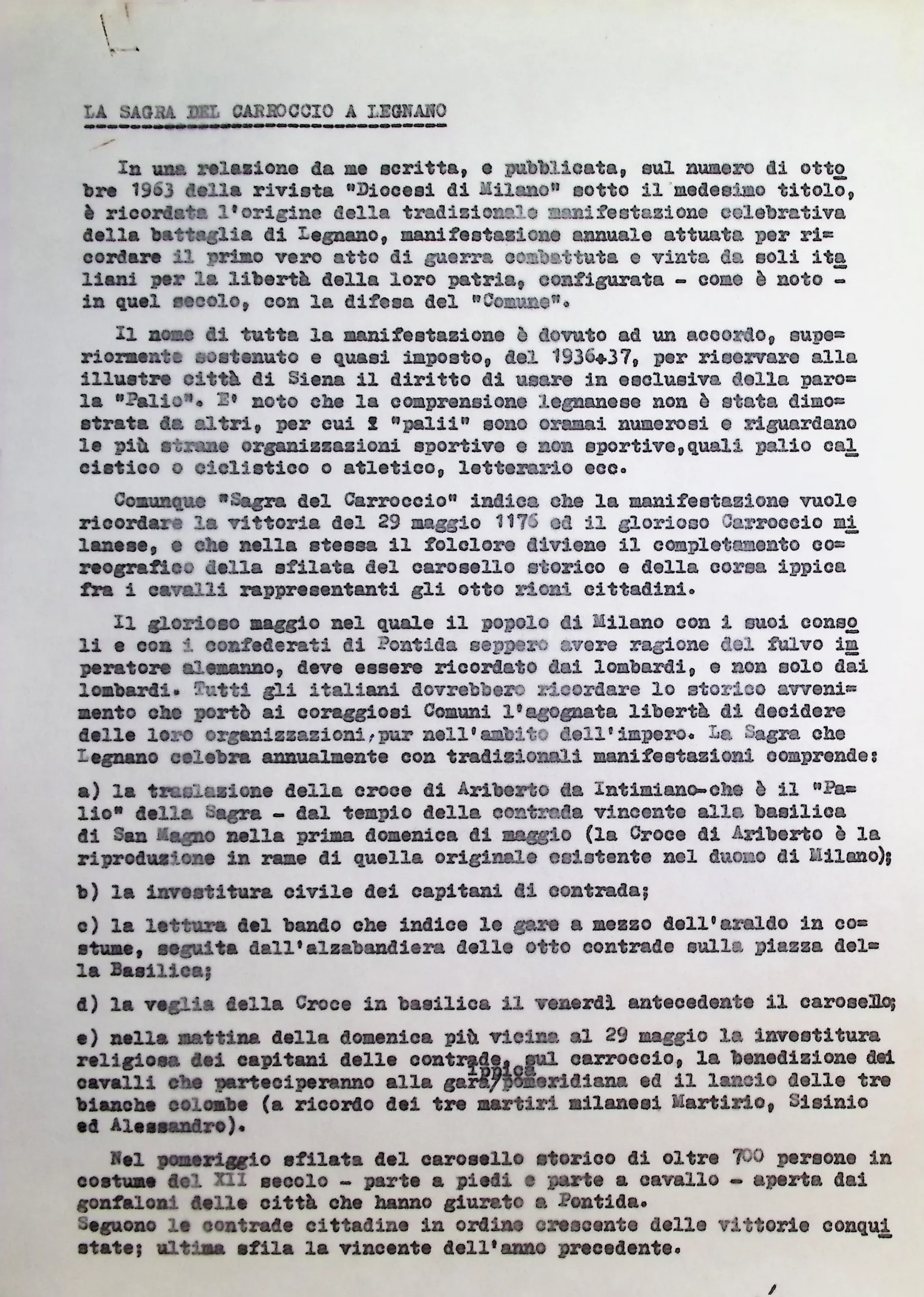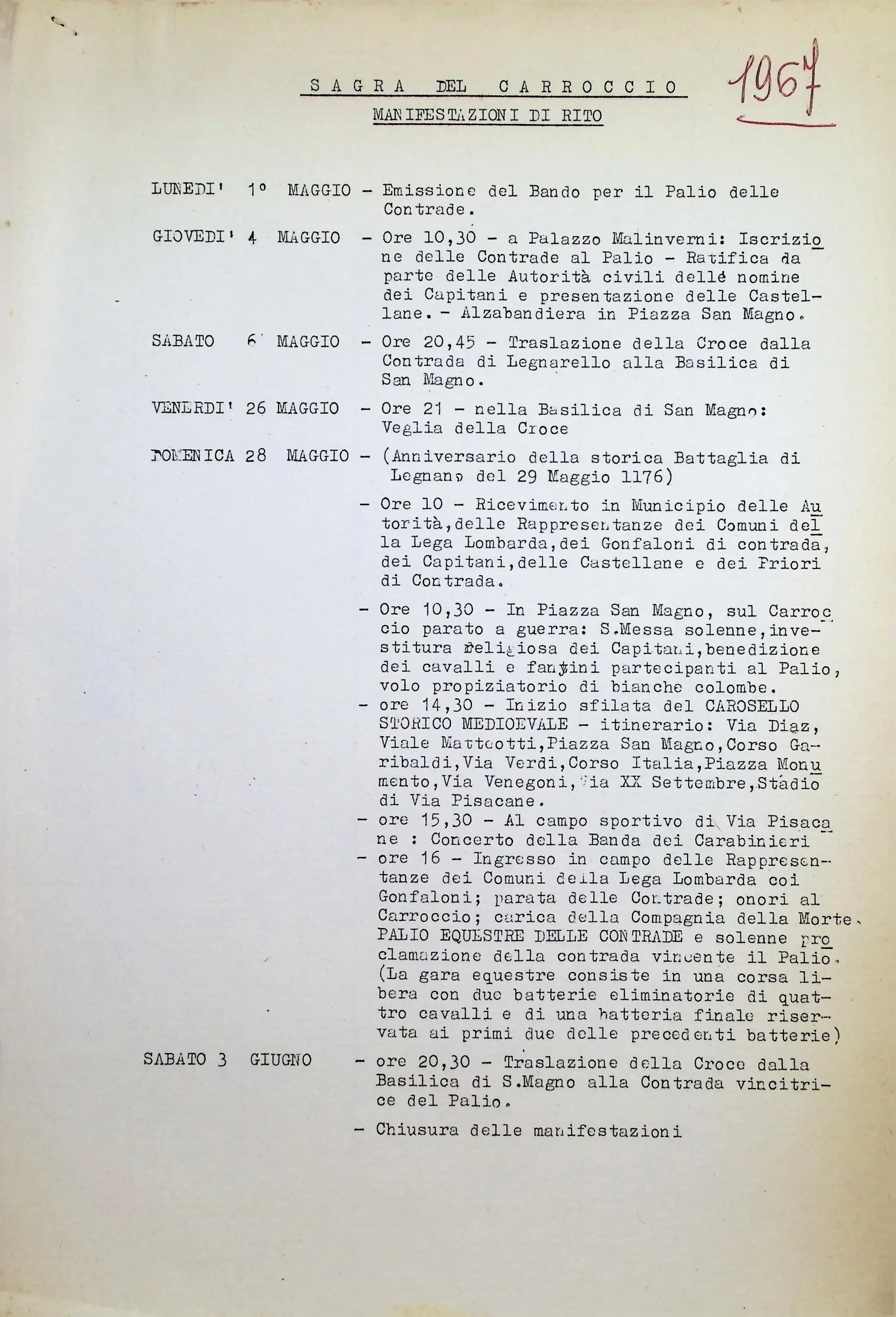 Celebrazione della ricorrenza della battaglia di Legnano con annessa la sagra del Carroccio