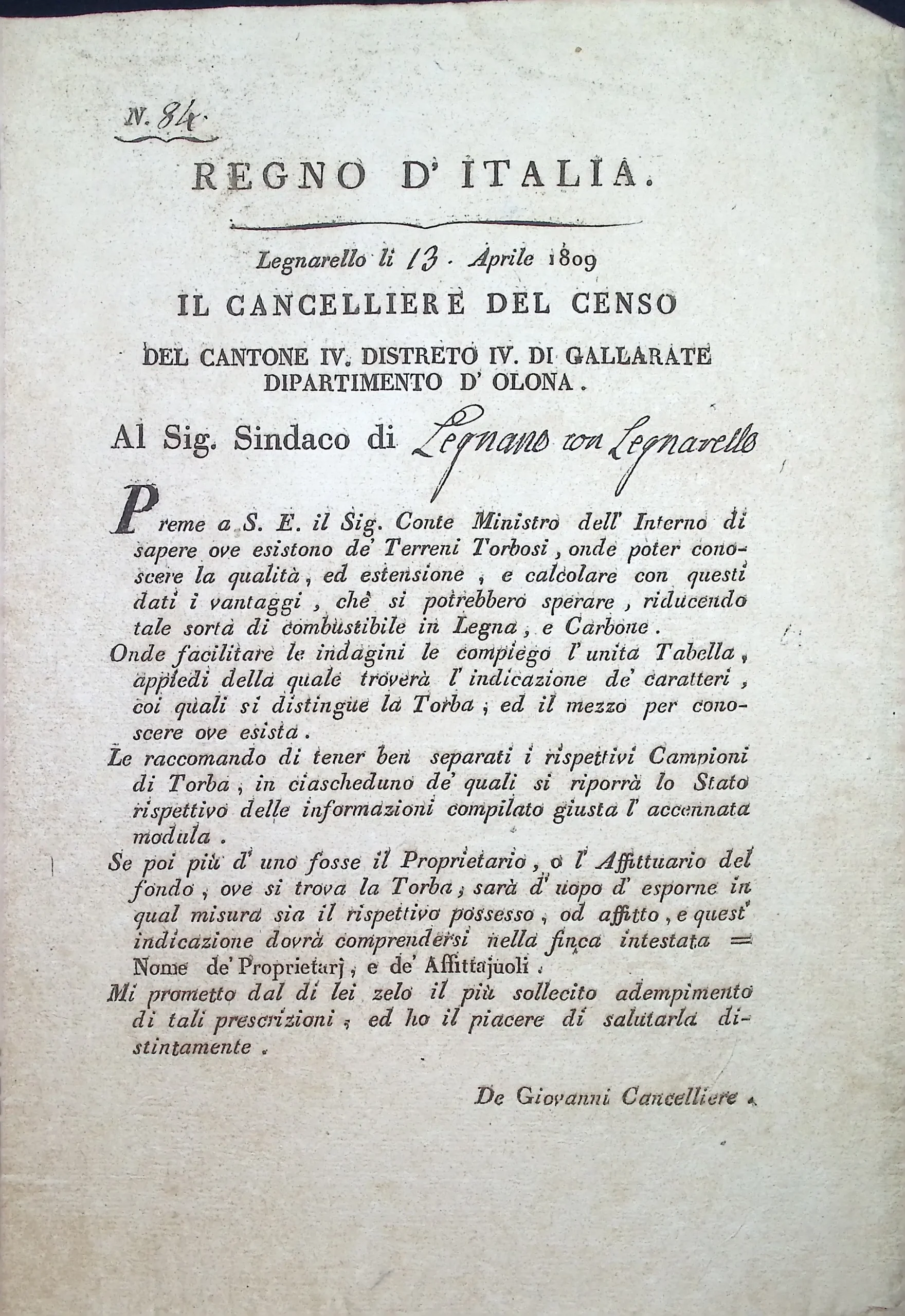 Circolare del Cancelliere Censuario per la rilevazione dei terreni torbosi