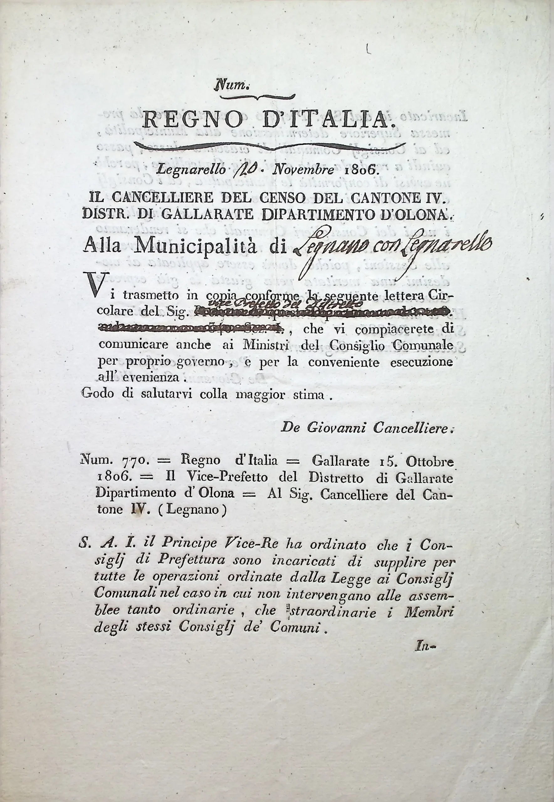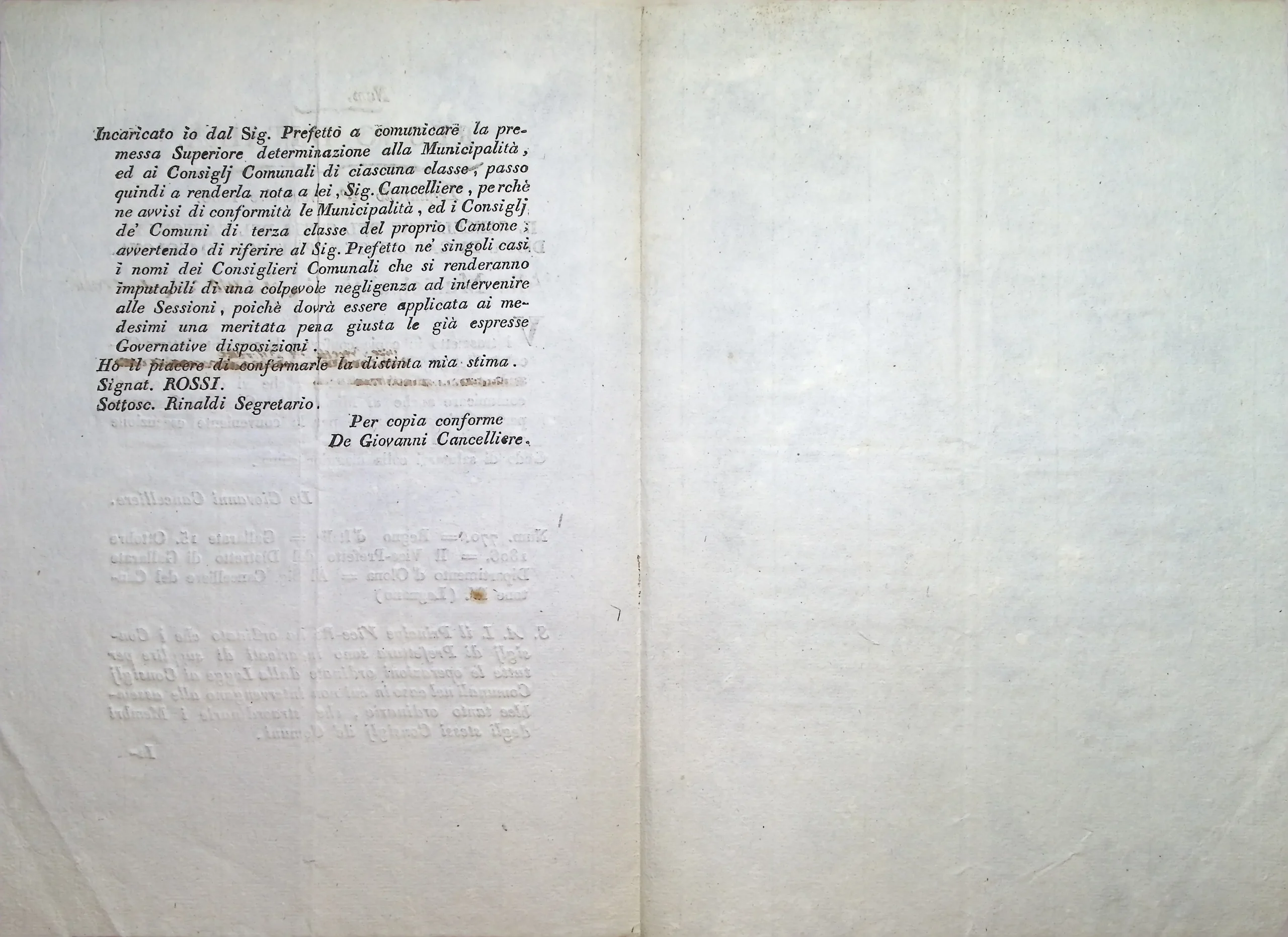 Circolare del Cancelliere del Censo, circa la facoltà di sostituire con consiglieri di Prefettura i membri dei consigli comunali assenti