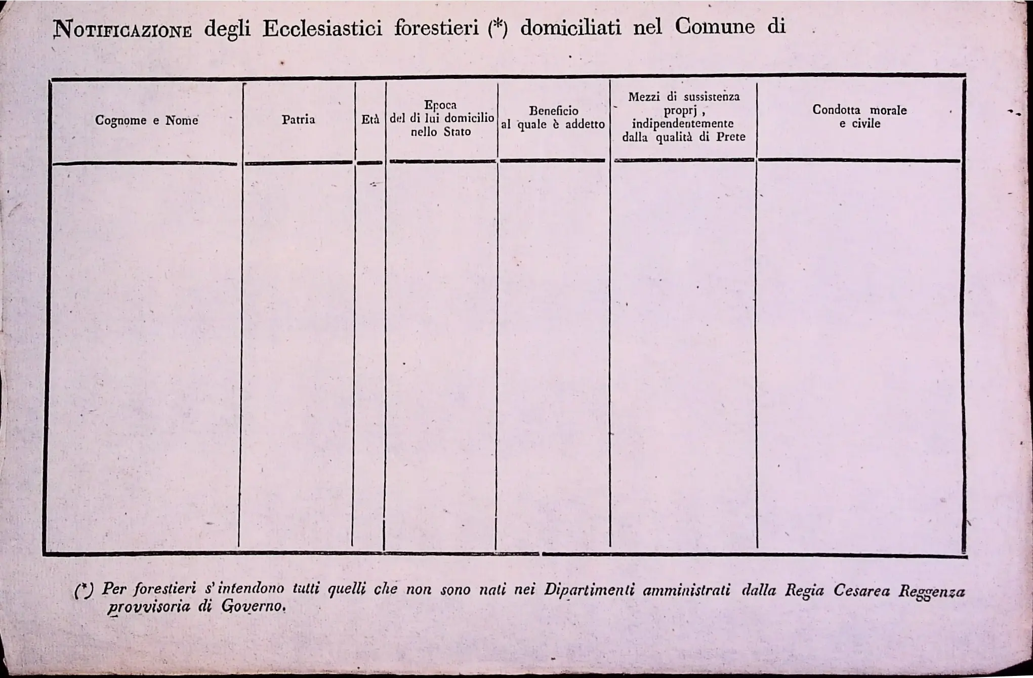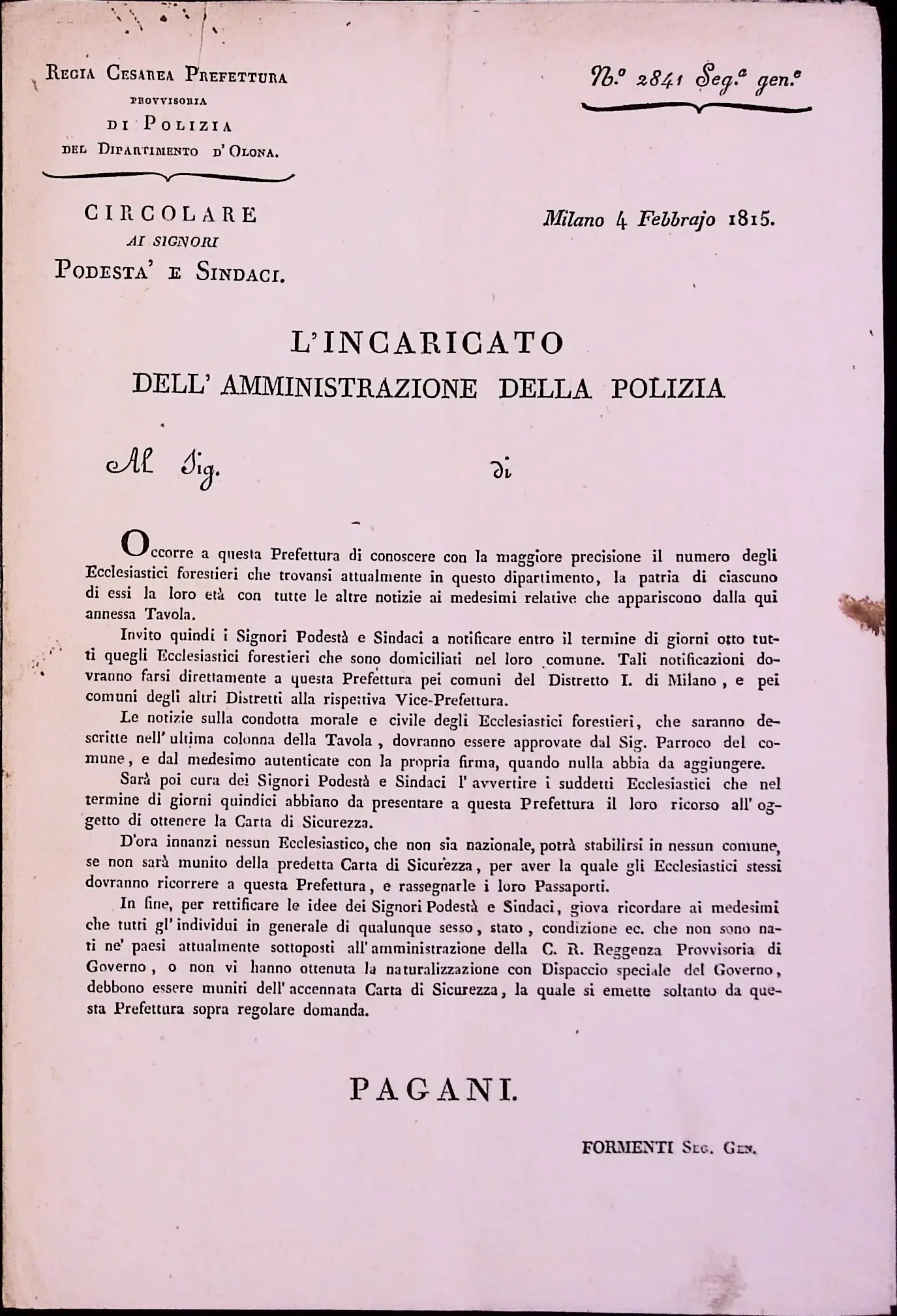 Circolare prefettizia per la segnalazione degli ecclesiastici stranieri residenti nel territorio del dipartimento