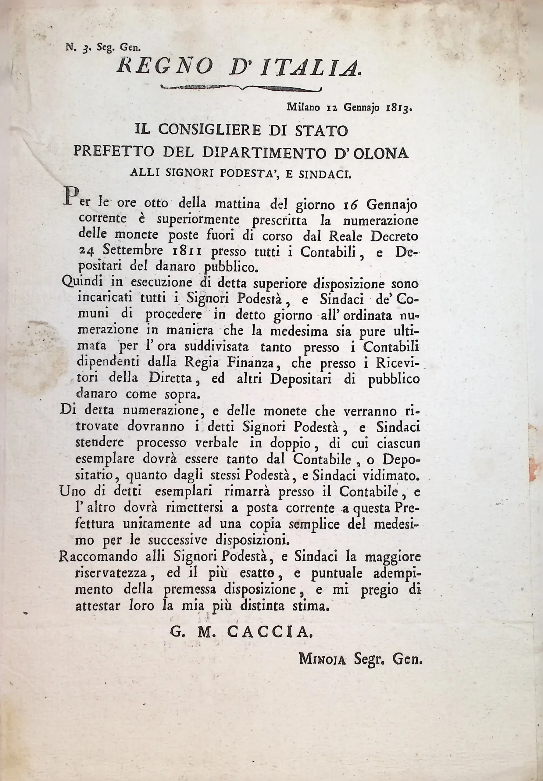 Circolare prefettizia per l’accertamento delle monete fuori corso esistenti presso l’esattoria comunale
