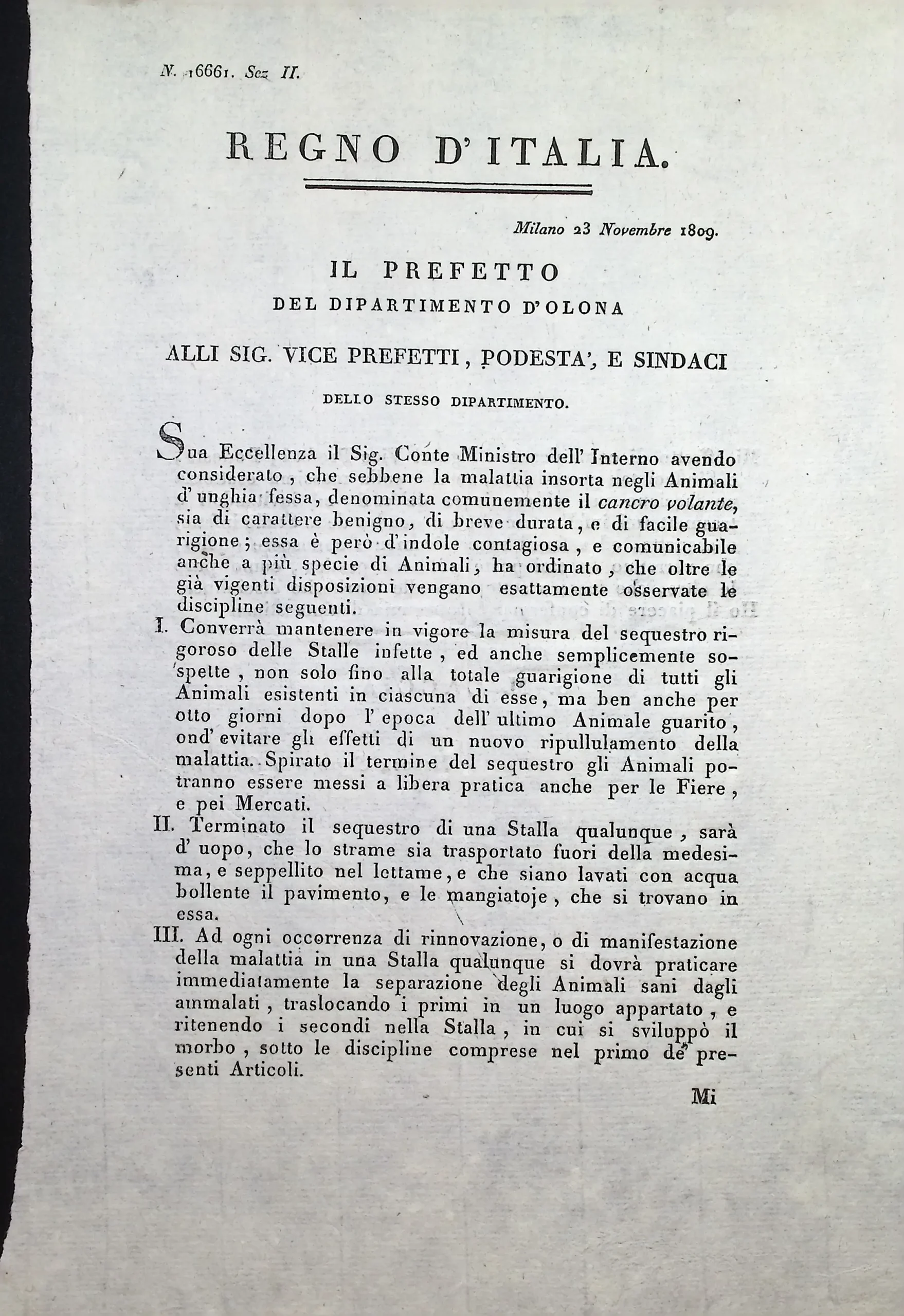 Circolare Prefettizia sulla malattia degli animali d’unghia fessa detto cancro volante