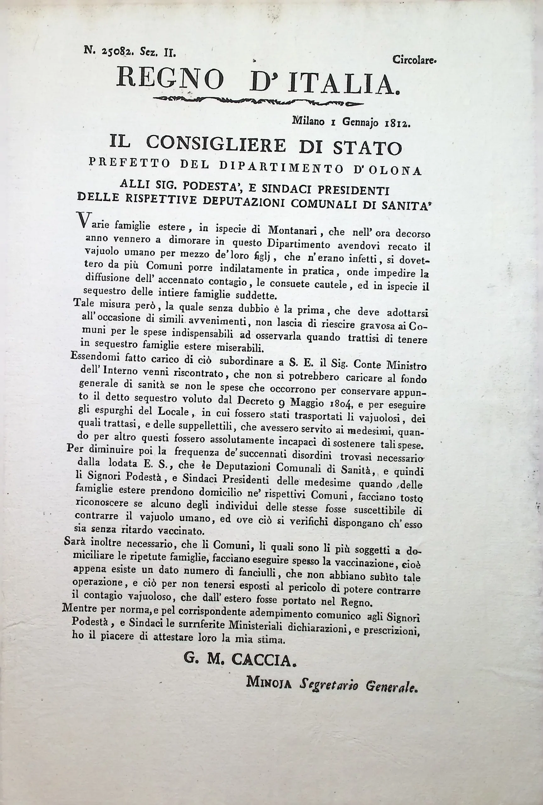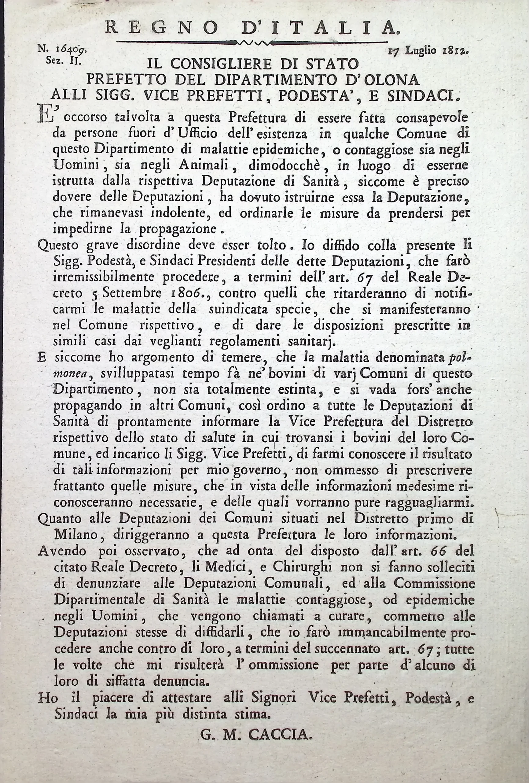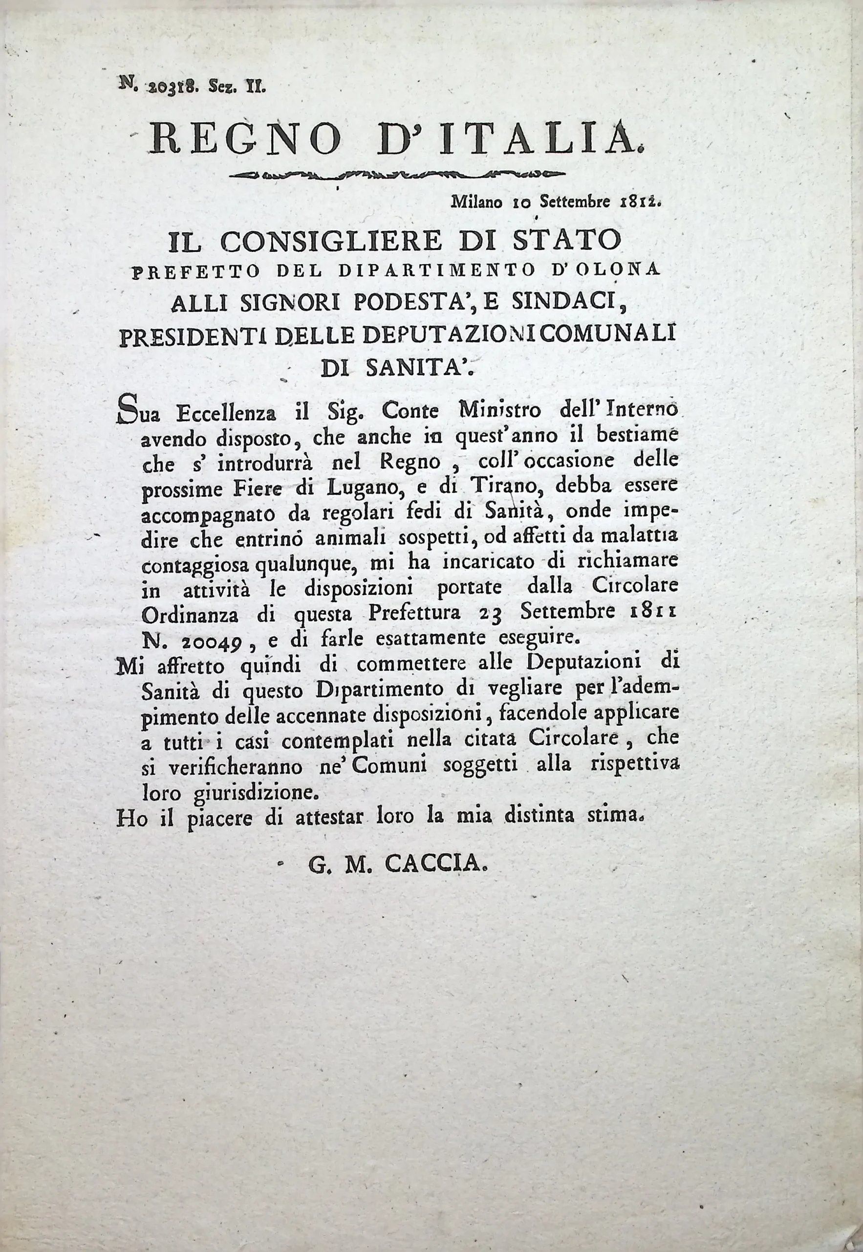 Circolari prefettizie inerenti misure di prevenzione di malattie epidemiche e contagiose degli uomini e degli animali