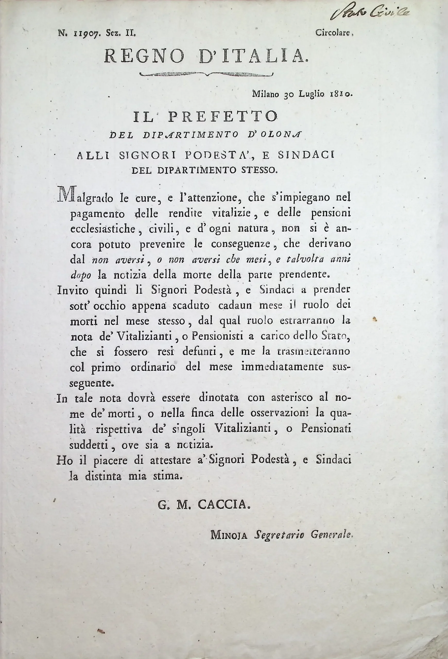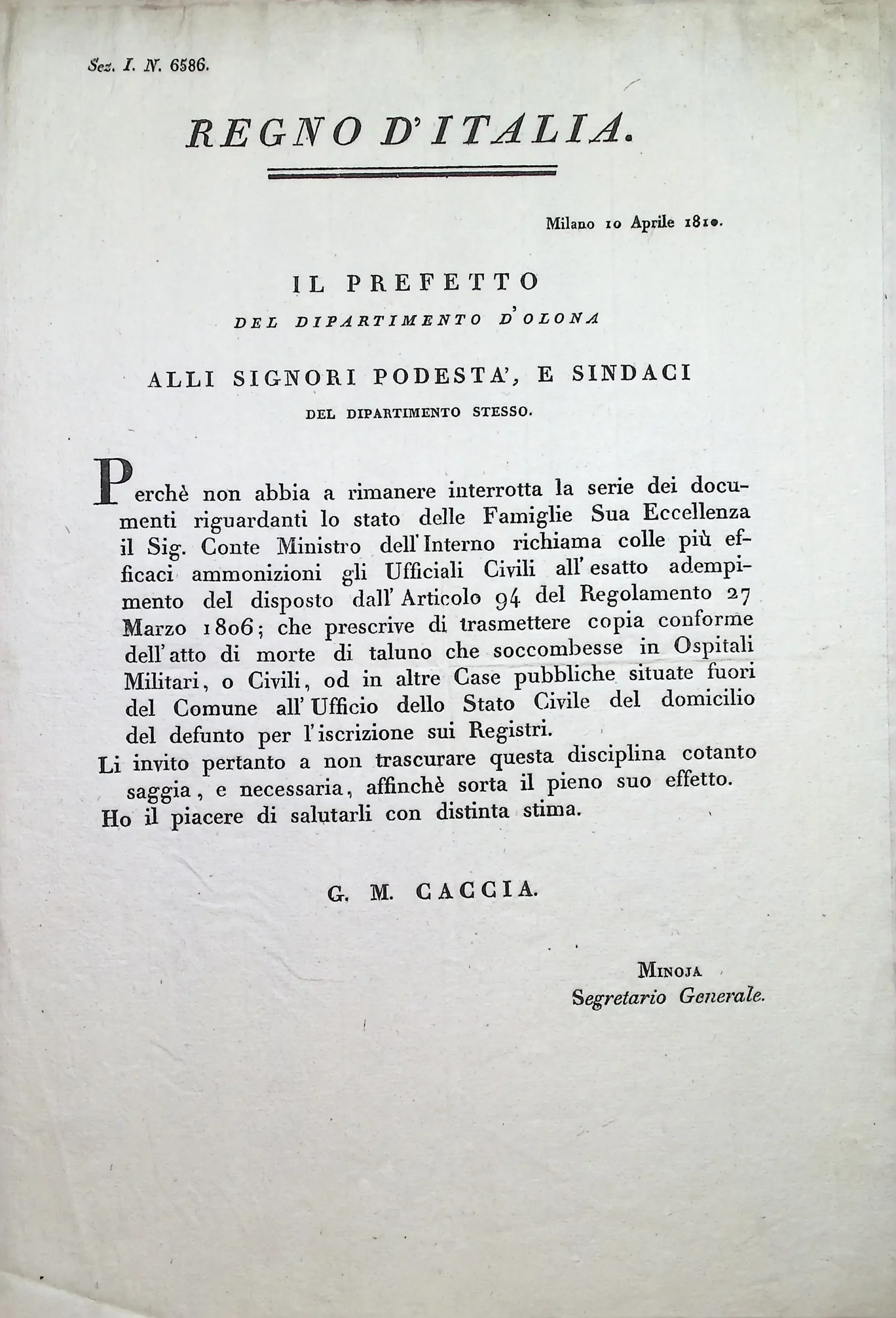 Circolari prefettizie sulla trasmissione degli atti di morte di persone decedute lontane dal loro domicilio all’Ufficiale dello stato civile del domicilio del defunto