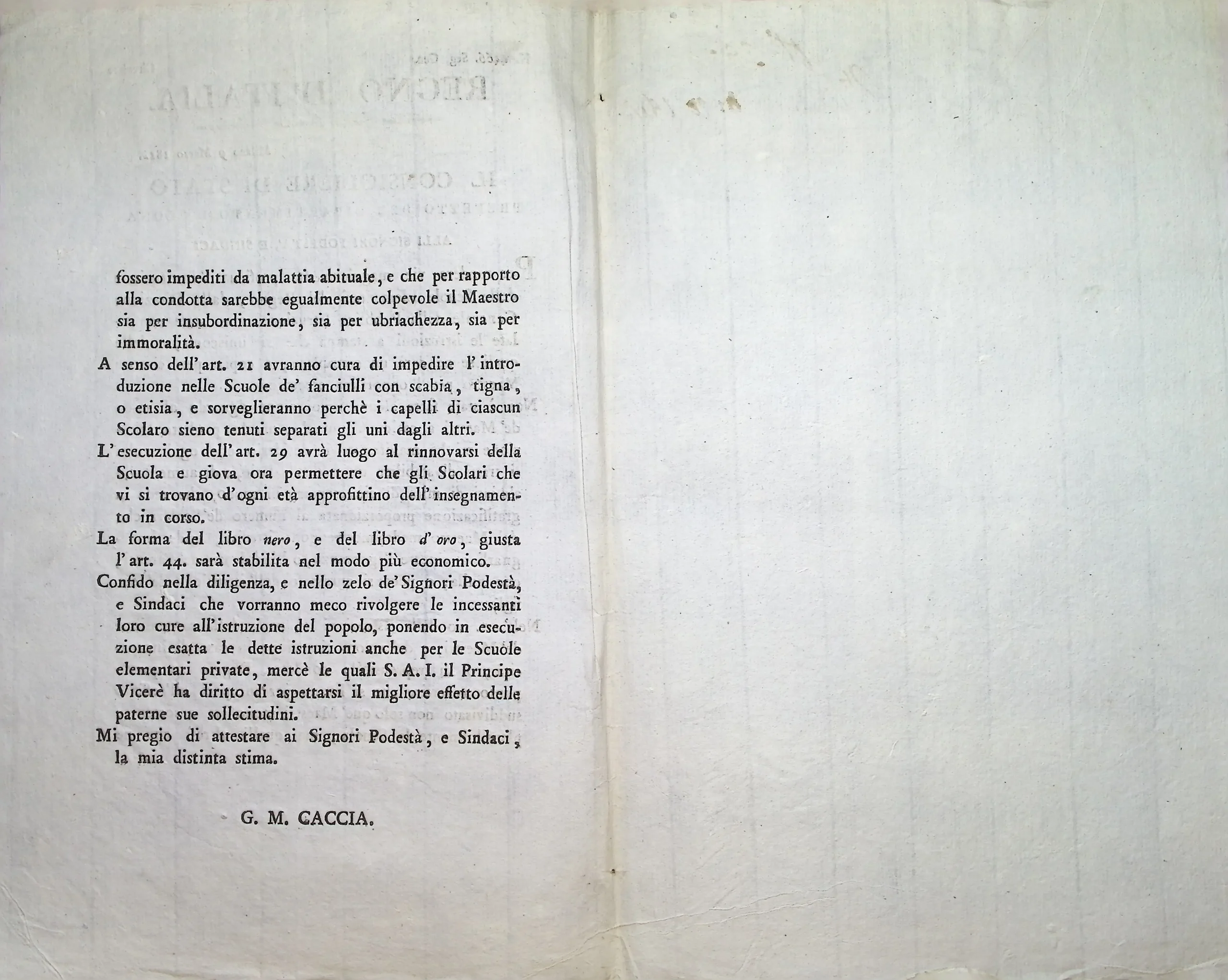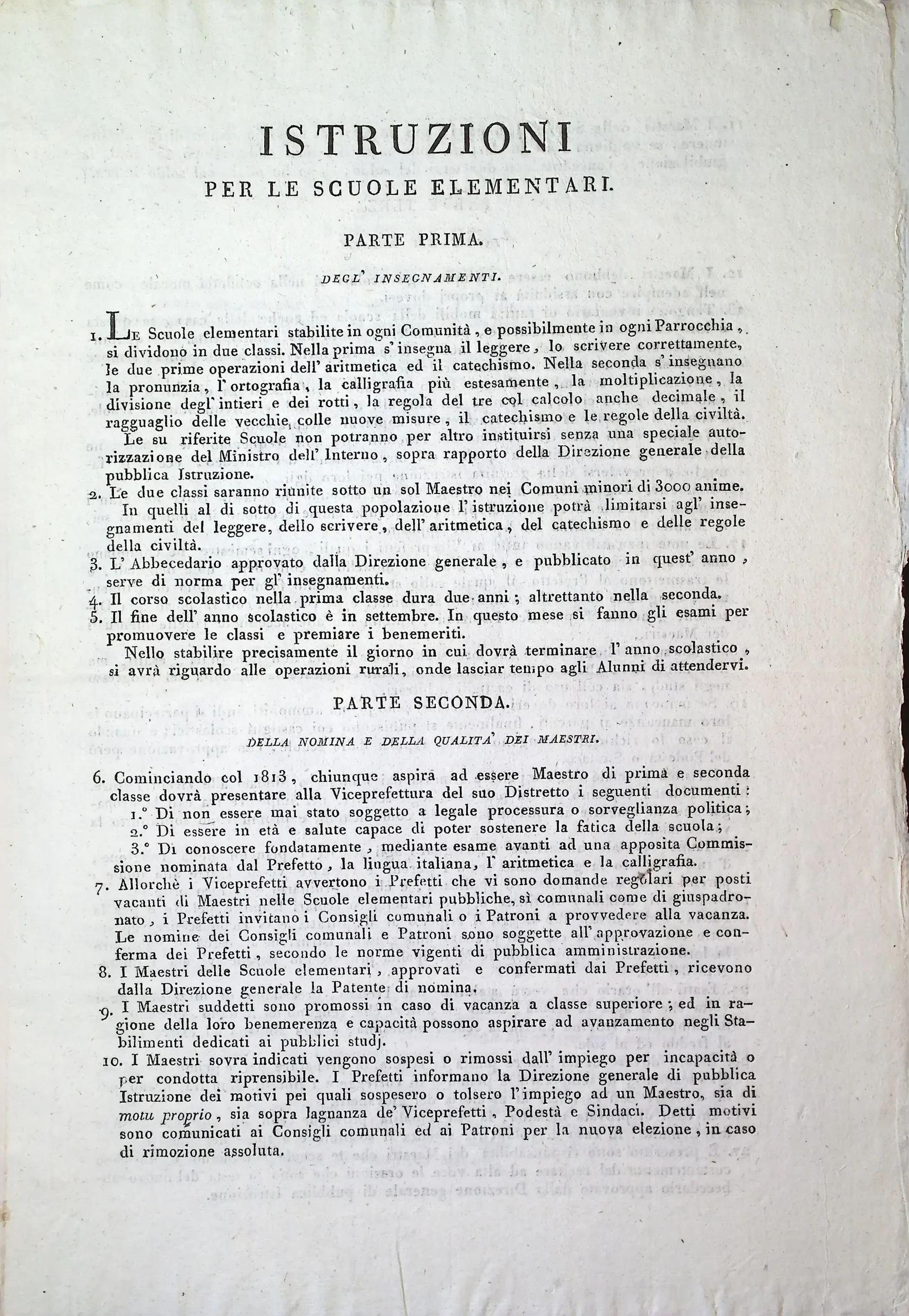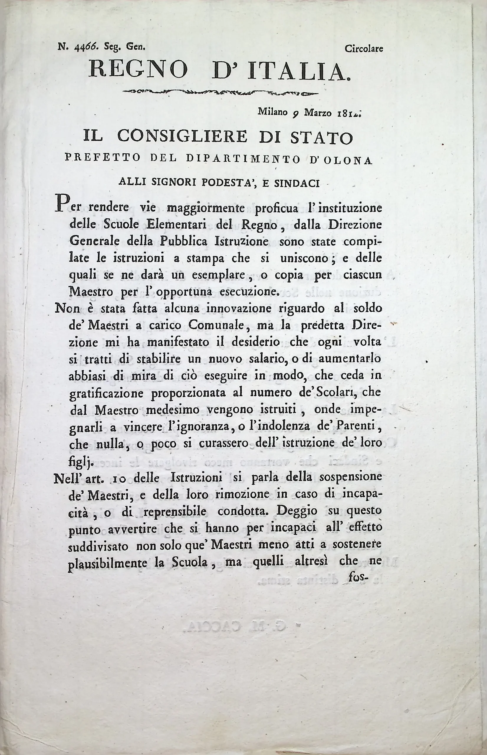 Circolari relative alla istituzione delle Scuole elementari nel Regno