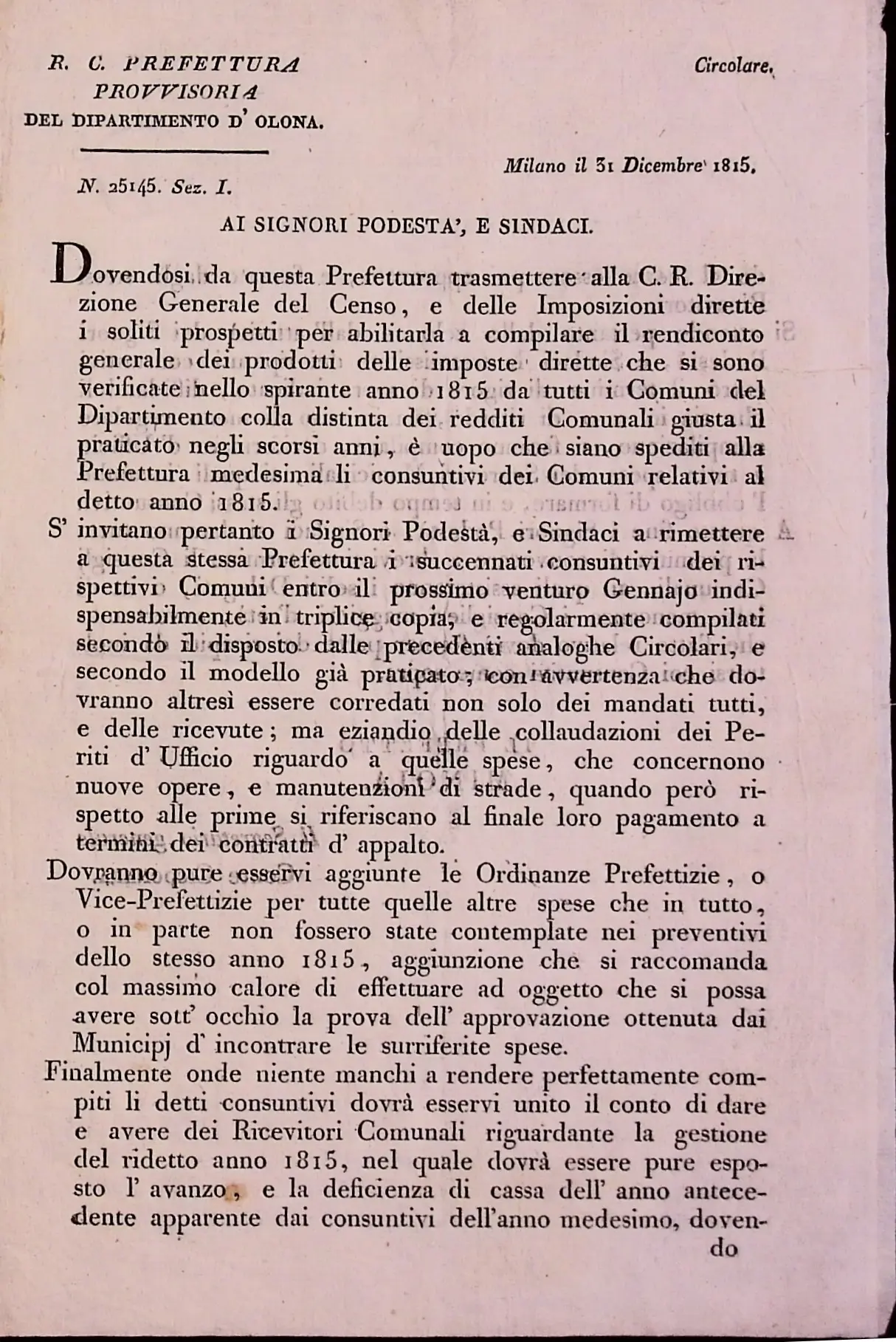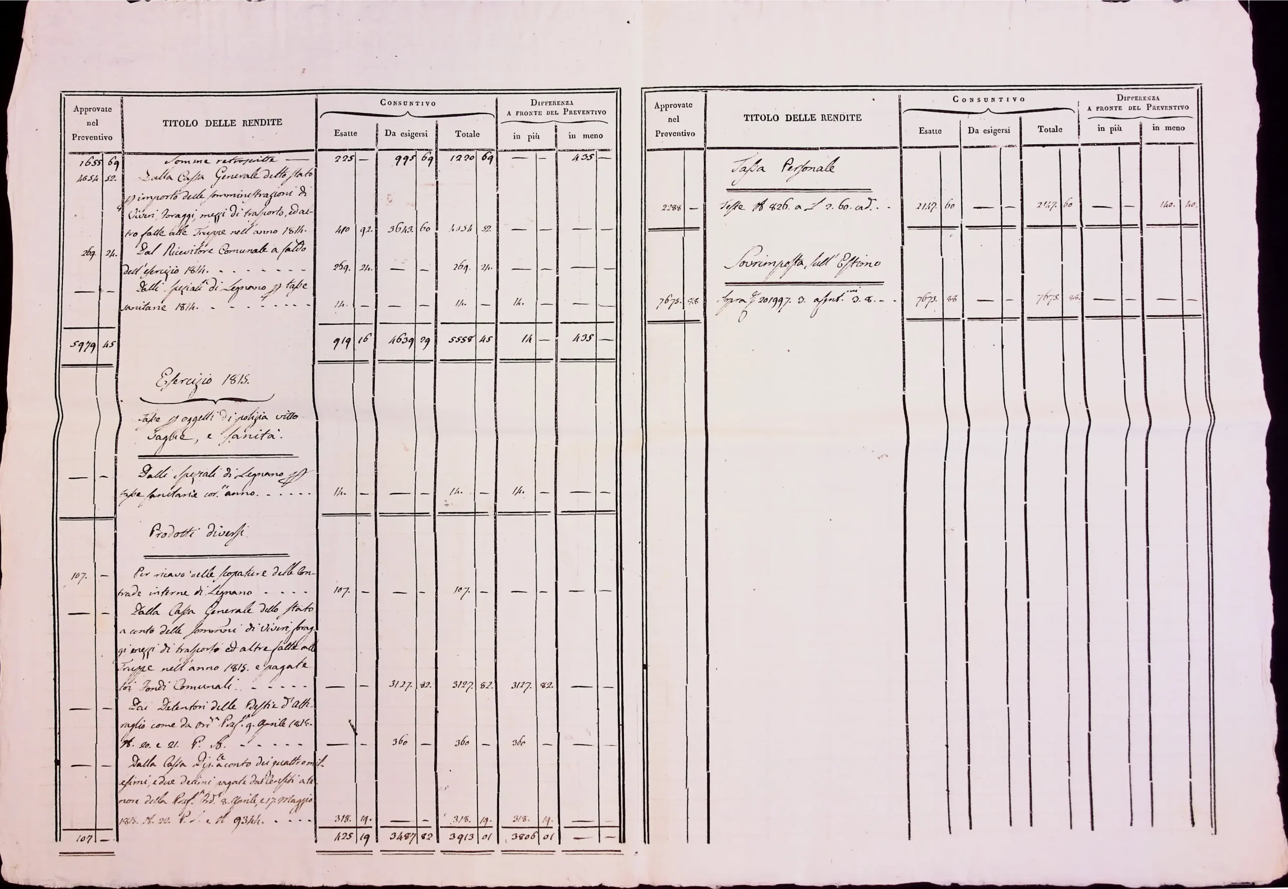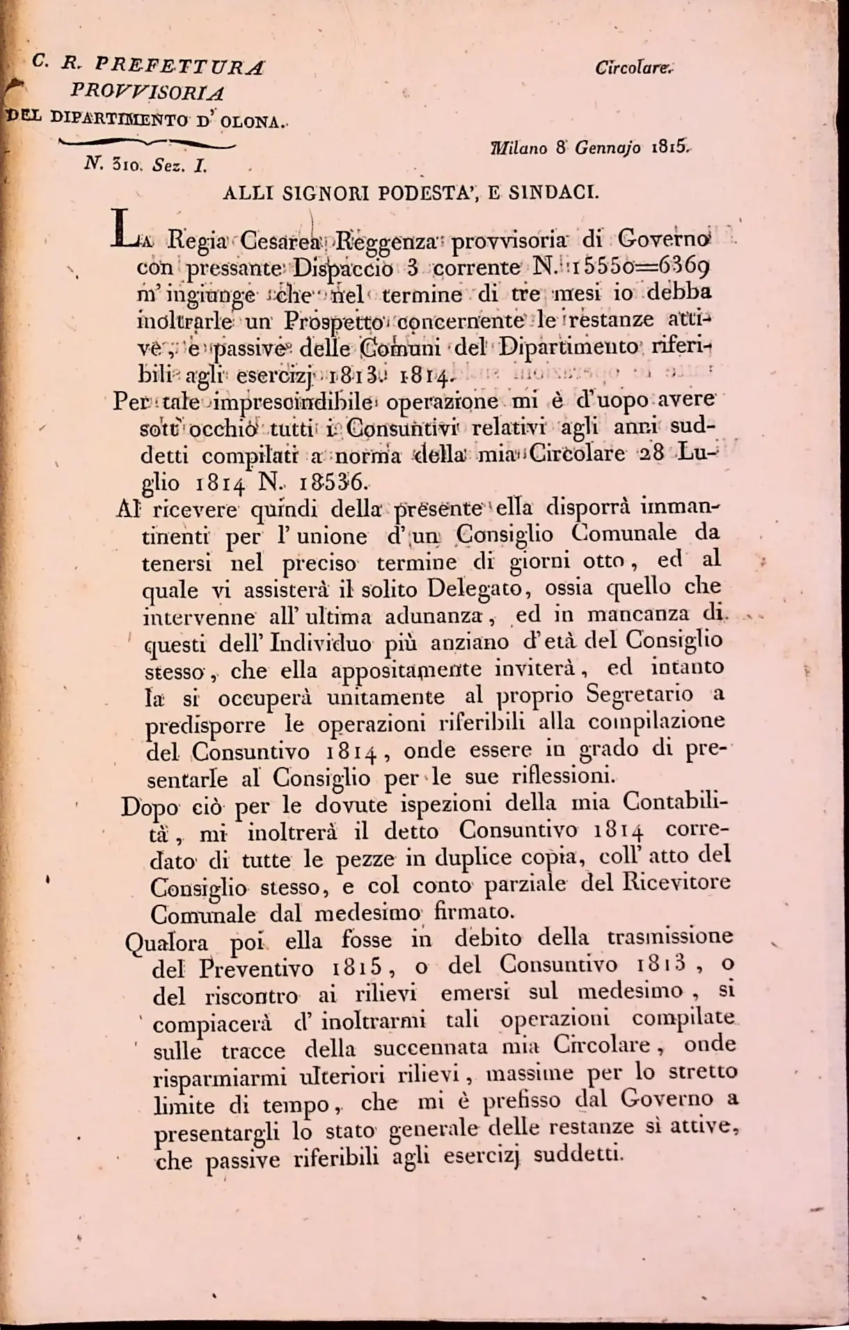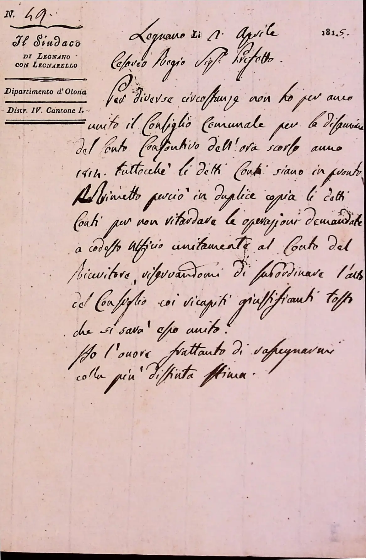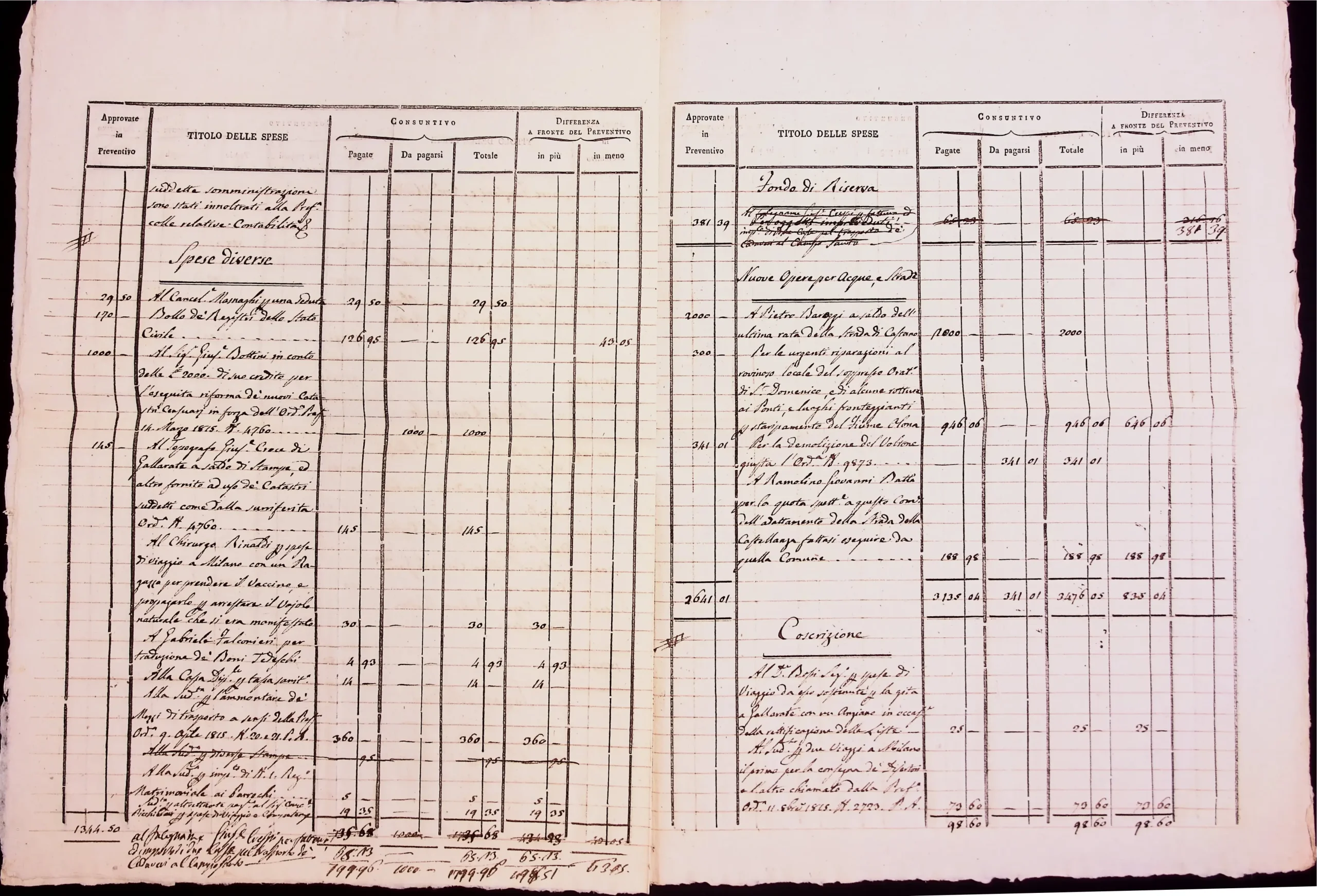 Conto consuntivo del 1815 – Disposizioni e carteggio relativo