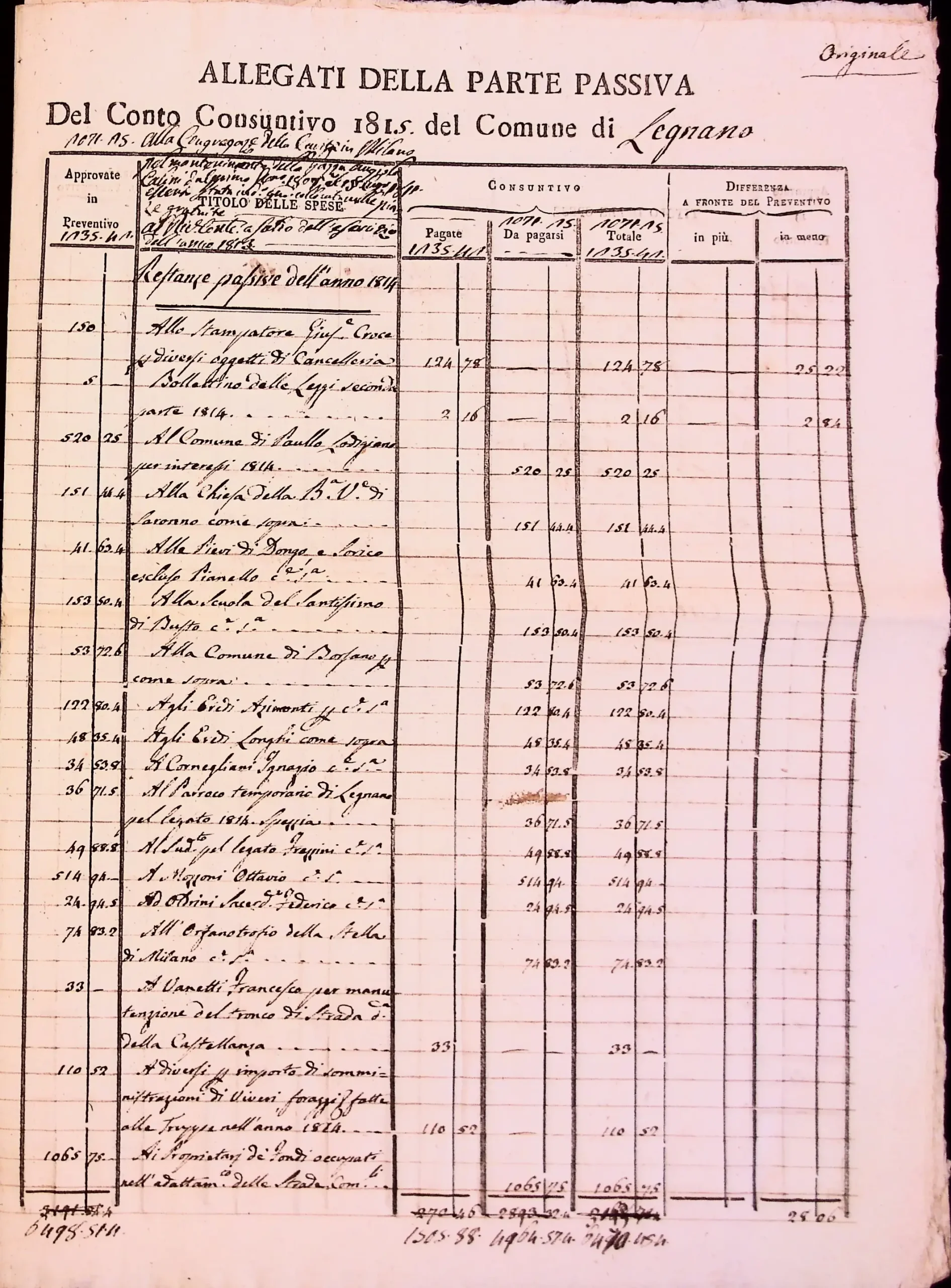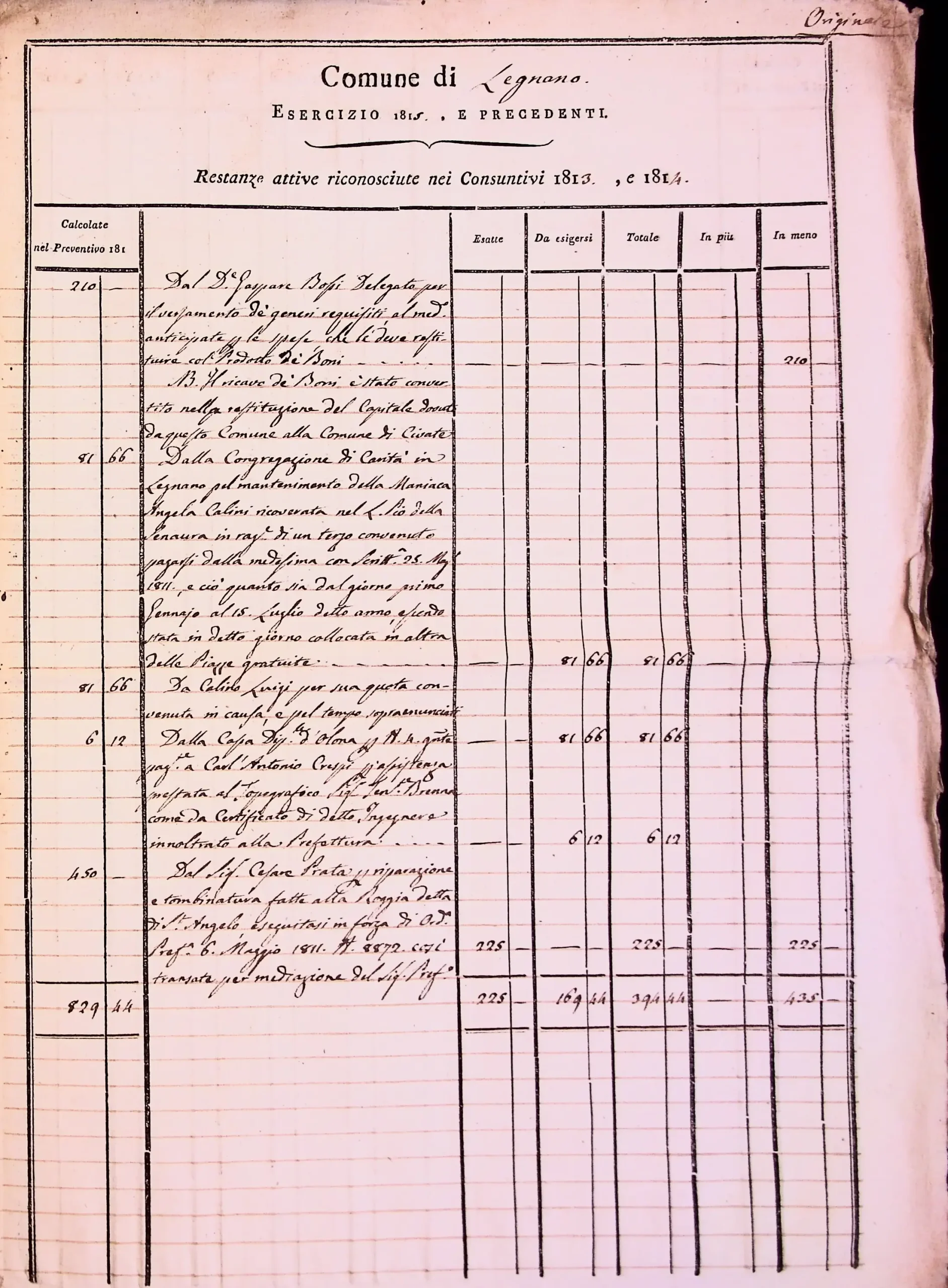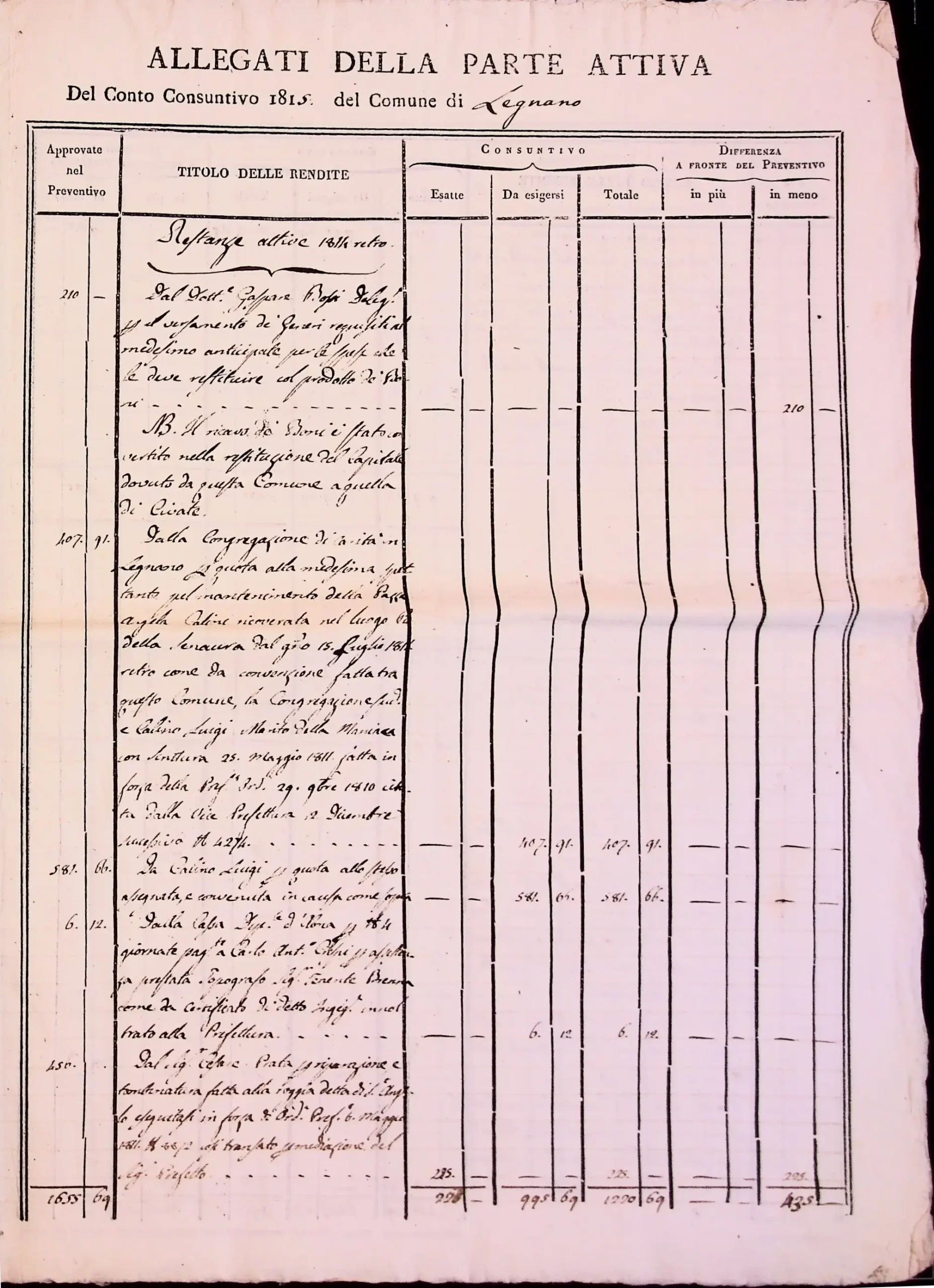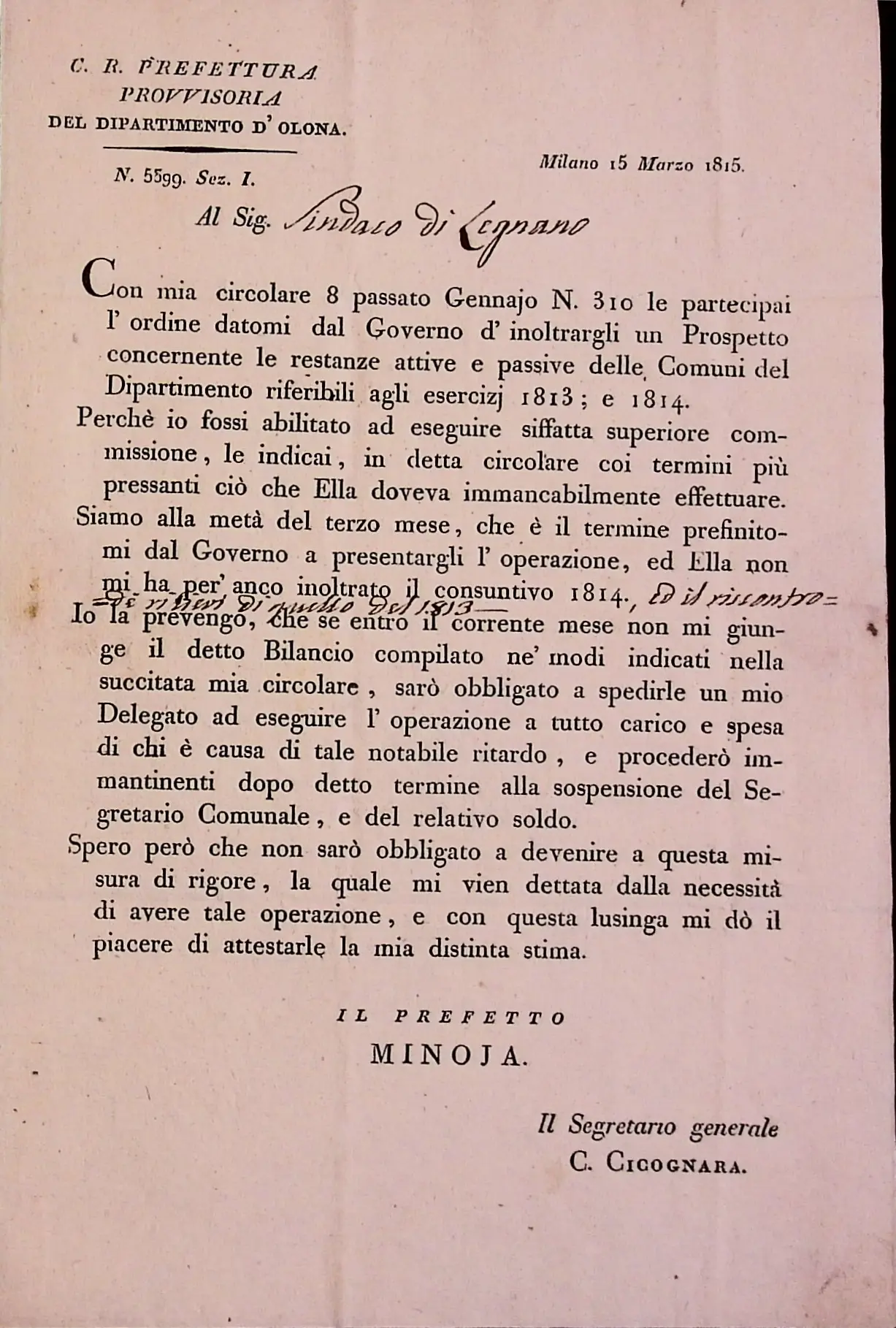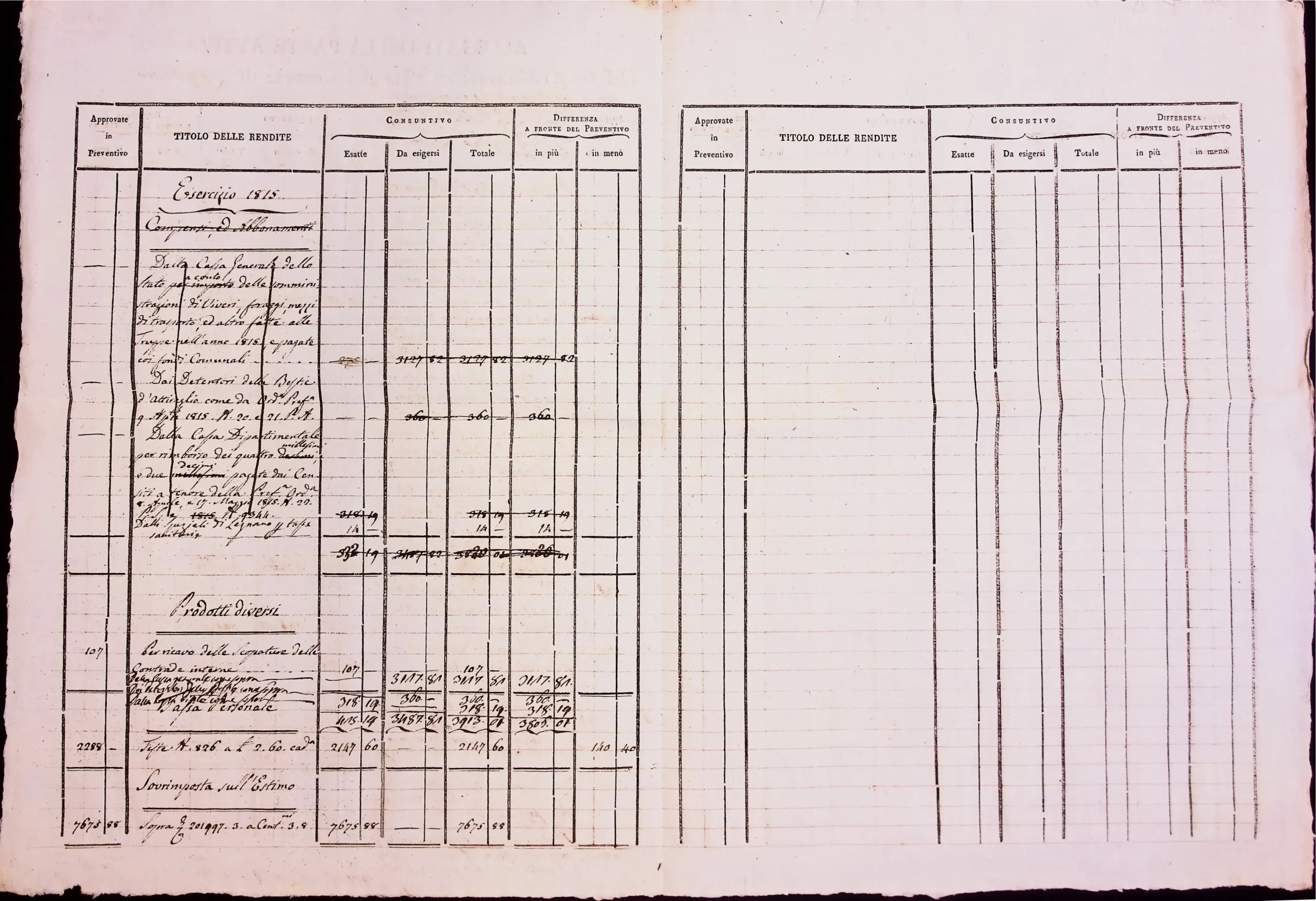 Conto consuntivo del 1815 – Disposizioni e carteggio relativo