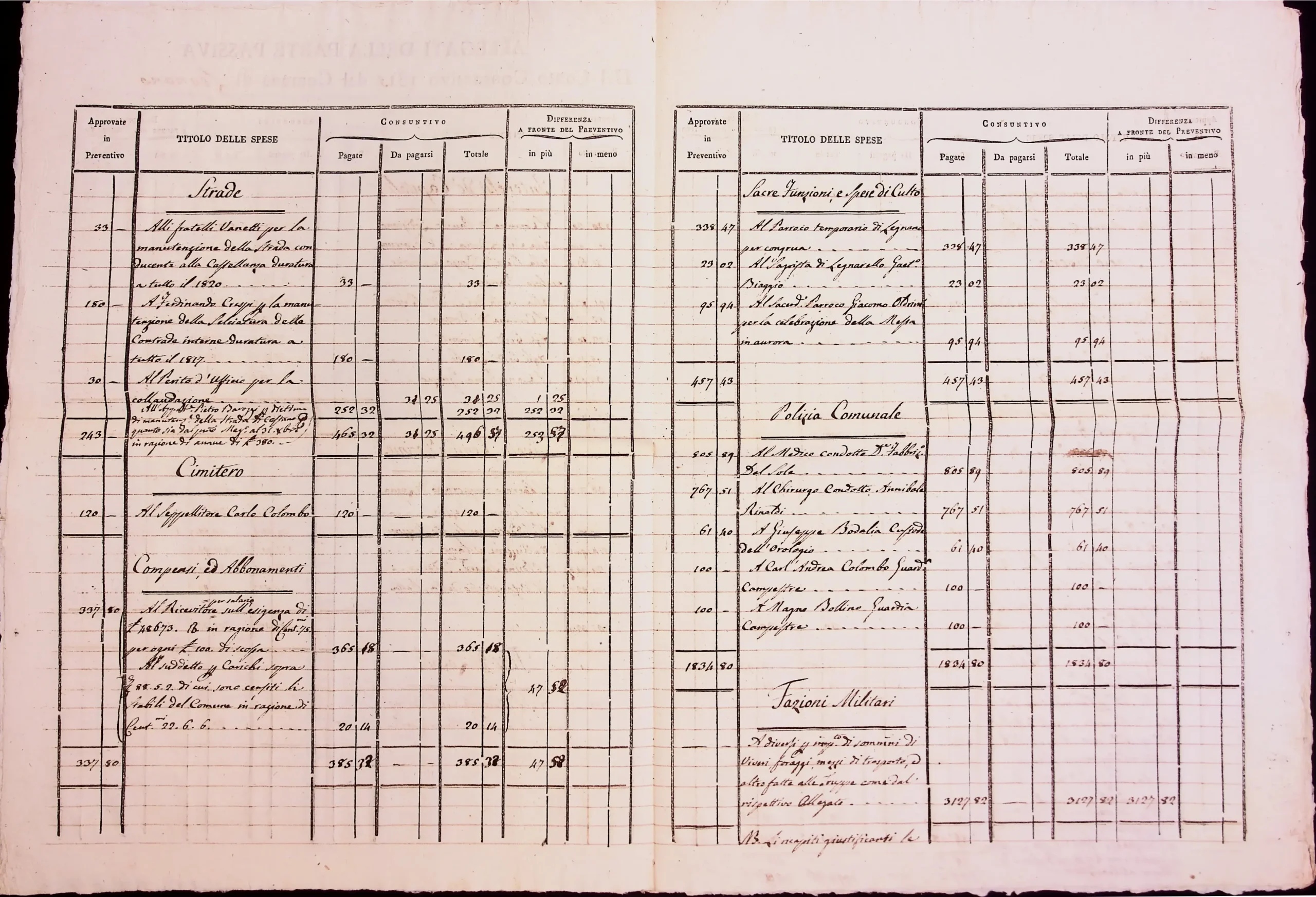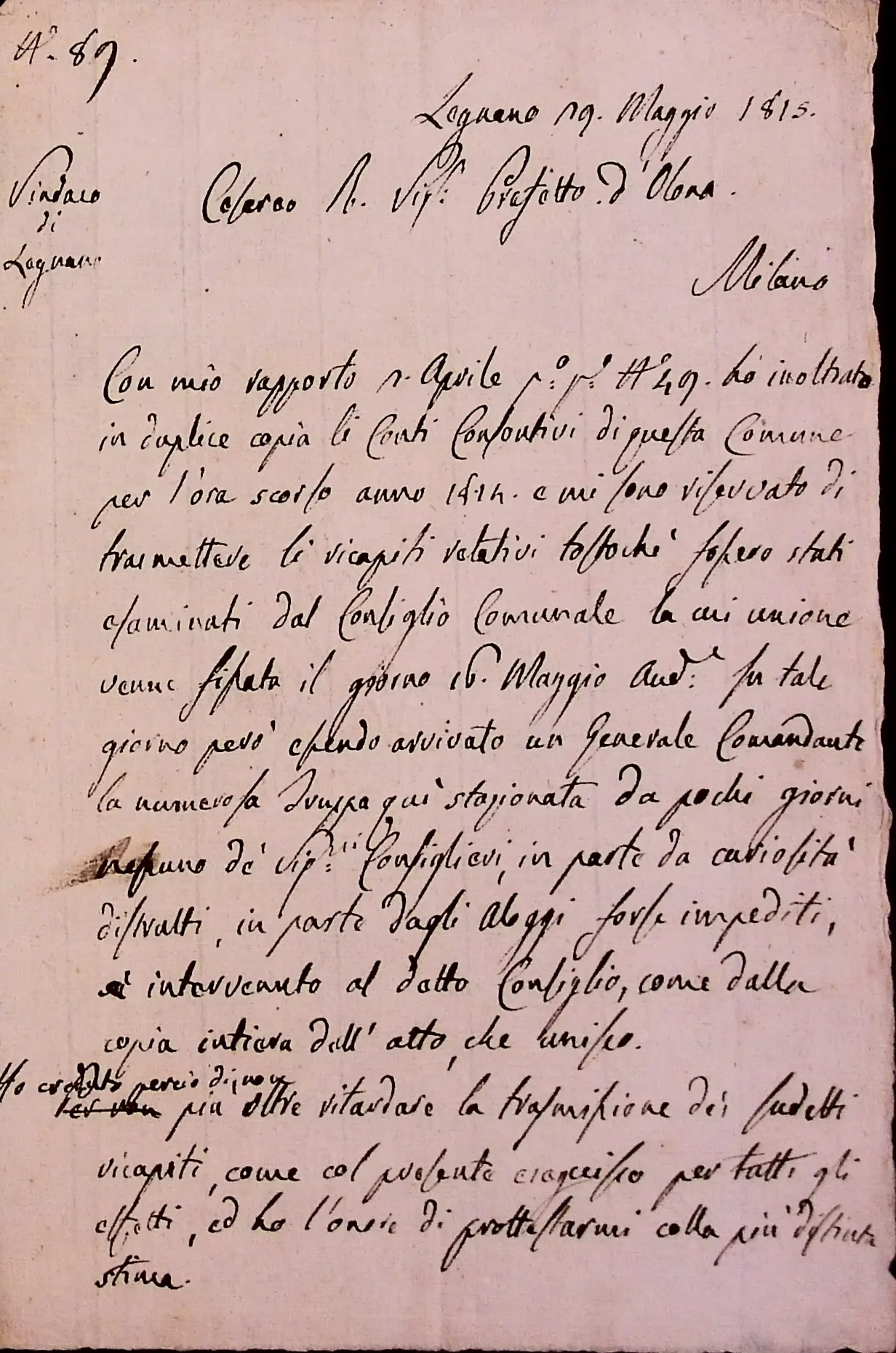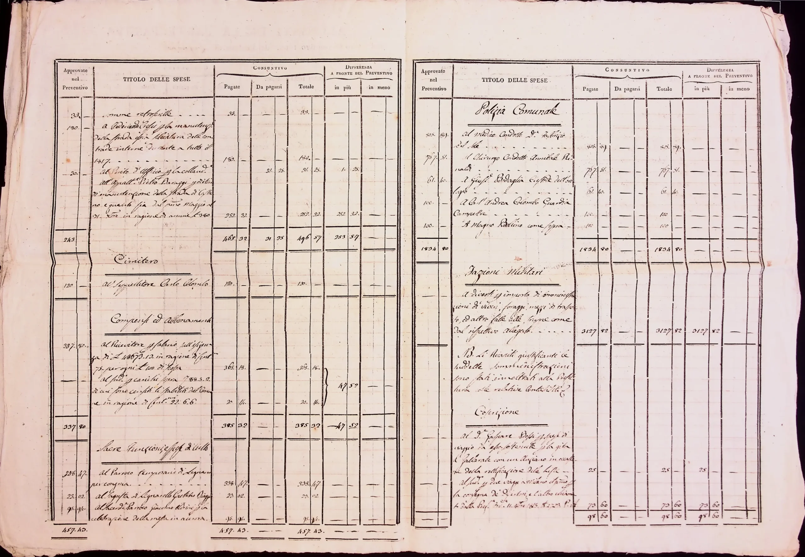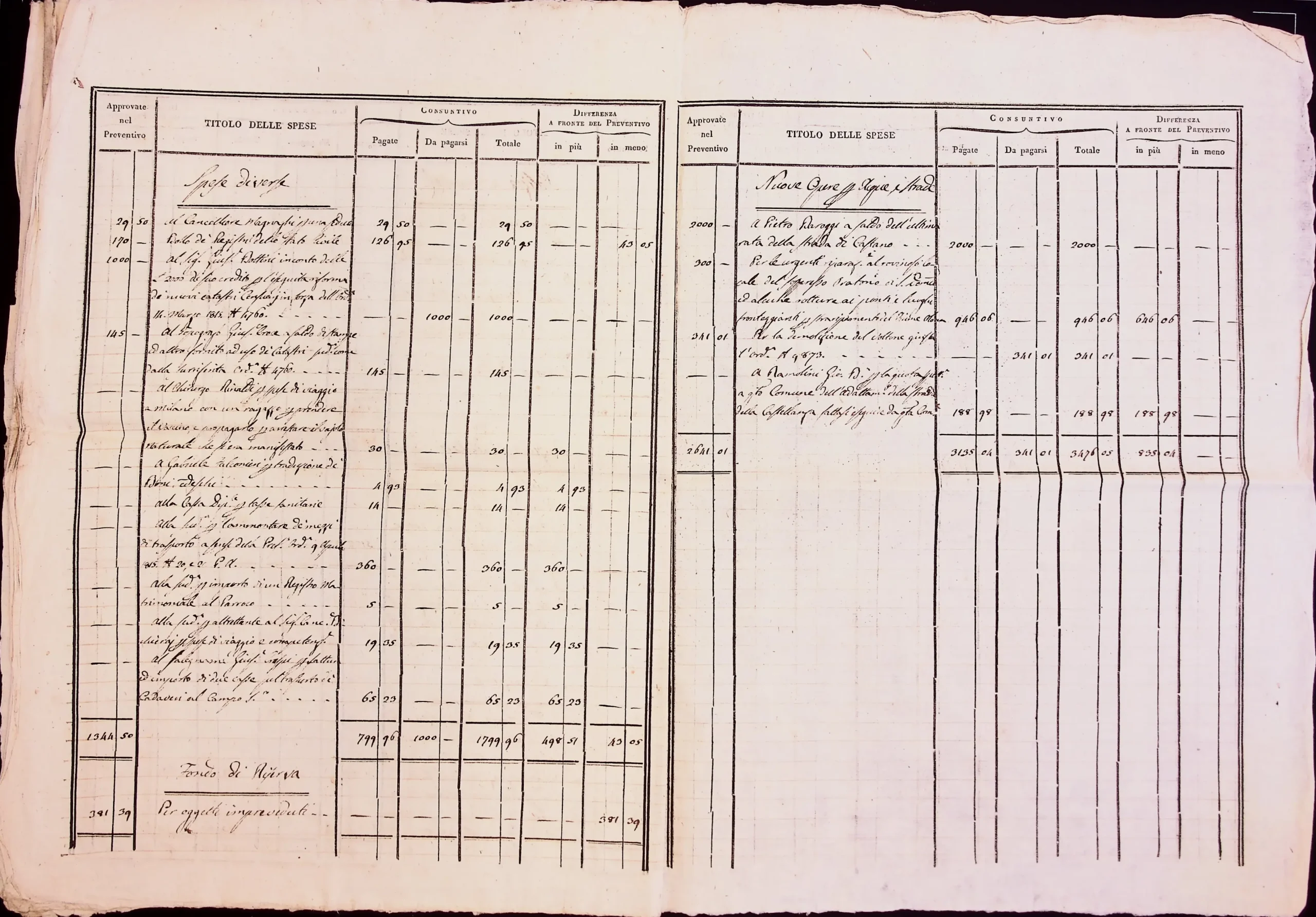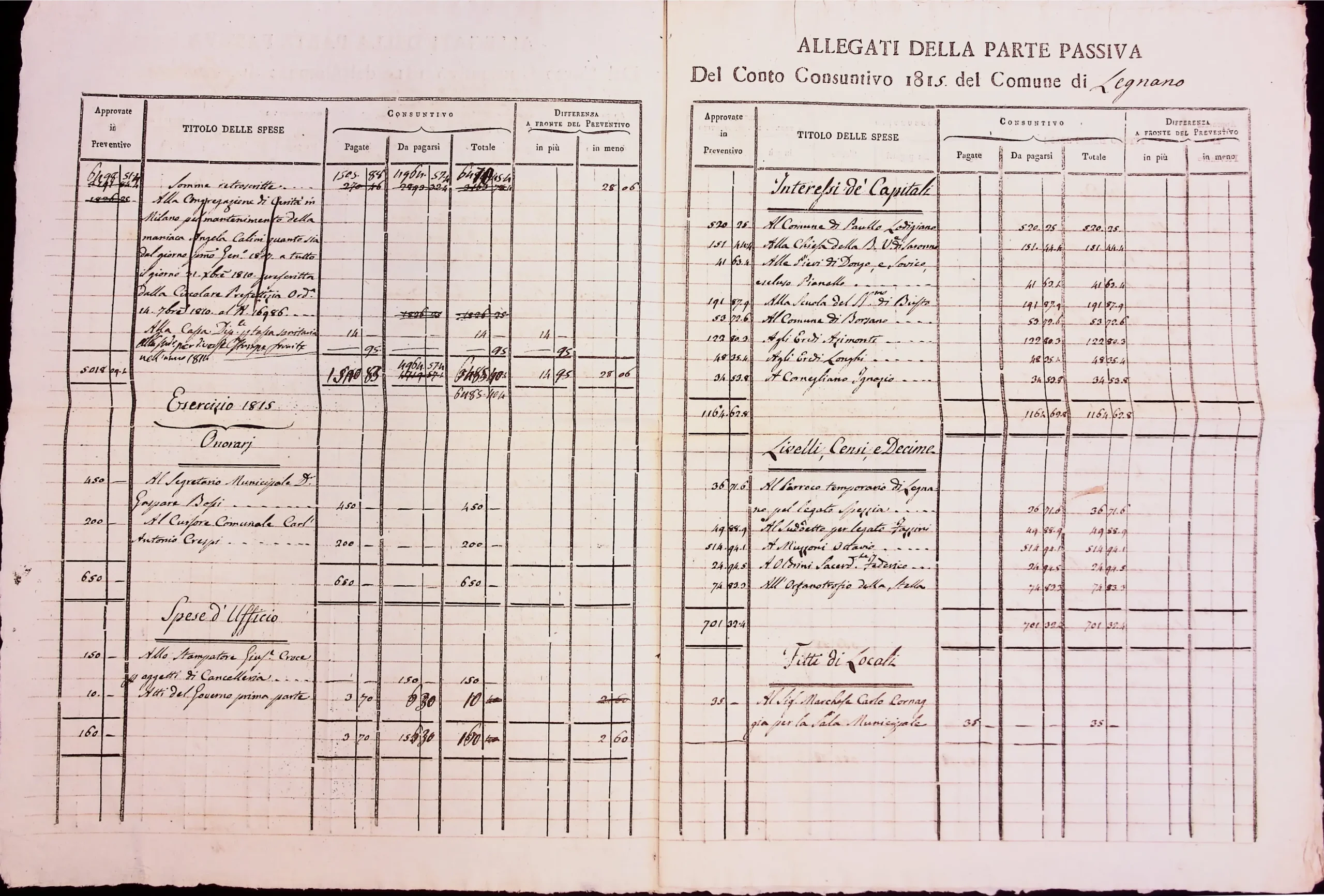Conto consuntivo del 1815 – Disposizioni e carteggio relativo