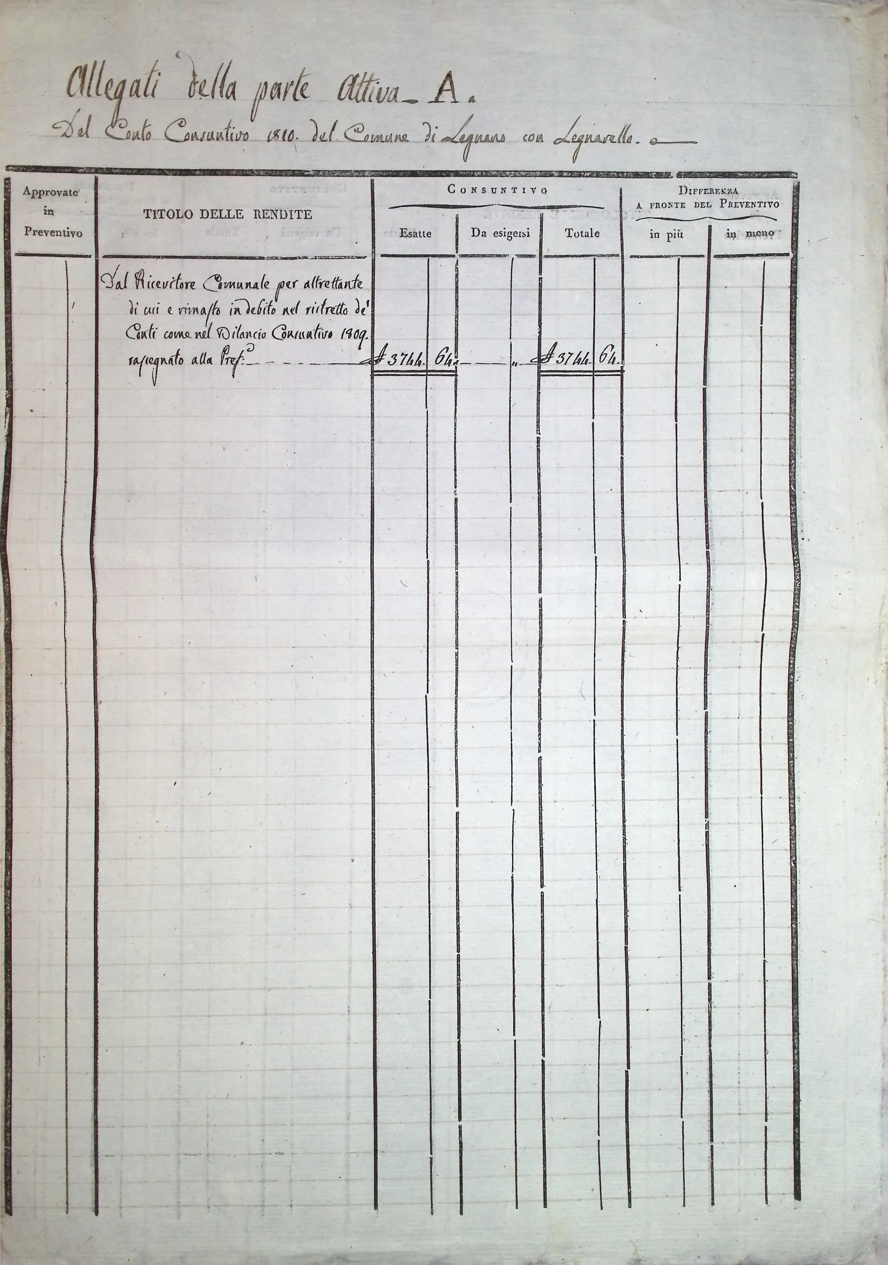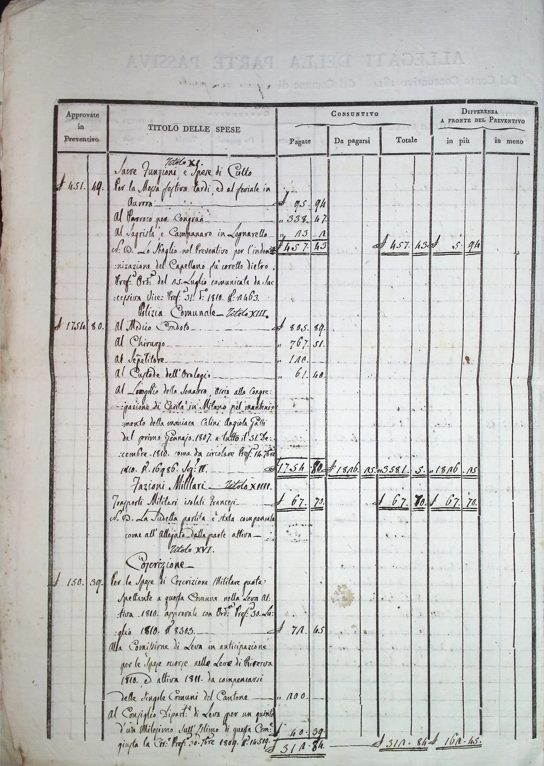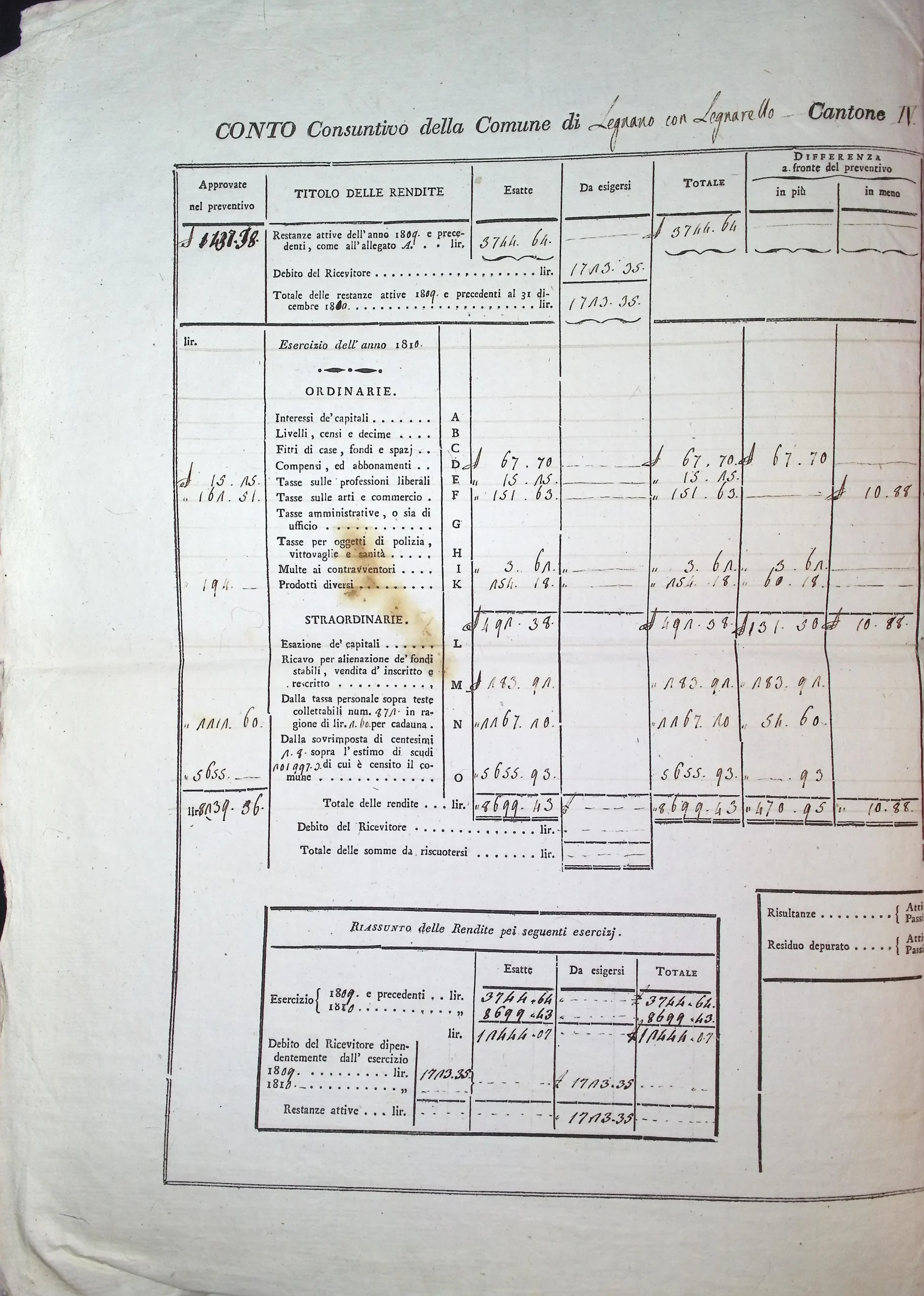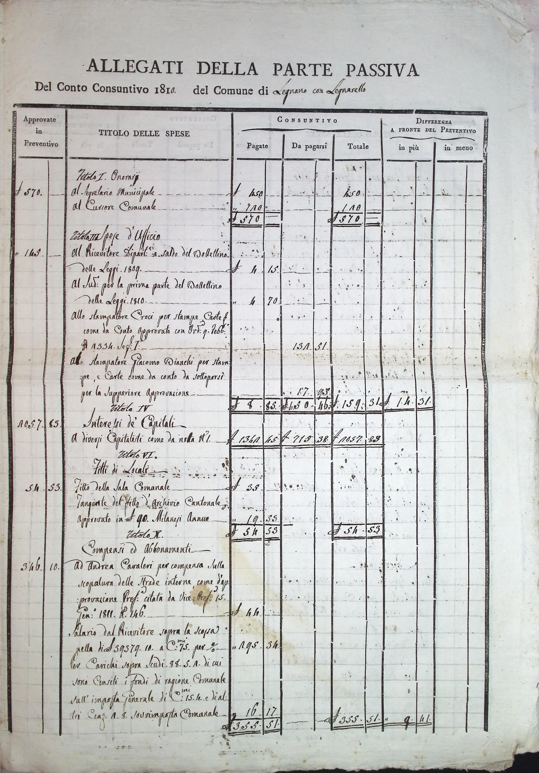 Conto consuntivo del Comune per l’anno 1810