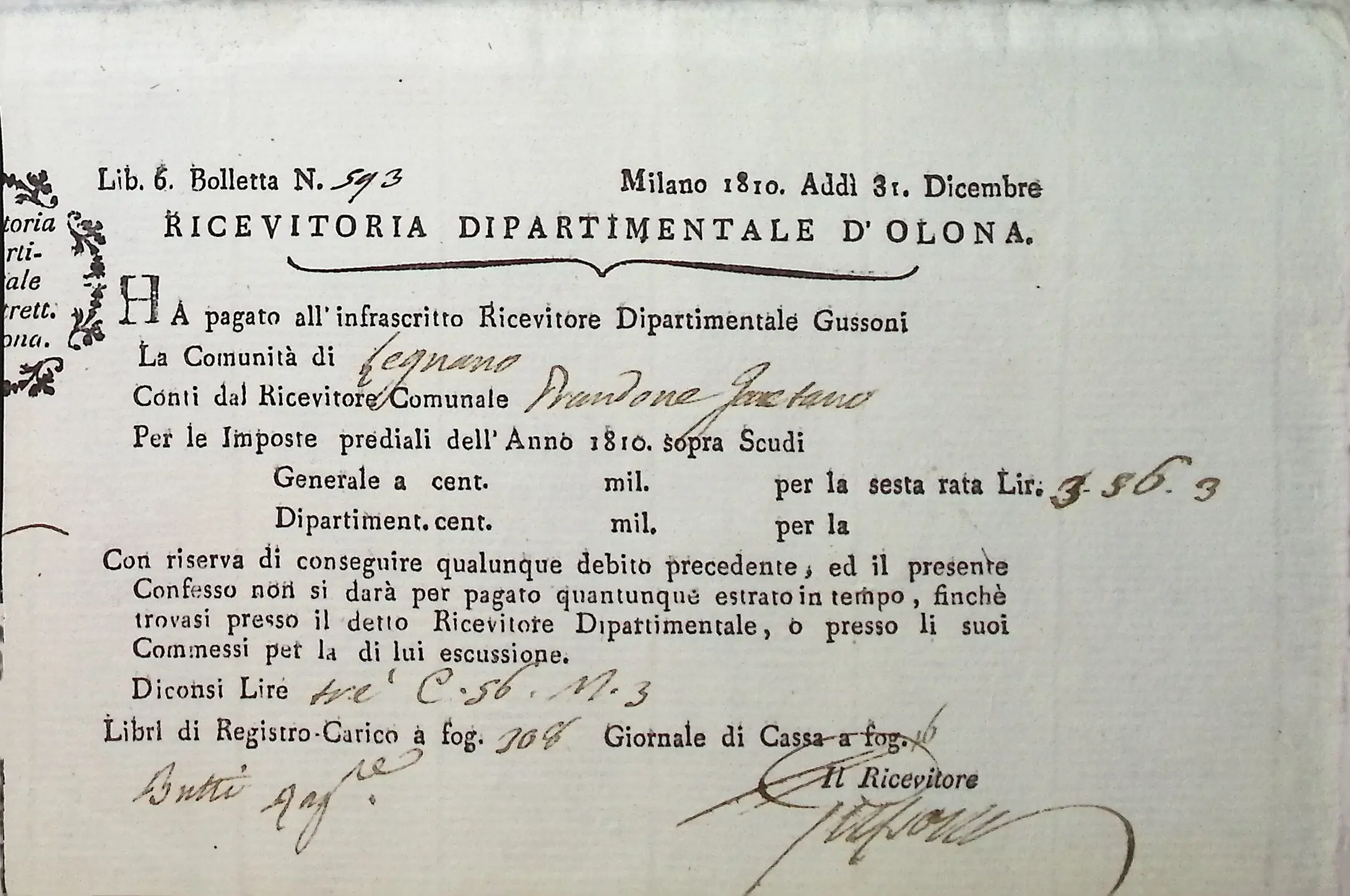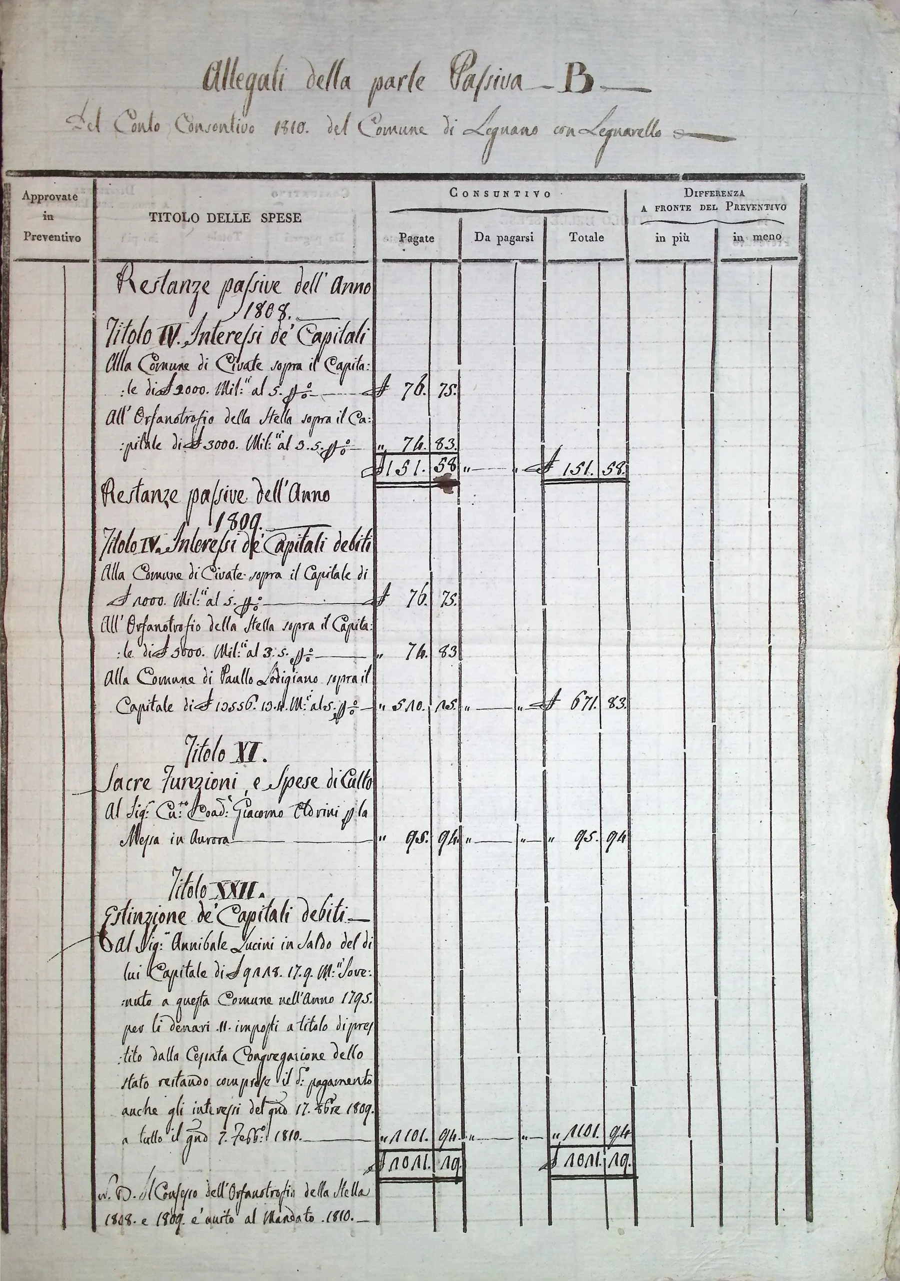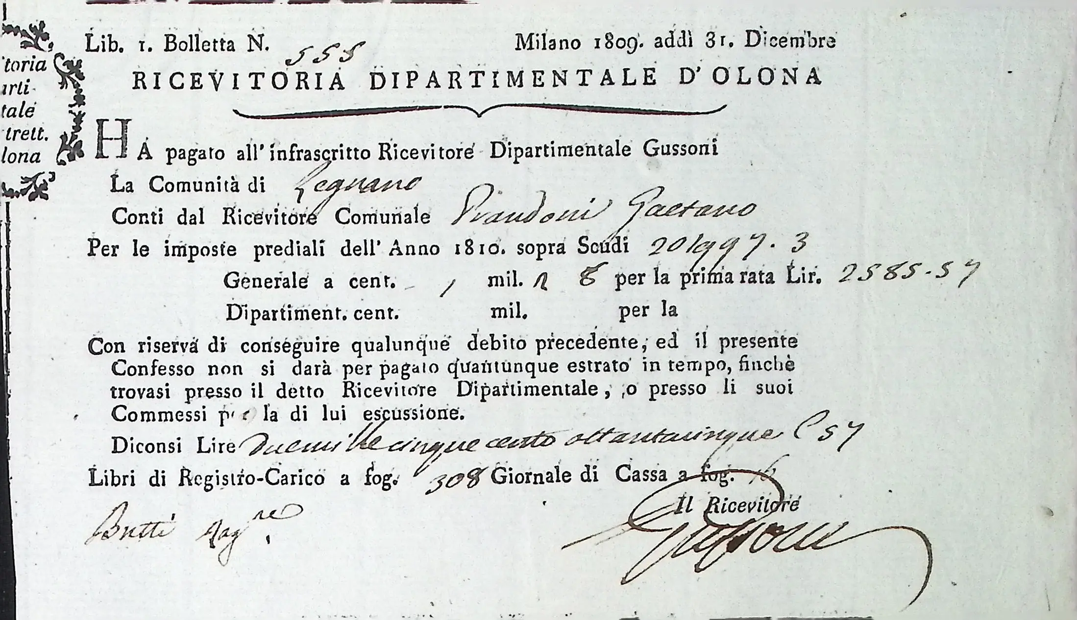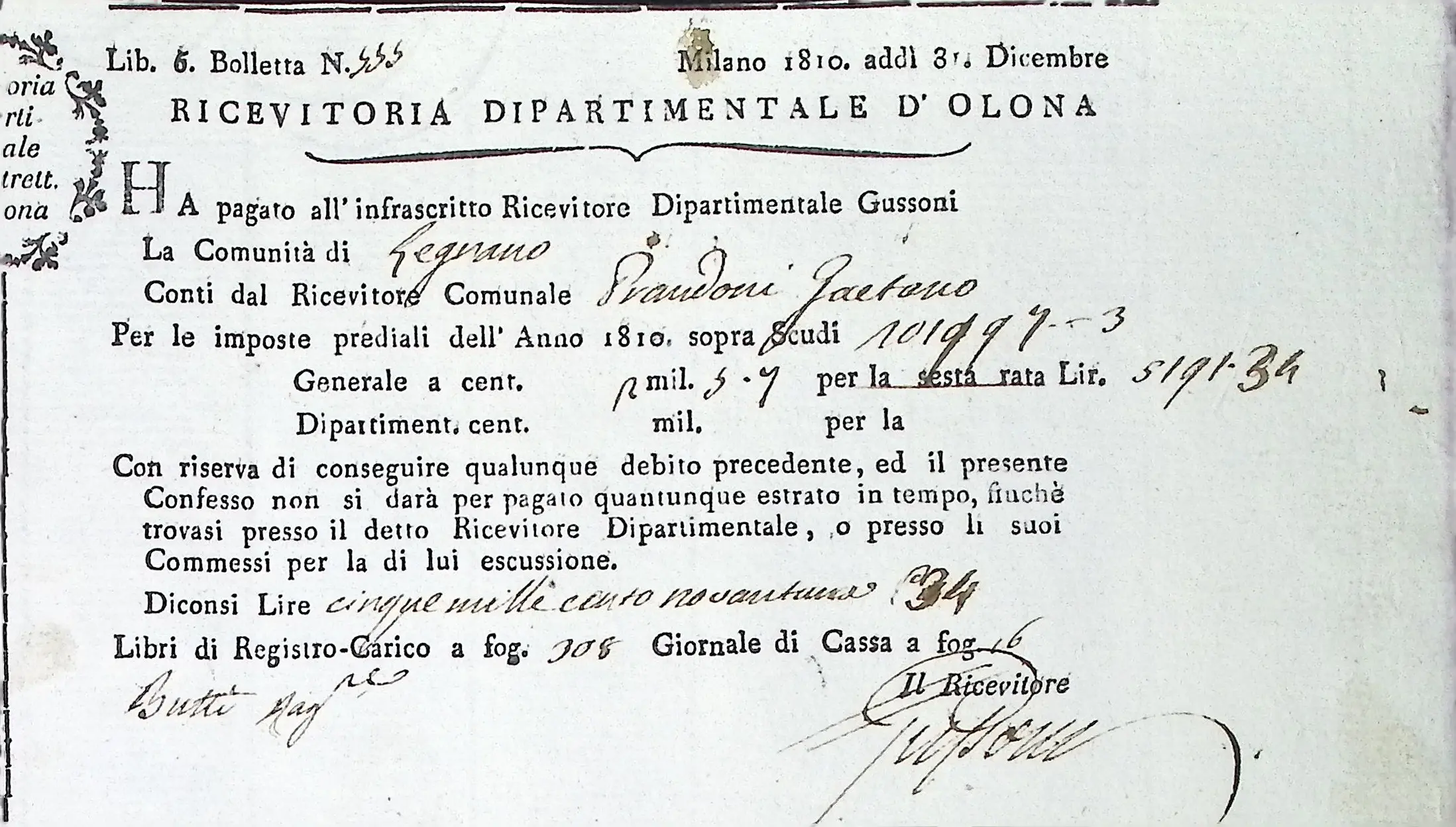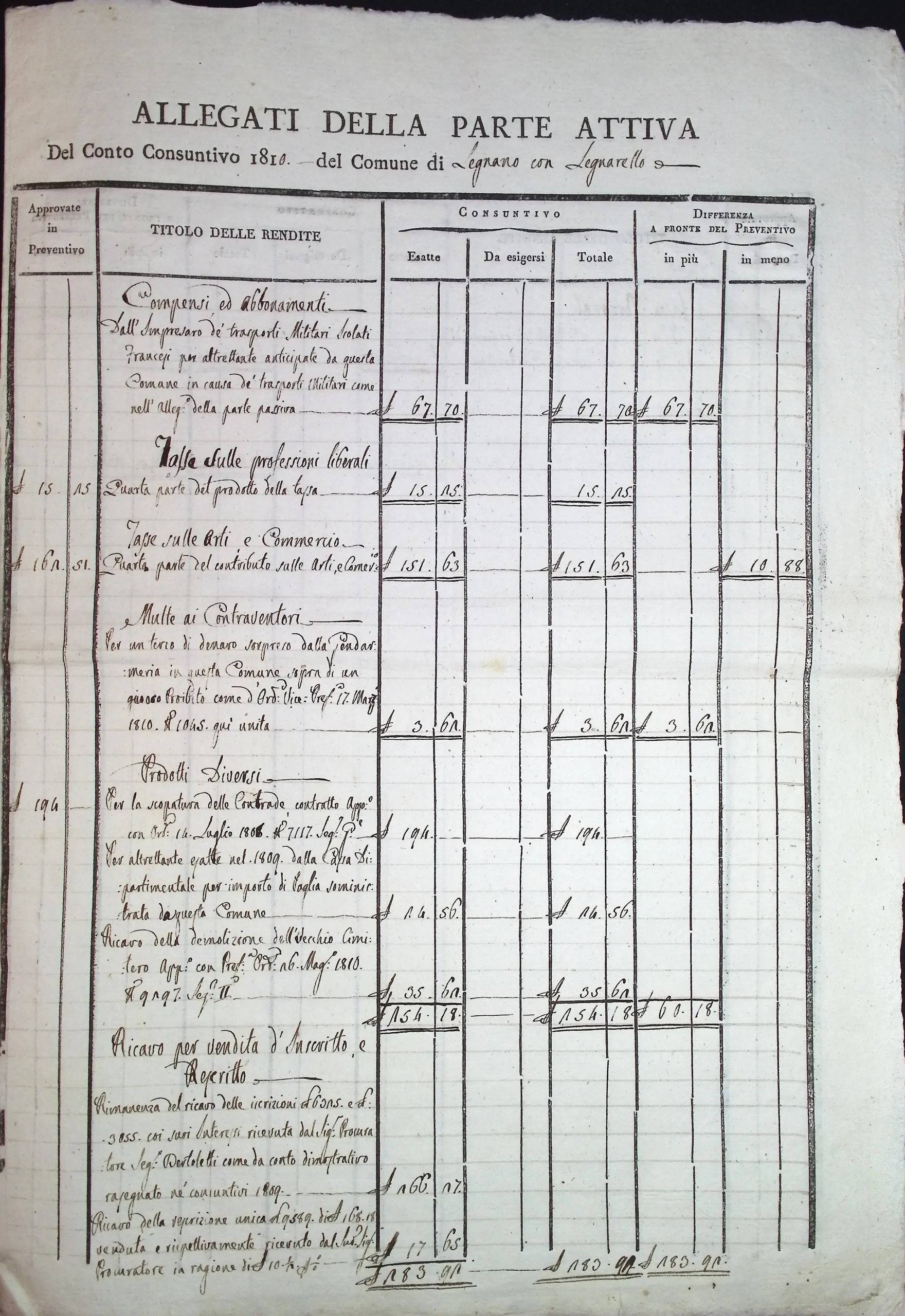 Conto consuntivo del Comune per l’anno 1810