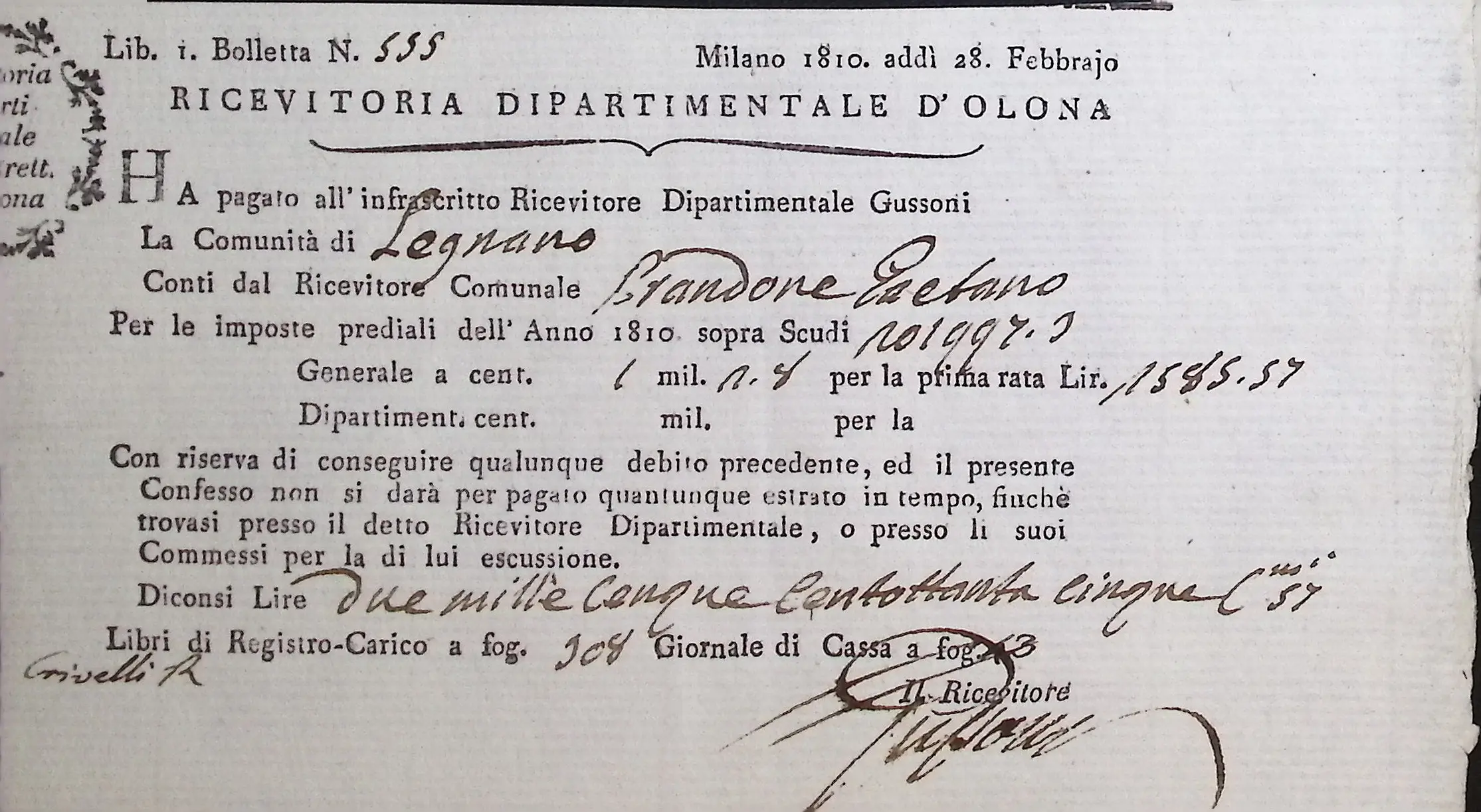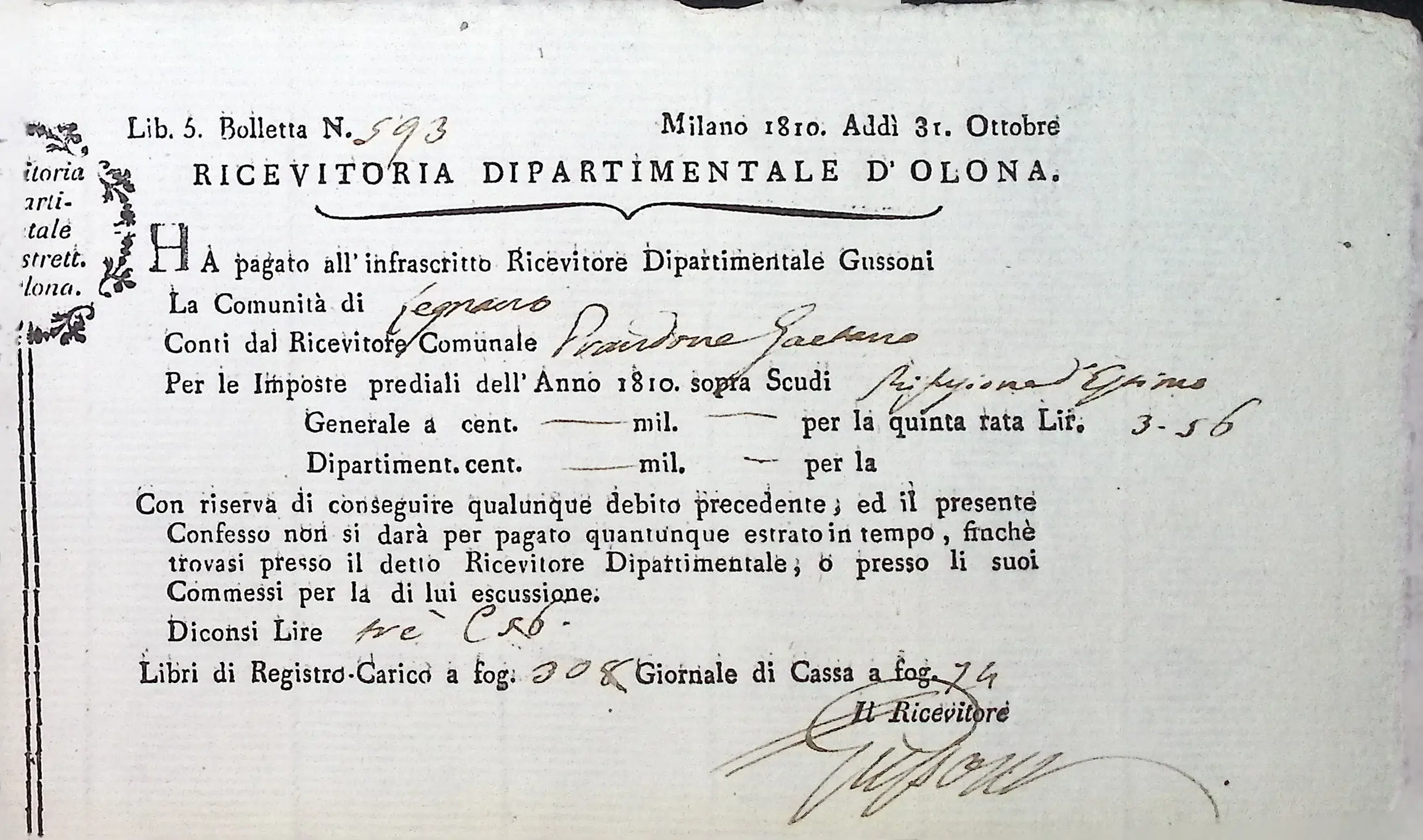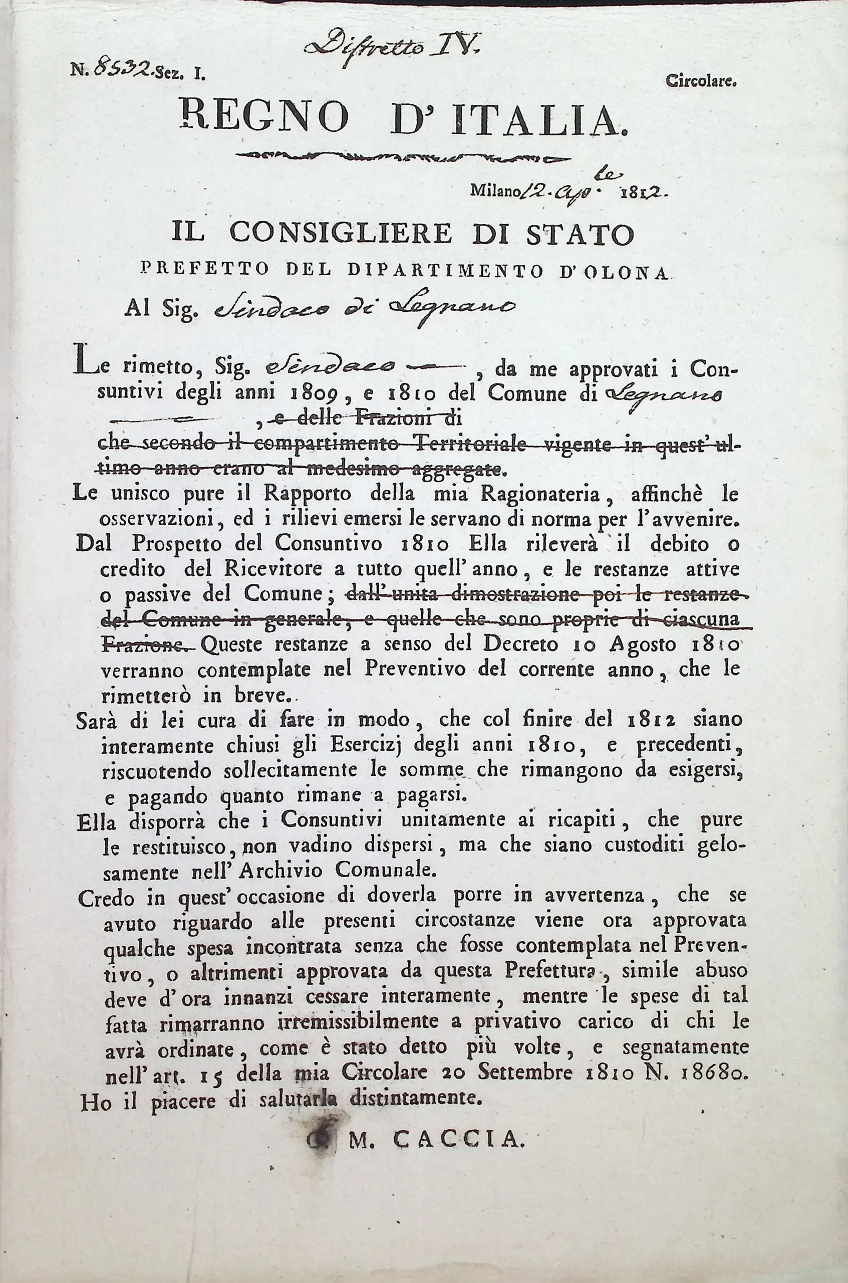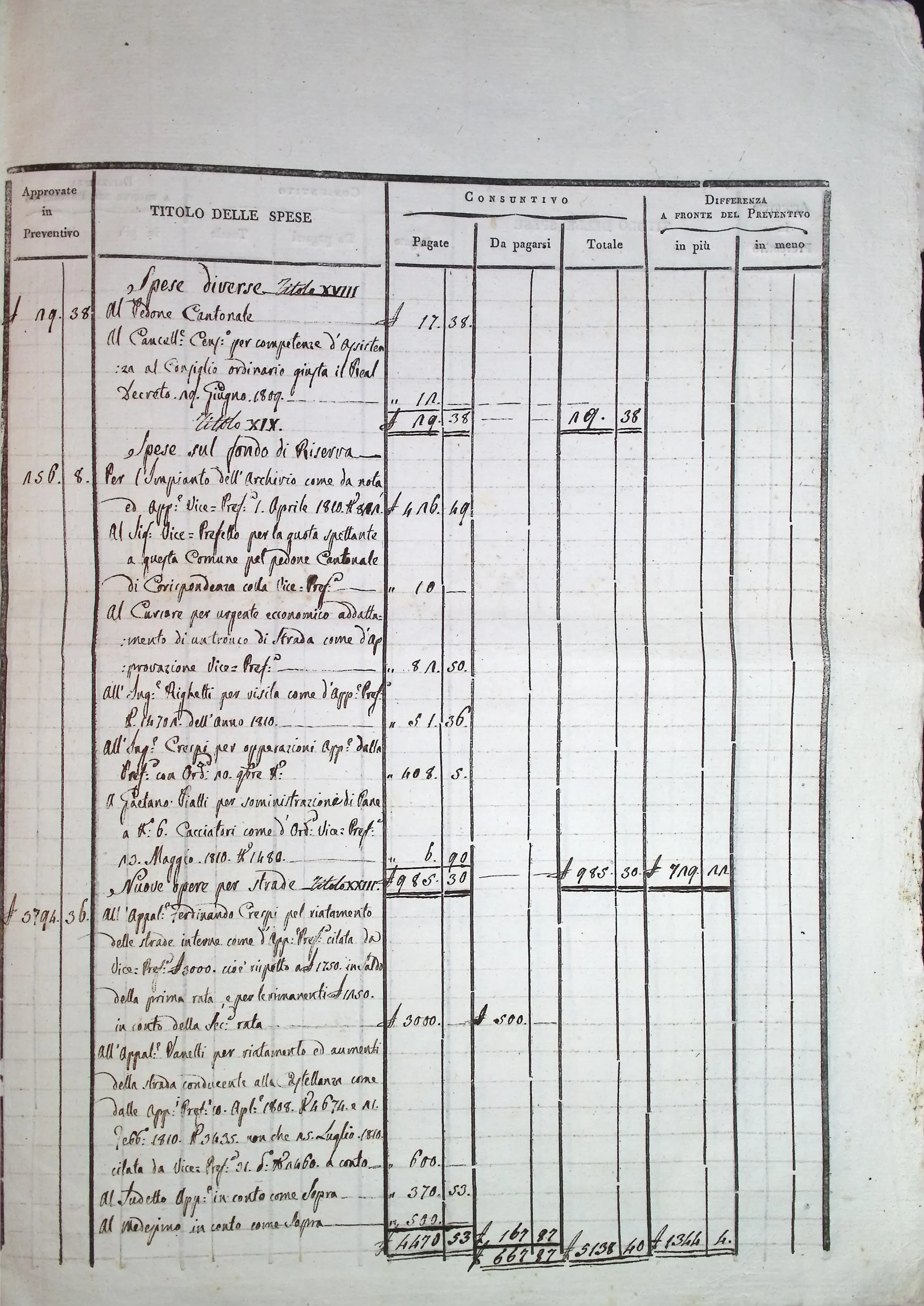 Conto consuntivo del Comune per l’anno 1810
