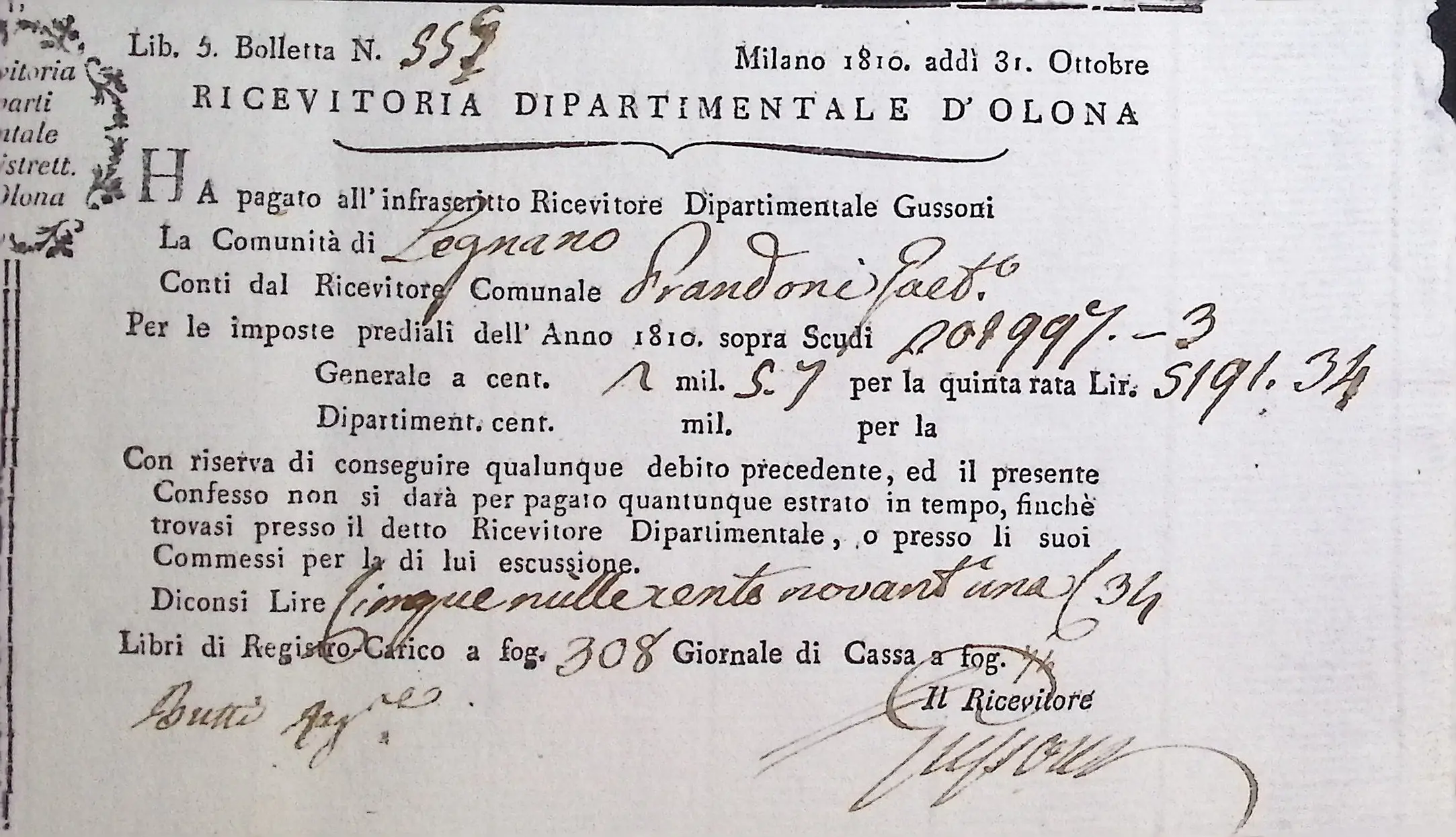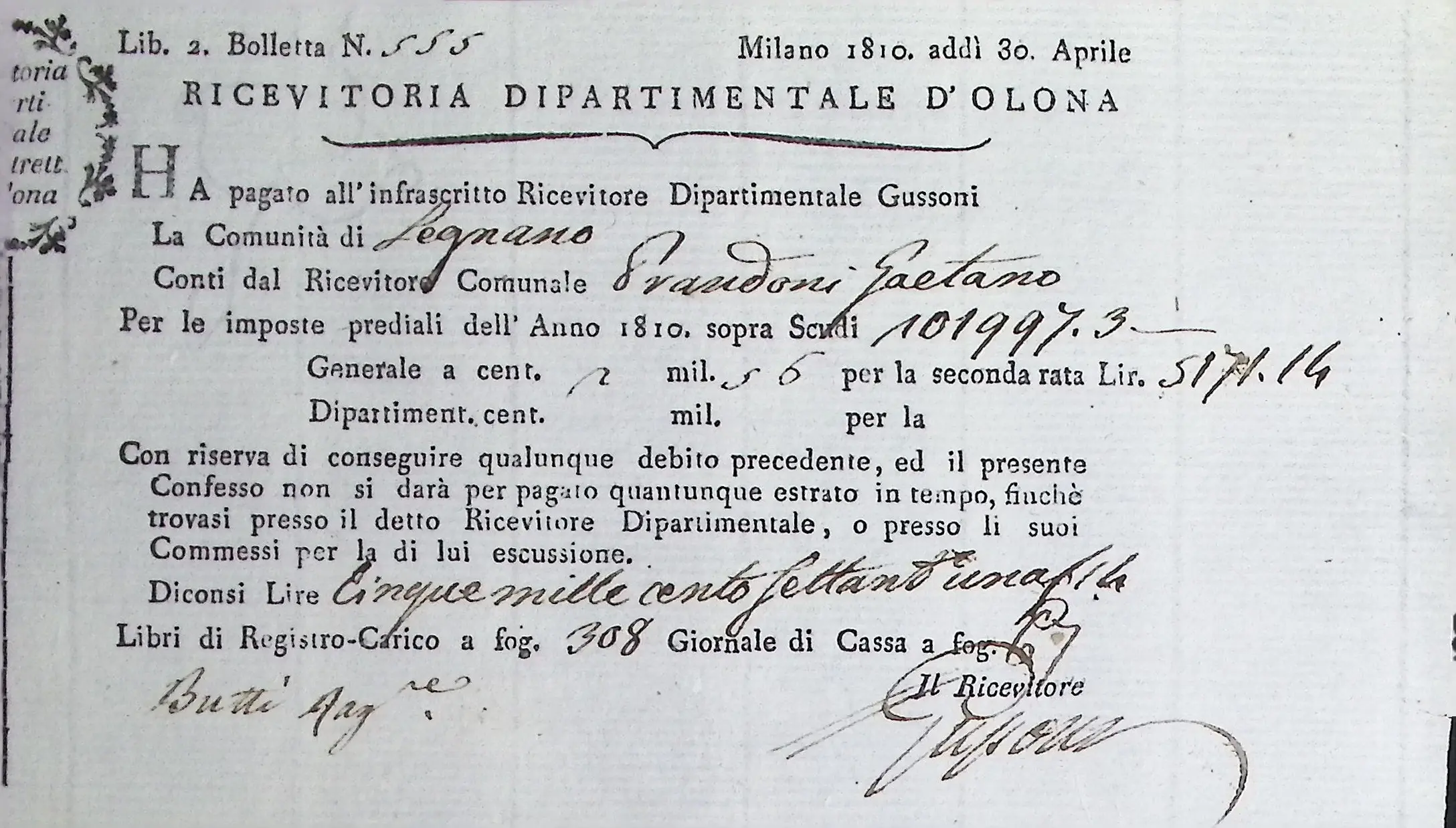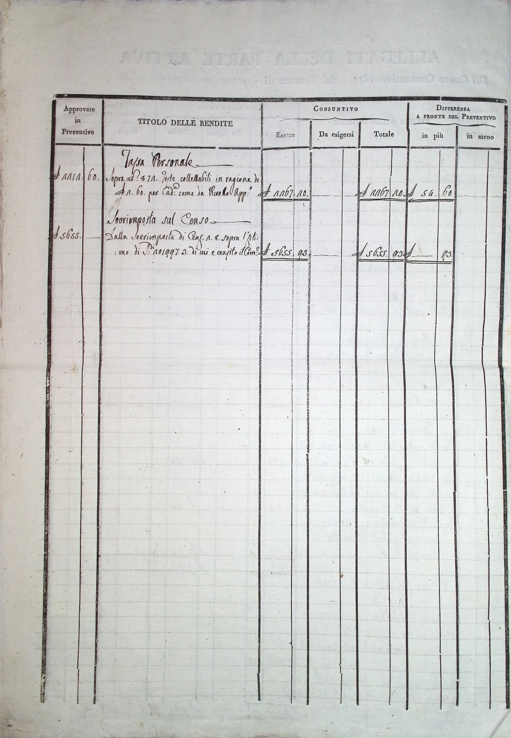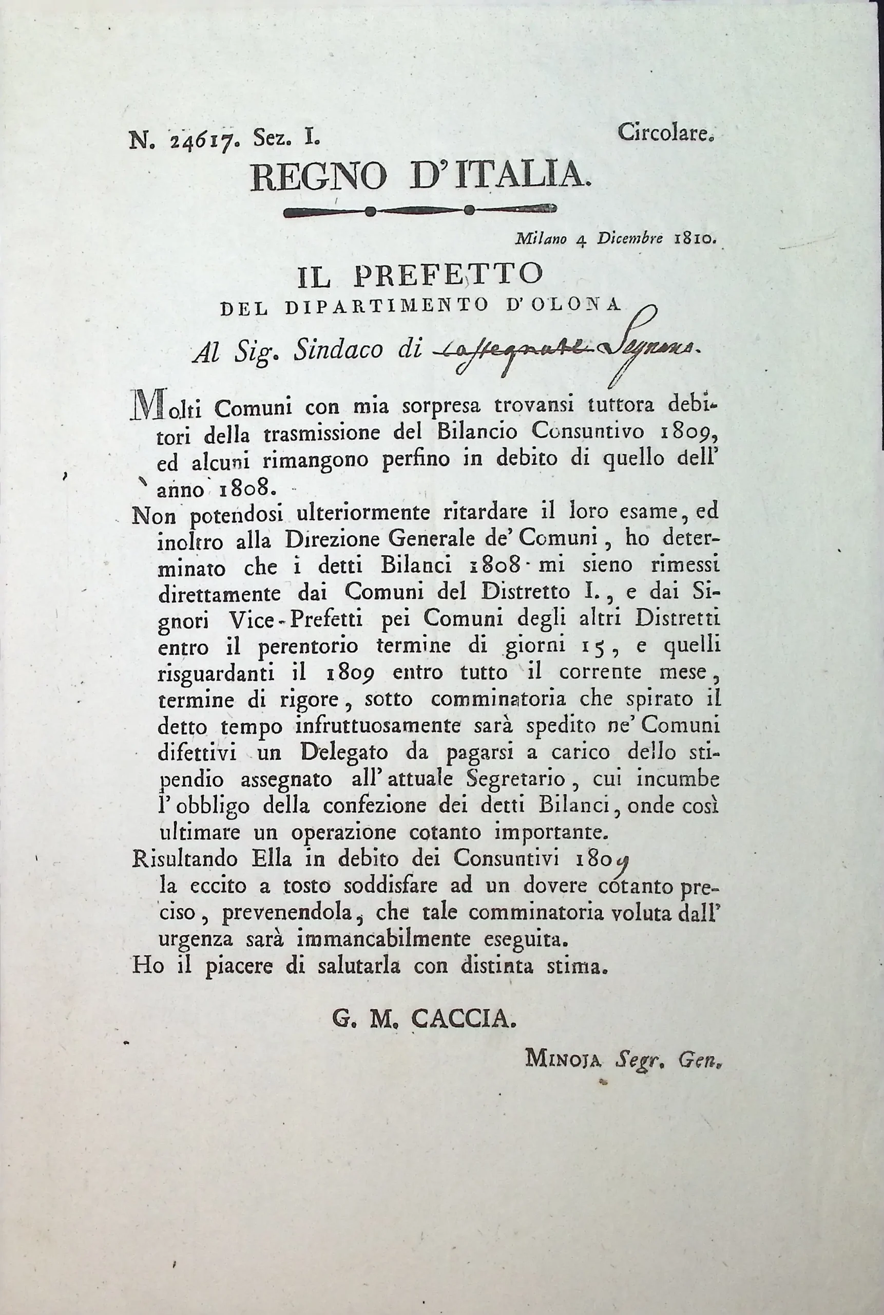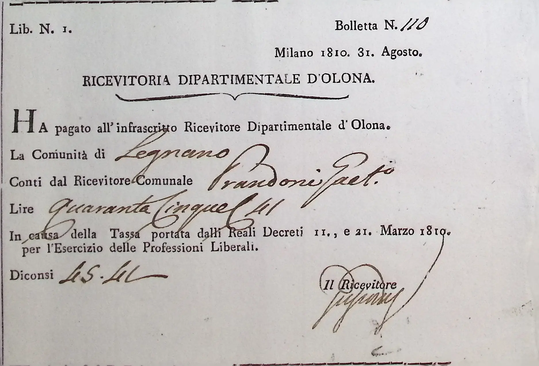 Conto consuntivo del Comune per l’anno 1810