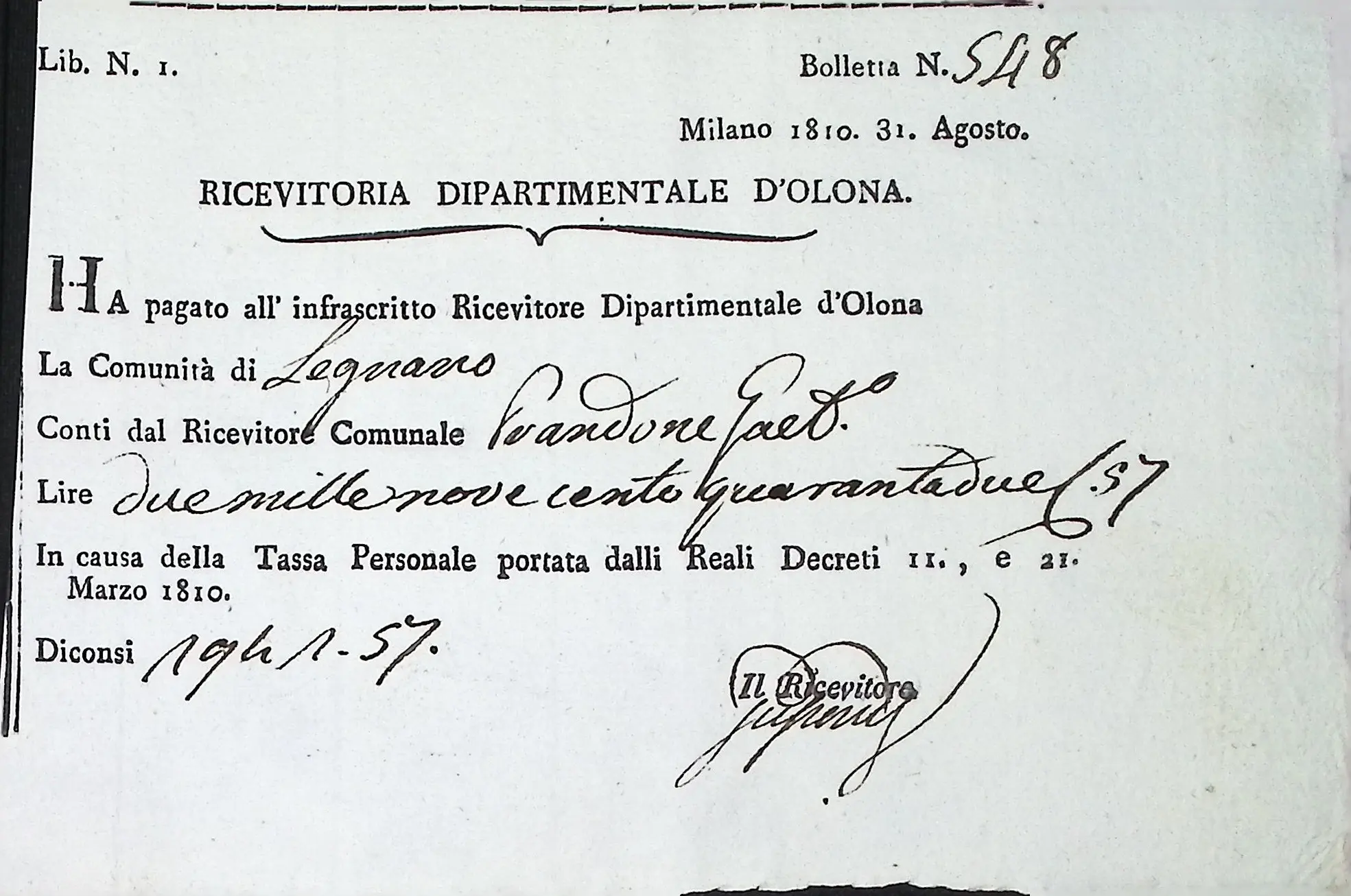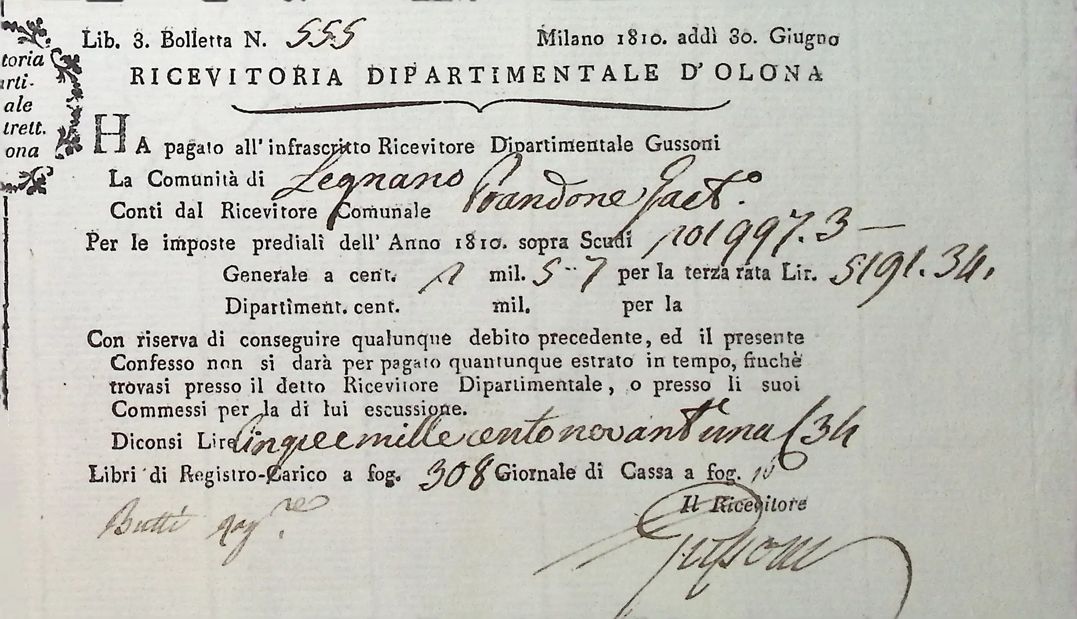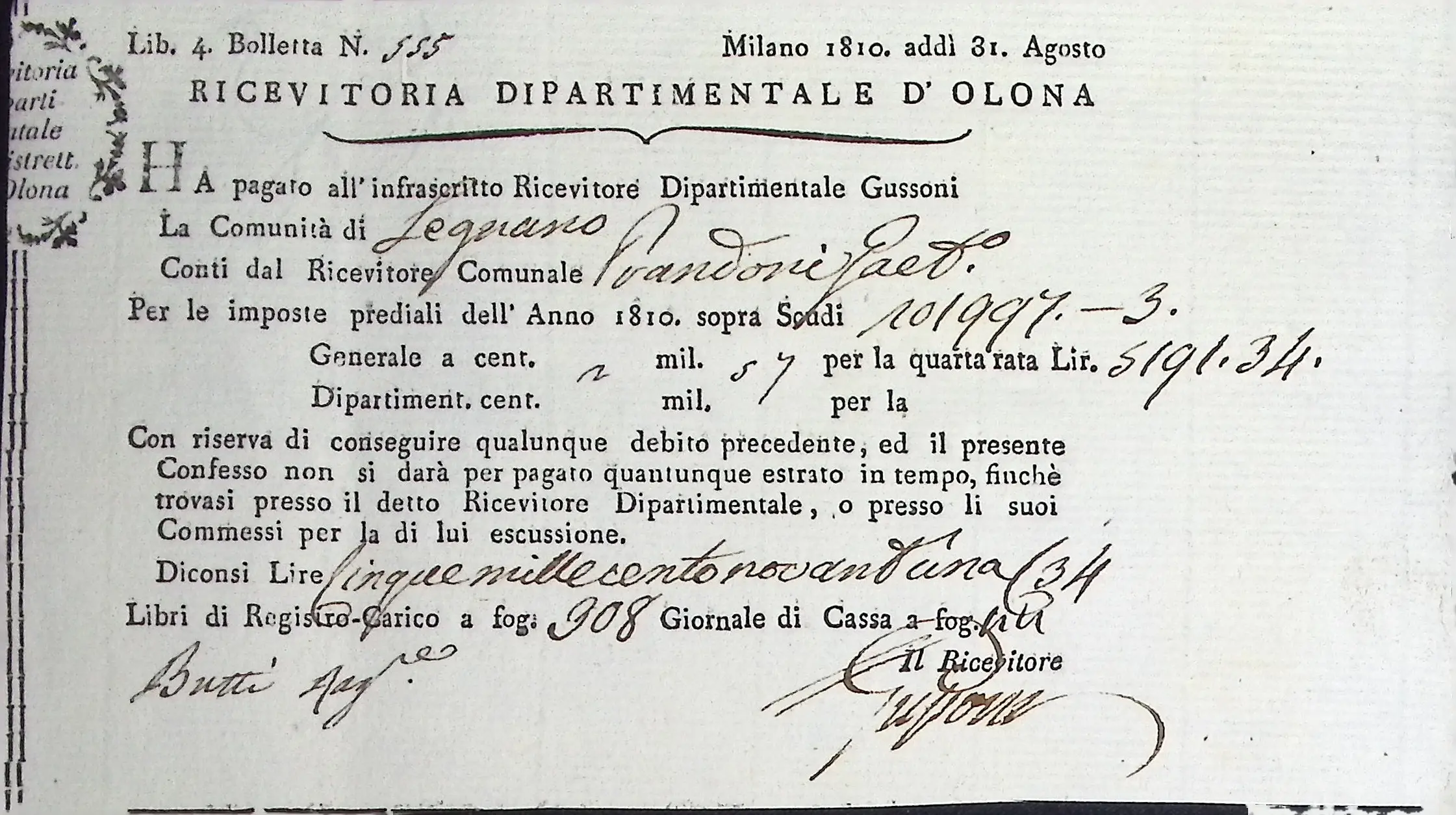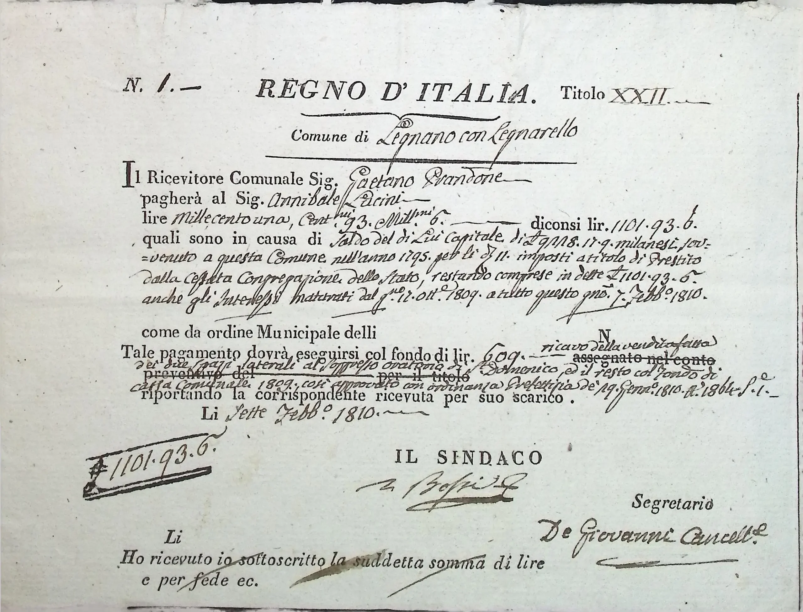 Conto consuntivo del Comune per l’anno 1810