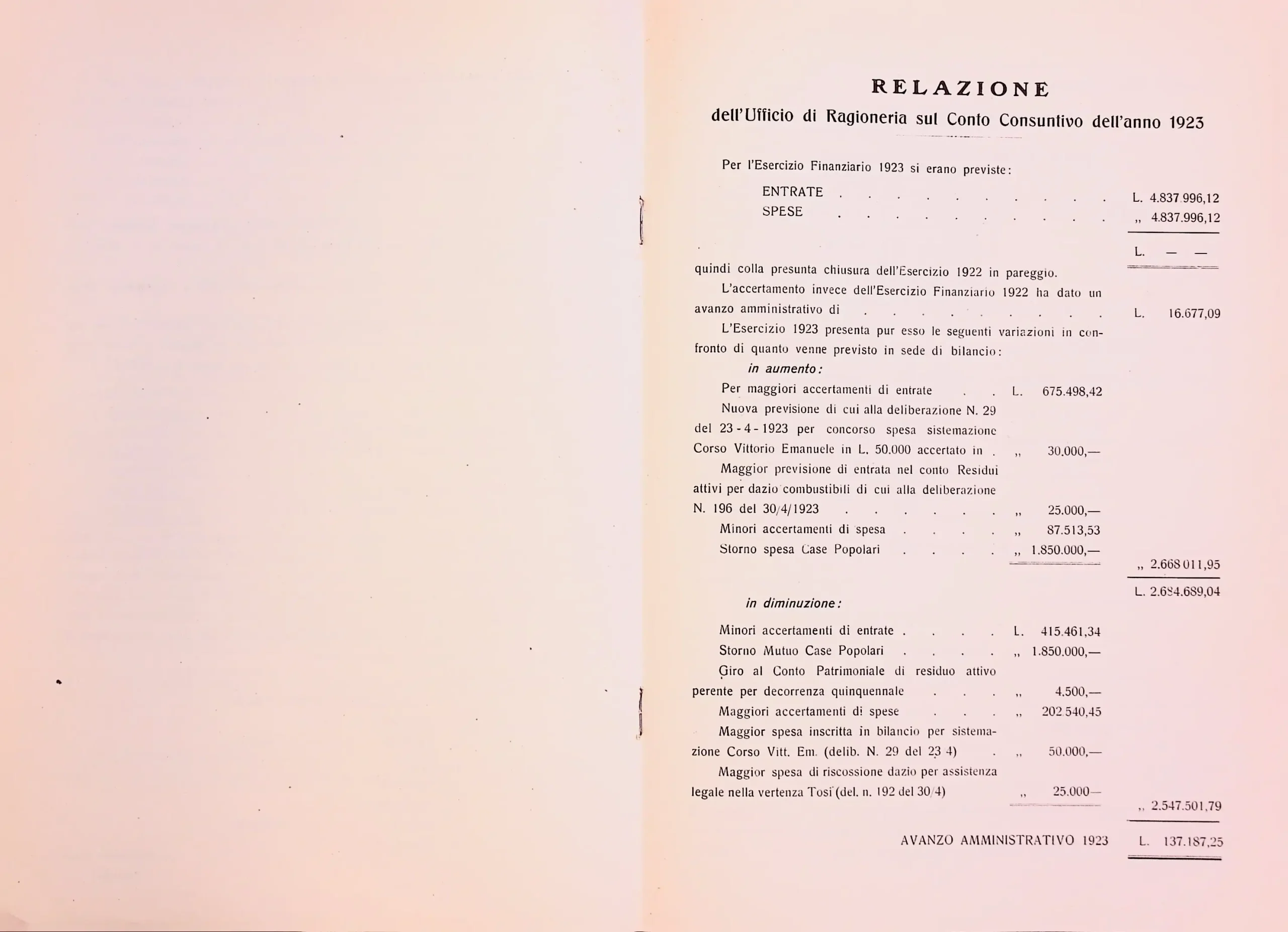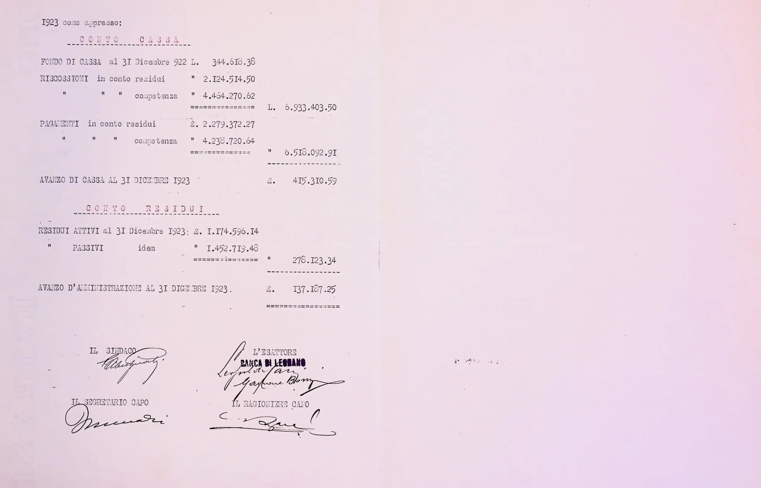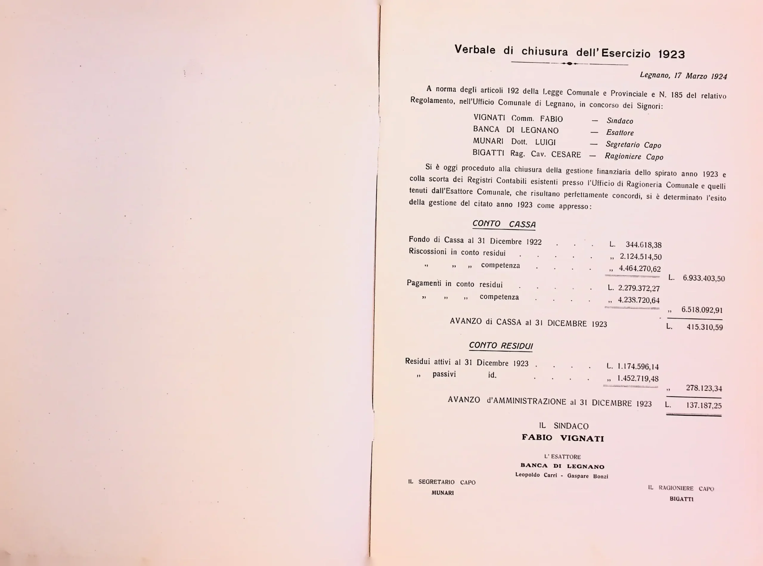 Conto consuntivo esercizio 1923: verbale di chiusura dell’esercizio finanziario